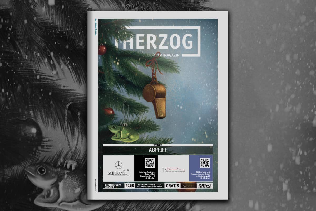 Abpfiff! Während einige mit Flötentönen die Weihnachtszeit verkürzen, pfeifen andere in Vorbereitungen auf das Fest auf dem letzten Loch. So wie so geht das Jahr seinem Ende zu. Mit all den unterschiedlichen Aspekten hat sich das TeamHERZOG beschäftigt. Während die Herolde – ihnen gilt bei den unfreundlichen Witterungen wieder unser Dank ! – die Ausgabe Dezember im Jülicher Land in die Haushalte bringen, darf die geneigte Leserschaft sich auf folgende Themen freuen:
