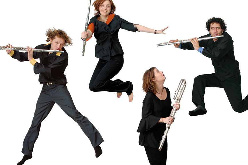 Mit Piccolo, Bassquerflöte und allerlei Perkussion im Gepäck spielt sich das Quartett VerQuer in der Besetzung Katrin Gerhard (Bochum), Daniel Agi (Köln), Britta Roscher (Wiesbaden) und Maximilian Zelzner (Krefeld) schon seit 1999 in die Herzen des Publikums. Ob sie dabei mit Fluteboxing und rauen Sounds zu einer Rockband oder mit halsbrecherisch schnellen Soli und Perkussion zu einer Balkan-Blaskapelle werden – ihr rasanter und vielseitiger Mix bietet Abwechslung für Augen und Ohren. Verquer ist bekannt für seine Musik auf hohem Niveau, verbunden mit Witz, Spiel- und Experimentierfreude. Mit dem unkonventionellen und einfallsreichen Programm kann die Gruppe die Zuhörer im Nu für sich einnehmen, es folgt ihm staunend auf nicht ausgetretene Pfade der Musik des 21. Jahrhunderts!