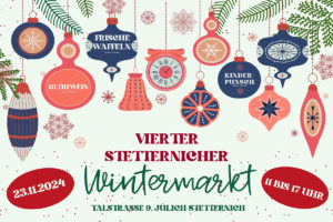 Zum 4. Wintermarkt am 23. November in Stetternich begrüßen viele Aussteller. Dieses Mal findet der Markt an einem neuen Veranstaltungsort statt, in der Talstr. 9 in Stetternich. Die Veranstalter laden zum Verwöhnen, Staunen, Stöbern, Genießen und Shoppen ein. Für die Kinder gibt es ab 15 Uhr Märchenerzählungen an der Feuerschale. Parkplätze befinden sich am Spielplatz und in den Seitenstraßen.