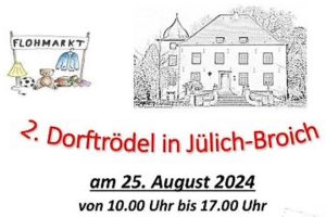 Der 2. Dorftrödel findet in Broich am Sonntag, 25. August, von 10 bis 17 Uhr statt. Für die Sammelfreunde und sonstigen (Be-)Suchenden sorgen die KfD und die Maigesellschaft vor dem Bürgertreff Kapellenstraße mit Kaffee und Kuchen sowie Grillstand und Getränken für das leibliche Wohl. Parallel dazu bietet die Verkehrswacht Jülich für Kindern und Eltern von 10 bis 13 Uhr auf dem Hof der KiTa ein Programm rund um die Verkehrssicherheit. Auf der Wiese am Bürgertreff präsentiert die KiTa Purzelbaum um…