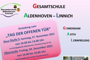 „Tag der offenen Tür“ an der Gesamtschule Aldenhoven-Linnich an beiden Standorten: Vorstellung des Oberstufenkonzepts und des Sport Leistungskurses in Linnich – „Schnupperlernzeit“ für künftige Fünftklässlerinnen und Fünftklässler in Aldenhoven. Die Gesamtschule Aldenhoven-Linnich am Standort Aldenhoven öffnet am Samstag, 27. November, ihre Pforten und lädt kommende Fünftklässler und Fünftklässlerinnen und ihre Eltern herzlich zum Tag der offenen Tür ein. Im „Haus der Kinder“ am Pestalozziring in Aldenhoven gibt es von 10 bis 14 Uhr zahlreiche Angebote. Hier können interessierte Eltern mit…