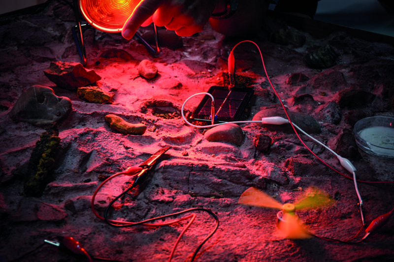 Auch zur jährlichen Overbacher Kirmes im September präsentieren die Sternengucker sich und ihre Unternehmungen. Eines der Highlights im Jahresablauf sind zweifellos die so genannten Sternschnuppen-Nächte im August. Wenn die Perseiden die Flugbahn der Erde kreuzen – laienhaft formuliert – und hunderte Staubteilchen in der Erdatmosphäre verglühen, packen die Astronomen ihre Schlafsäcke und steigen dem Science College aufs Dach. Erst gibt es eine Runde Pizza für alle und dann richten sich alle Blicke nur noch nach oben. „Dann wird es ganz schön eng hier“, berichten die zwei „Präsidenten“ des Clubs, weisen auf die hauseigene Dachterrasse, und ihre Vorfreude ist ihnen deutlich anzumerken. Einstweilen beschäftigen sich die Astronomen angesichts der dicken Wolkendecke eben mit der Landung von Miniaturdrohnen auf dem Mars – der selbstverständlich ebenfalls in den Räumen des Astronomie Clubs zu finden ist, als detailgetreue selbstgebaute Modell-Landschaft.