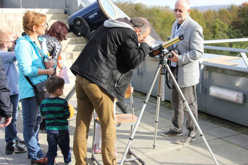 Wenn hier von ehemaligen oder auch aktiven „Mitgliedern“ des Astronomie Clubs die Rede ist, sind keinesfalls nur Schüler und Lehrer des Barmener Gymnasiums gemeint. Mitglied werden kann vielmehr jeder, der auch einmal einen tieferen Blick in die Weiten des Alls werfen möchte. So kommt auch so manch stolzer Besitzer eines eigenen kleinen Teleskops mit eben diesem Gerät unter dem Arm im Science College vorbei und lässt sich im Umgang damit erläutern. „Wir sind wirklich offen für jeden“, betont Mühlheims – dabei ist es unerheblich wie alt jemand ist, welchen Beruf er ausübt, ob er oder sie schon Vorerfahrung in Sachen kosmische Phänomene hat oder einfach nur neugierig ist. Und auch „Mitglied“ werden ist nicht notwendig, und genau betrachtet auch gar nicht möglich. Denn die Astronomen haben sich nicht in einem Verein organisiert sondern bewusst die eher lose Form eines Clubs gewählt. So ist der Kreis der Sternengucker in der Tat ein bunt gemischter, die zwei wohl jüngsten Damen in der Runde besuchen die Grundschule im Nachbarort Koslar, eine junge Frau kommt einmal in der Woche eigens aus Aachen angereist, ein anderer arbeitet als Richter und fährt ebenfalls freitäglich diverse Kilometer nur um in Barmen durch ein dickes Teleskop gucken zu dürfen.