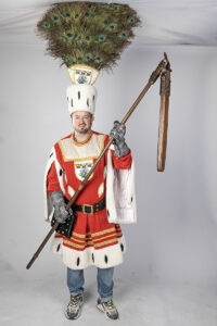 Mit seinem „deftigen“ Erscheinungsbild beschützt er nicht nur sein Dreigestirn, sondern auch sein Heimatdorf „Koslar“.