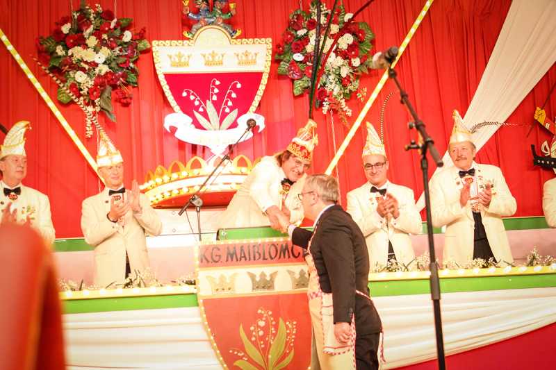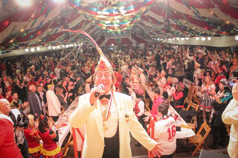 Maiblömche alaaf! Riesenstimmung bei der Kostümsitzung im Festzelt der KG Maiblömche. Da hält es keinen mehr auf den Plätzen, da wird geschunkelt, geschwoft und gesungen. Das liegt nicht nur an dem großartigen Programm, sondern auch ab dem grandiosen Dreigestirn mit Prinz Guido an der Spitze. Sichtbar ist nicht nur der Einsatz für die fünfte Jahreszeit, da kommen auch die anderen vier Jahreszeiten zu Wort. Ganz selbstverständlich findet sein Ehrenamt für die „Pänz mit Hätz“ nicht nur auf einem Orden, sondern auch beim miteinander Feiern Raum.