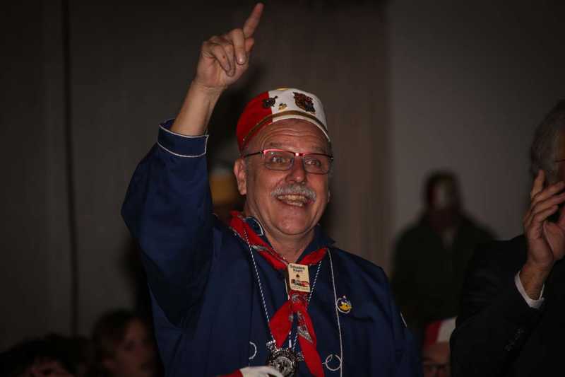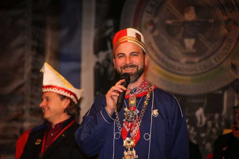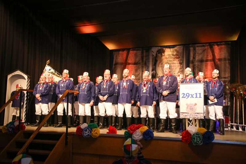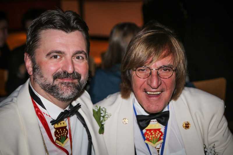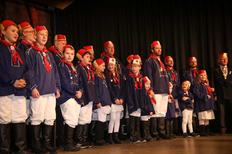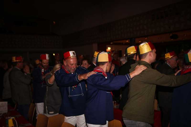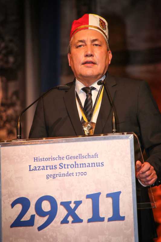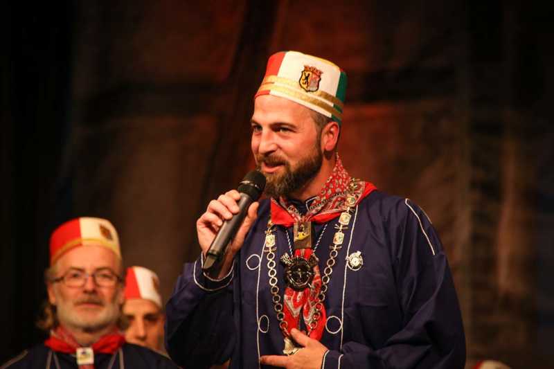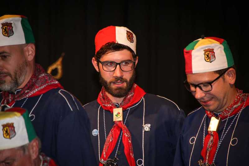 Ein beeindruckendes Bild: Der Vorhang geht auf und macht sichtbar, wie stimmgewaltig Tradition sein kann: Das Lazarus-Lied stand am Anfang des Festaktes der Historische Gesellschaft Lazarus Strohmanus. Im Jubeljahr ein historischer Moment: Die Kettenübergabe an die nächste Generation. Vater Hein Ningelgen übergab jetzt auch offiziell die Präsidentschaft an Sohn David. Dafür gab es reichlich Applaus für beide Ningelgens.