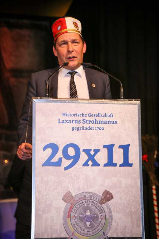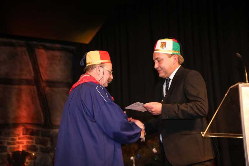 Zu den Gratulanten des Abends gehörten außerdem Bürgermeister und Lazarusbruder Axel Fuchs sowie der diesjährige Hexenturm-Ordensträger Guido von Büren, der als Historiker die Geschichte der Narretei und des Humors der Jülicher einordnete.