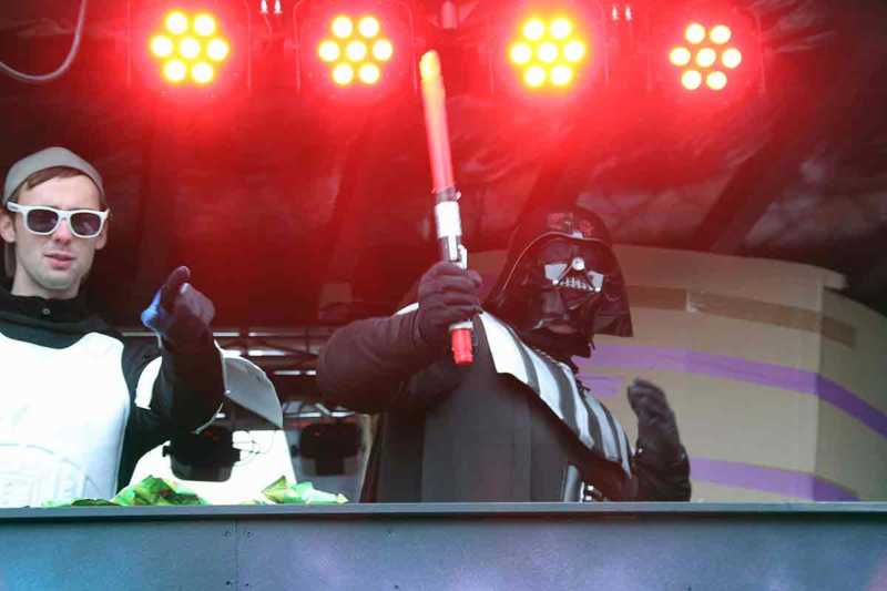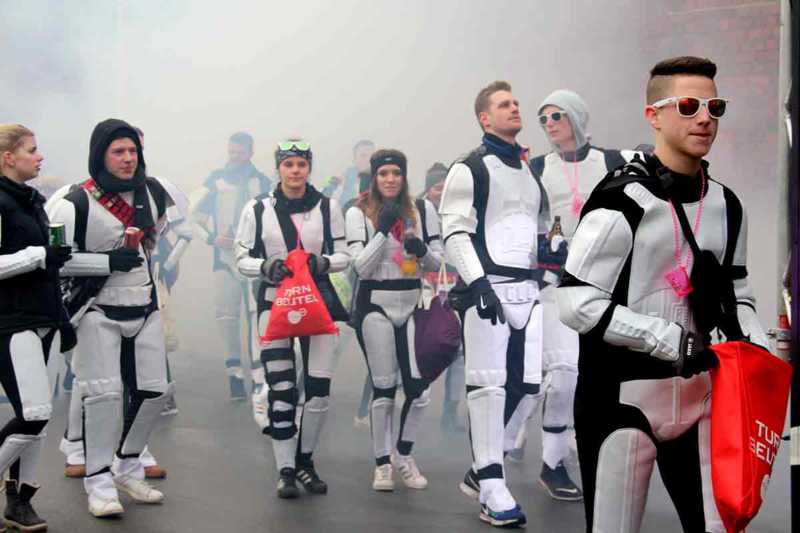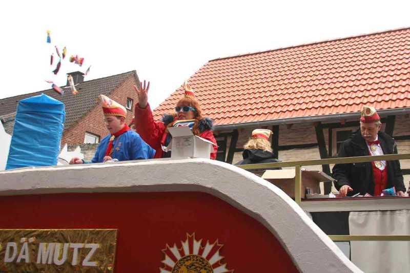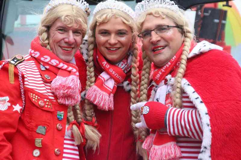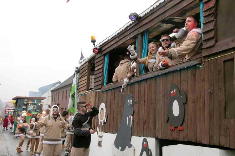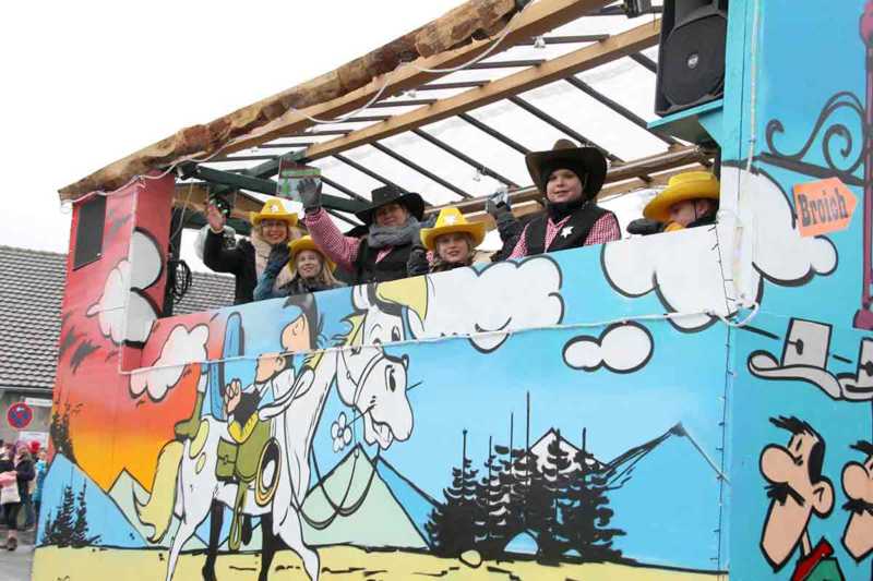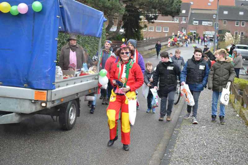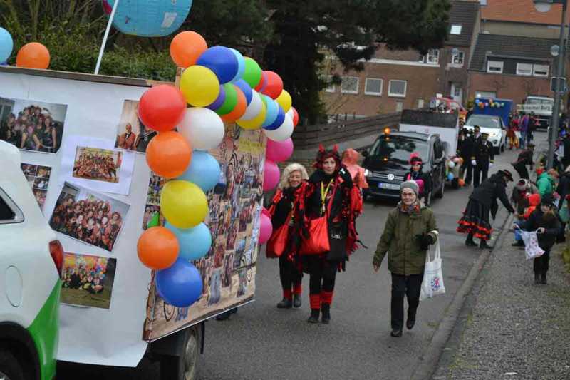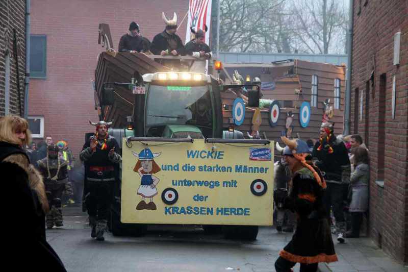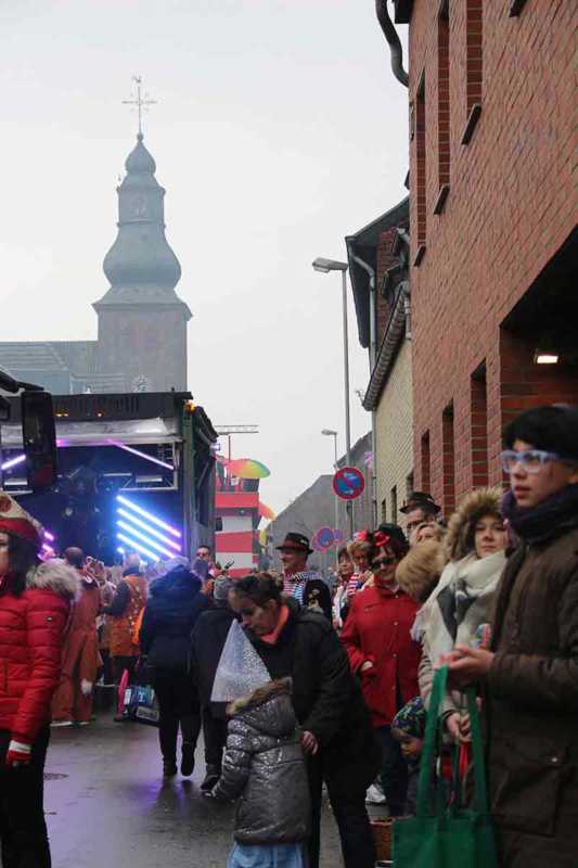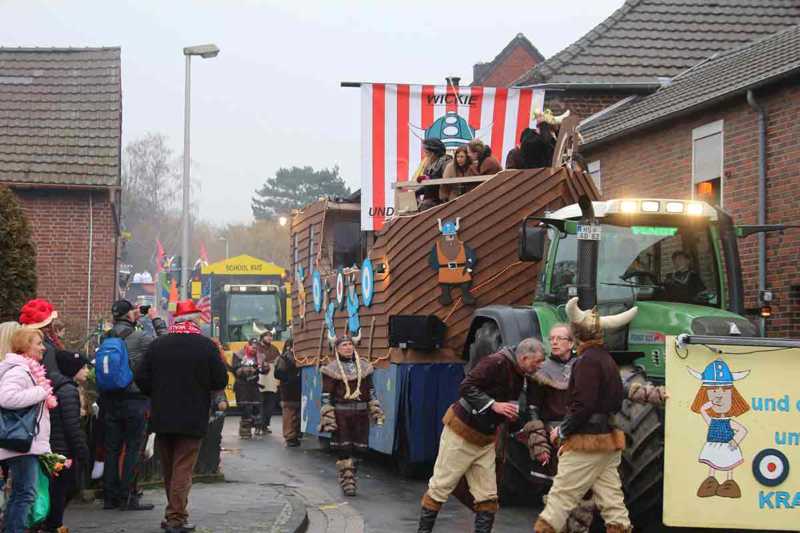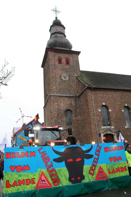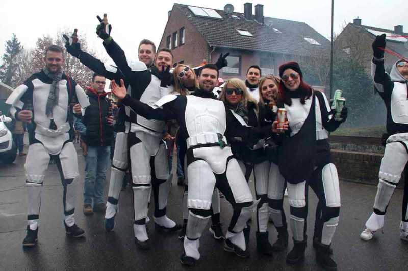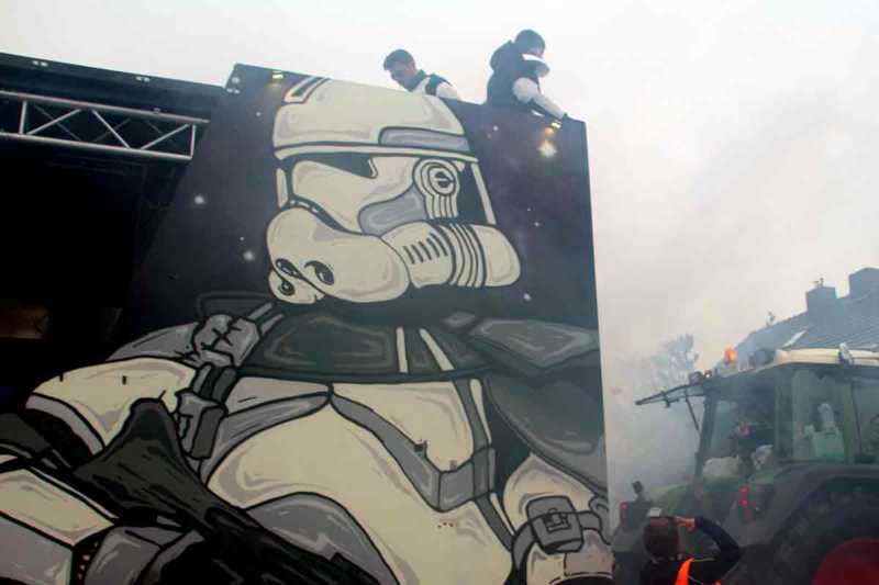 Größer, schneller, weiter… in Broich waren in diesem Jahr 18 Großwagen in den Straßen des Dorfes unterwegs. Mit Darth Vader und Helden vom Lande, Piraten und Cowboys zogen „rut un wiess“ mit rosa Drachen, zweibeinigen Rehen und Wickis krasse Herde durch den Ort und ließen es neben Konfetti auch Kamelle regnen. Ein logistisches Meisterstück als sich der Lindwurm kurz vor der Kirche nur fast in den Stätz biss… Tolle Stimmung inmitten von Nebelmaschinen und rauschenden Beats.