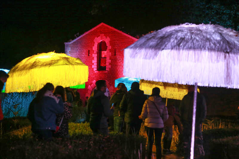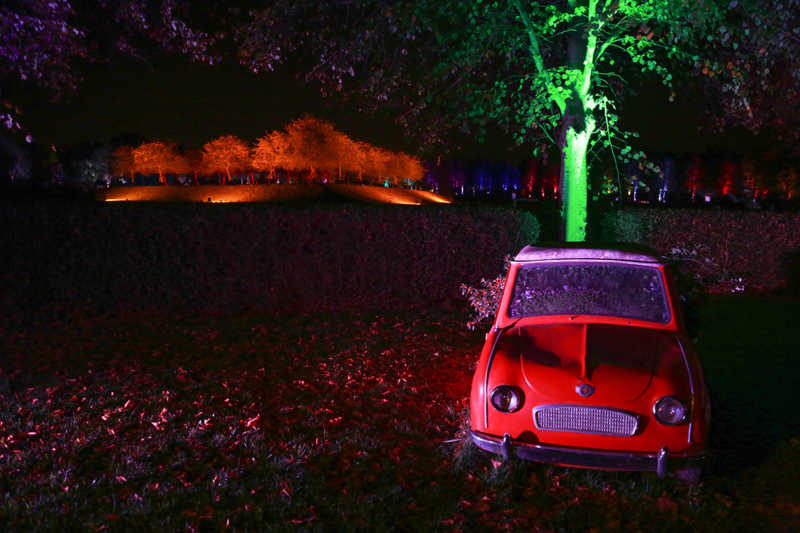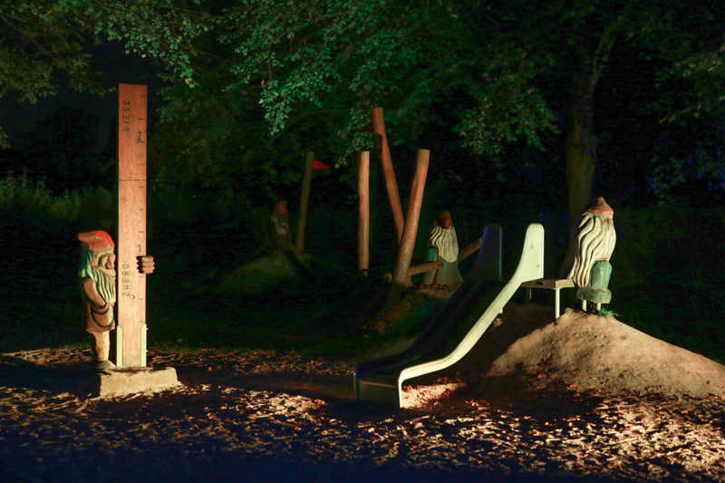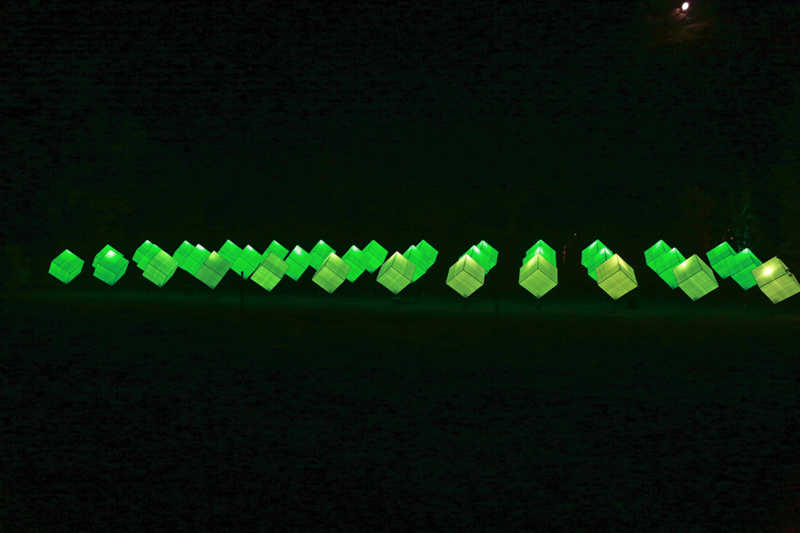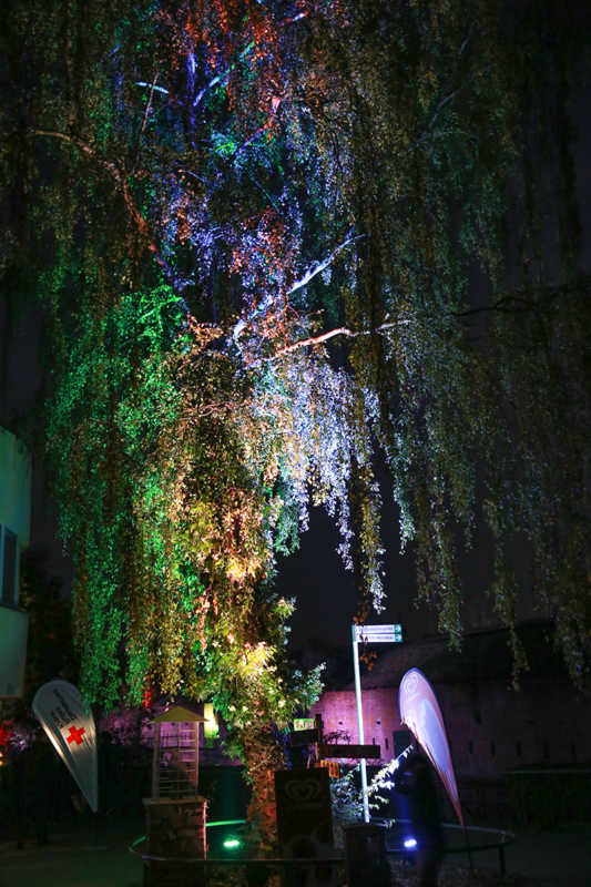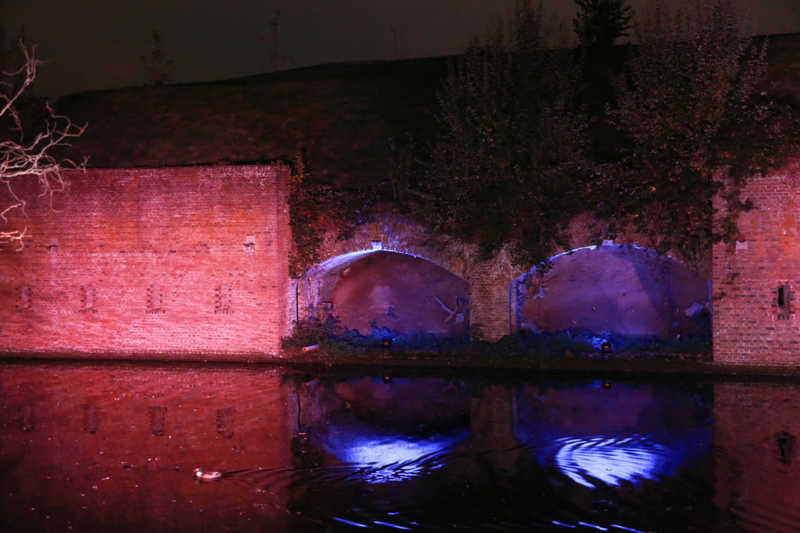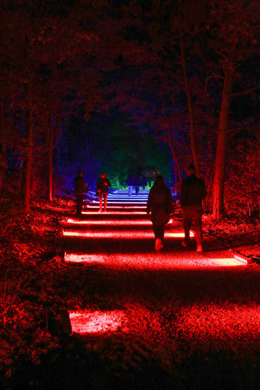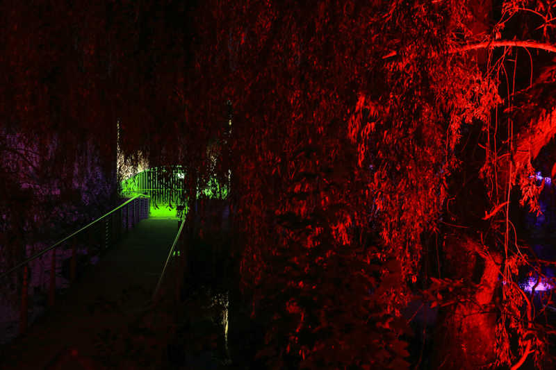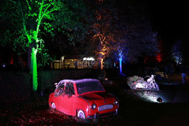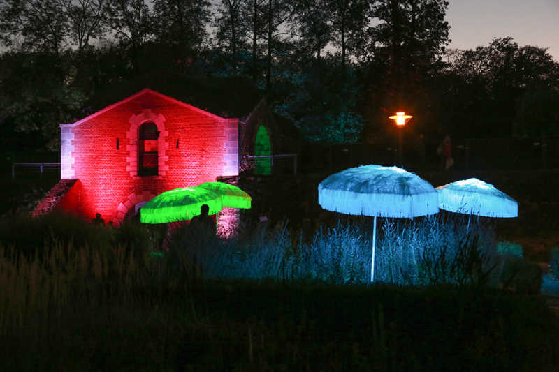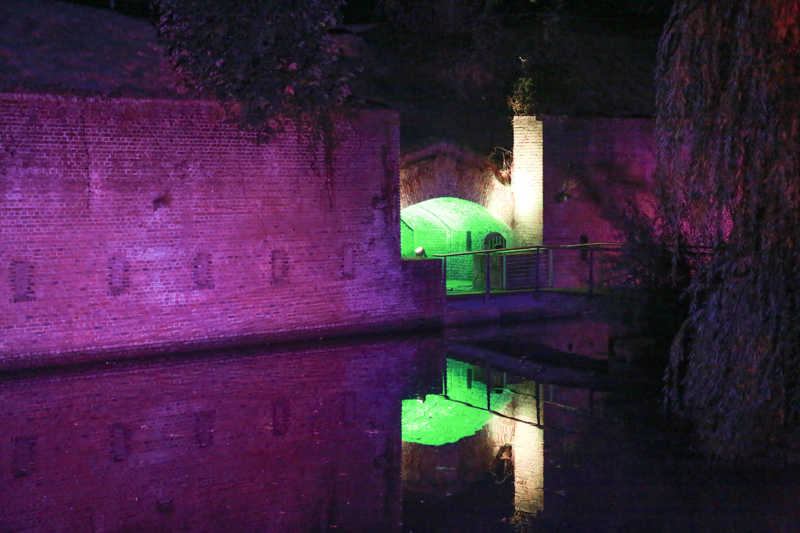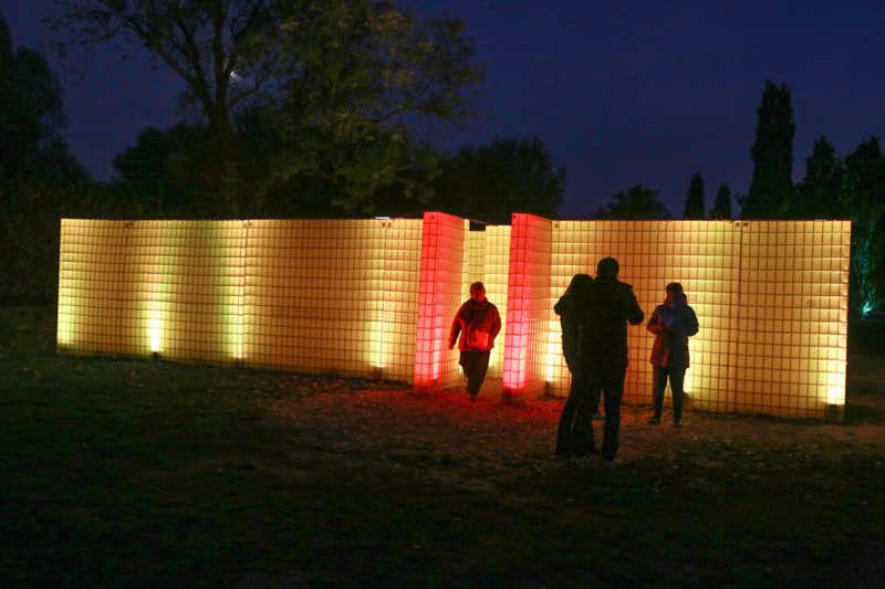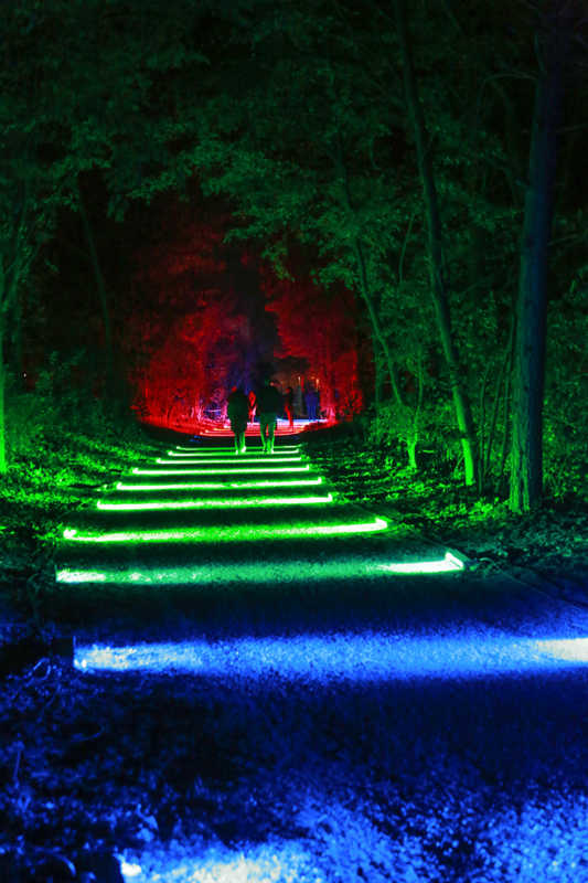 Ein Potpourri aus Licht, Figuren und Klang inszeniert Künstler Wolfgang Flammersfeld im Brückenkopf-Park: Zauberhafte und mystische Stimmungen werder erzeugt, Wege erglänzen in warmen Tönen, die historische Wallanlagen schimmern geheimnisvoll und Büsche heben sich je nach Farbe gegen den nächtlichen Himmel ab.