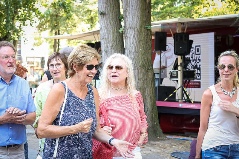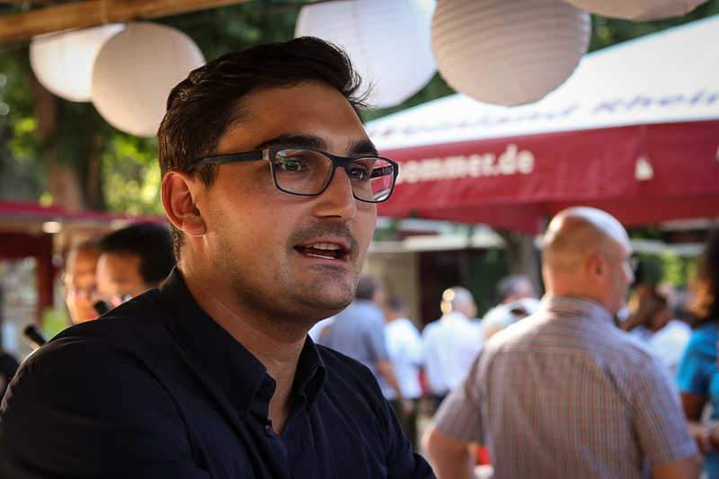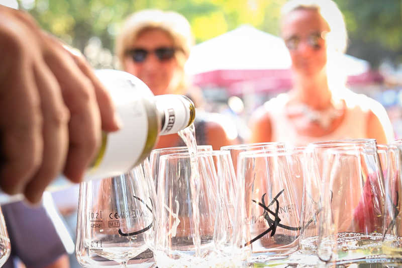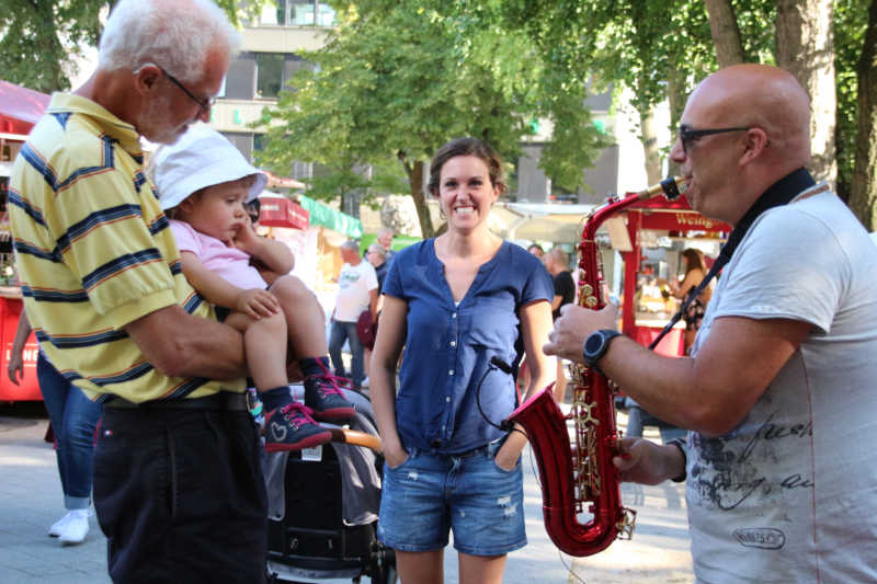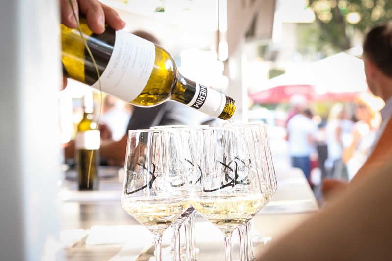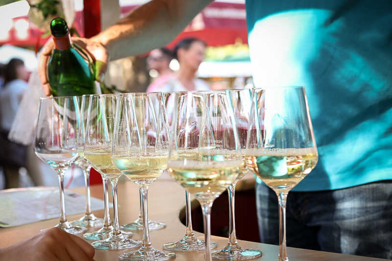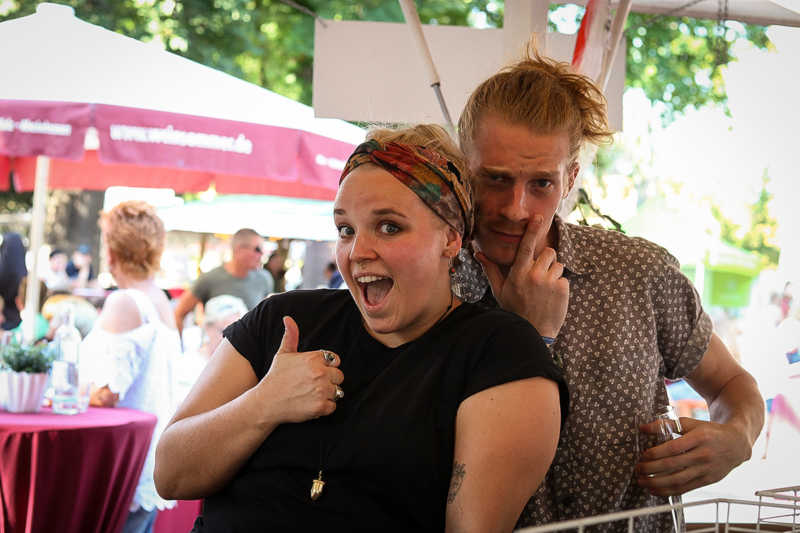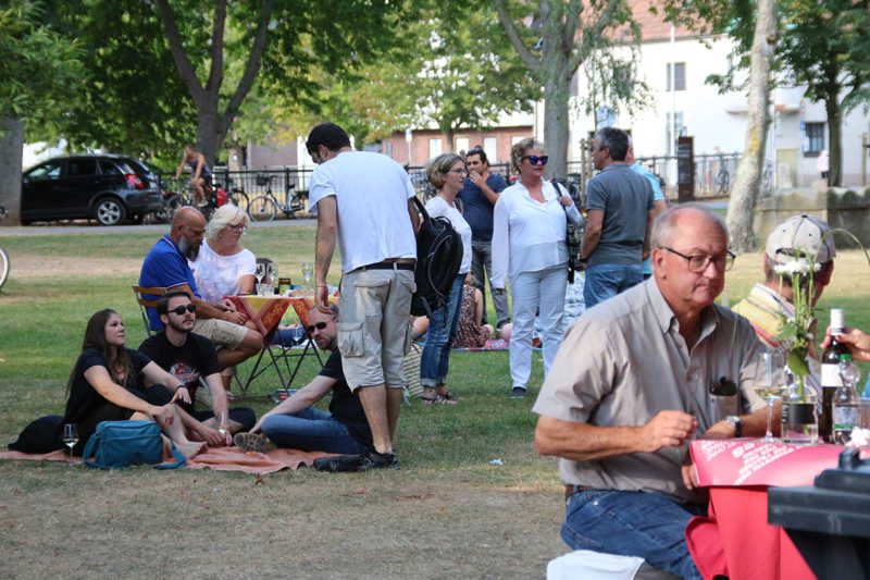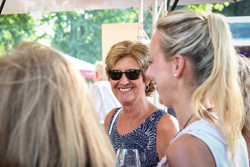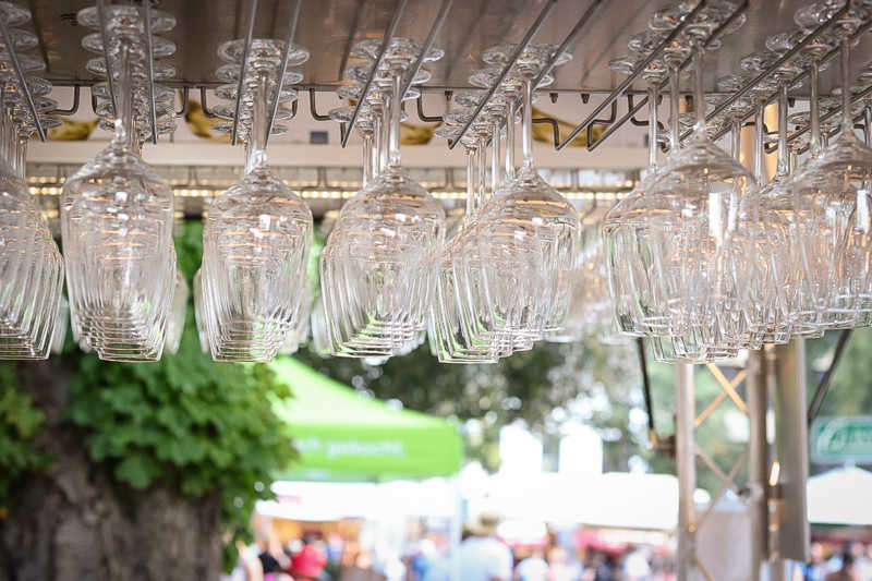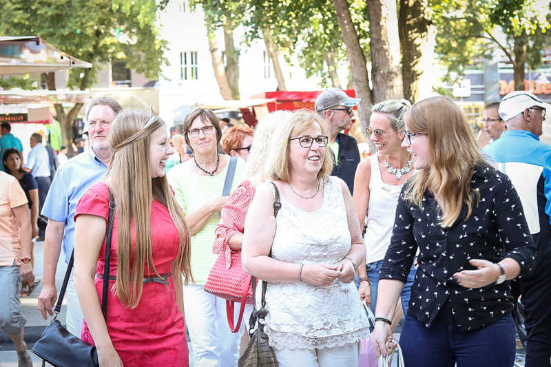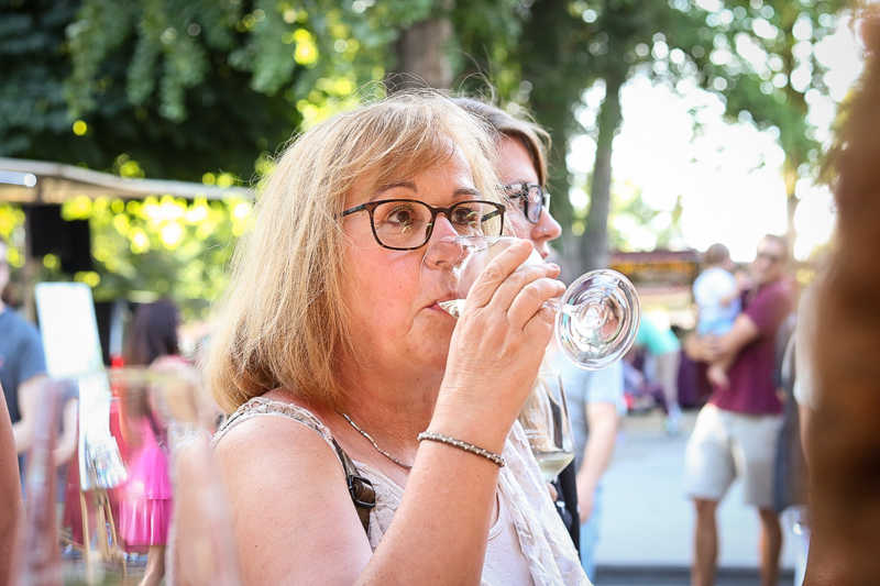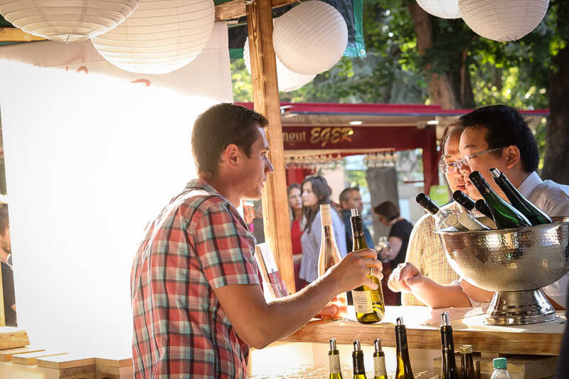 Schon die erste Begegnung war etwas besonderes: Morio Muskat hieß der Tropfen, den das Weingut Langenwalter ausschenkte. Eine Rebsorte, die heute nicht mehr sehr bekannt ist. In den 70er Jahren auf dem Vormarsch ist es nun ein Nischenwein, der aber eine außergewöhnliche Qualität hat, wie der Winzer erklärte – gerade weil er nur einen geringen Ertrag hat. Der Geschmackstest stimmte – den konnten sich die Gäste auf der Zunge zergehen lassen. Ein Terassen-Spaßwein nennt es Thorsten Langenwalter. „Für einen Tag wie heute perfekt“, meinte die Weinmajestät.