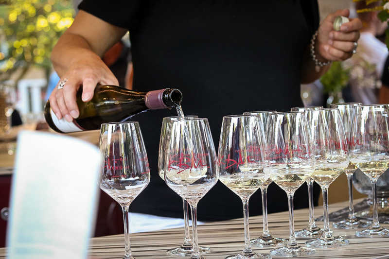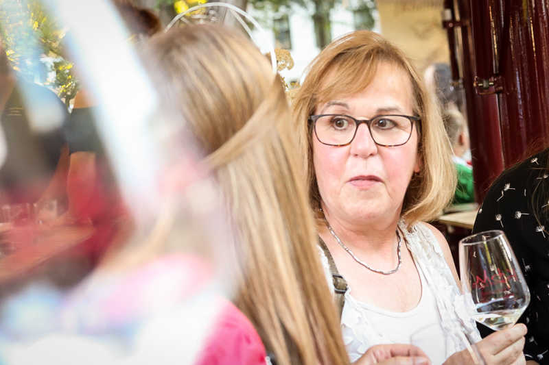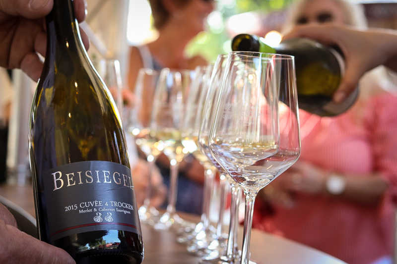 Bei der nächsten Verkosten waren „Theo und Paul“ die „Gastgeber“: Nicht ohne Stolz erzählte Winzer Walter Beisiegel, dass sein Sohn anlässlich der Geburt seiner Söhne die Weißweine kreiert hatte. Alina Scholtes: „Es ist so schön, dass auch immer Geschichten erzählten werden können durch den Wein.“ Sie selbst, so erzählt die Tochter der Traditionswinzer-Familie Scholtes, bekam zur Geburt 300 Flaschen Wein, die heute nach und nach zu hohen Festtagen herausgeholt werden – zum Beispiel in einigen Wochen, wenn die Prinzessin Geburtstag feiert. Allerdings bedeutet das auch Verantwortung, denn Wein, der seit 1997 einlagert, muss auch einmal neu verkorkt werden – in Handarbeit! Das kostet ganz schön Kraft, wie die leidenschaftliche Weinkennerin mit abgeschlossenem Bachelorstudium grinsend erzählt. Derzeit „baut“ sie ihren Master in Weinwirtschaft.