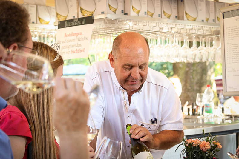 Der Familienbetrieb Knierim mit zwei Generationen am Start legt Wert auf seine „übersichtliche Karte“ und schenkte einen „internationalen Trendsetter“ aus: einen fruchtigen Sauvignon Blanc, „der gefällt uns selbst auch sehr gut“, erklärte Weinbautechniker Knierim schmunzelnd.