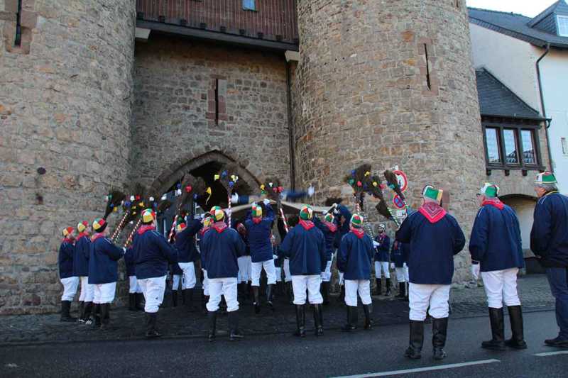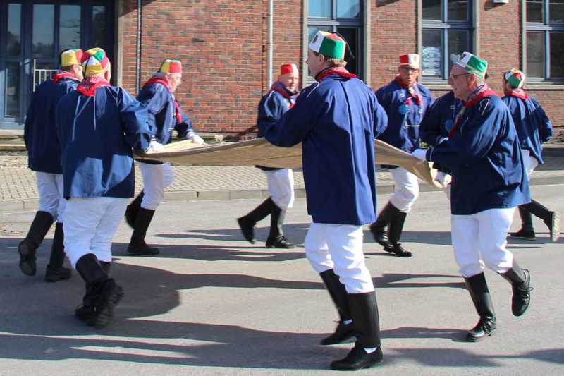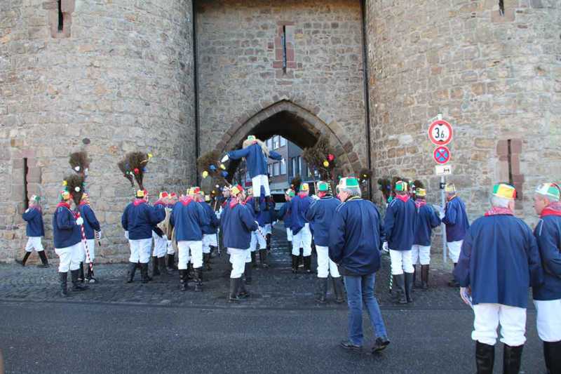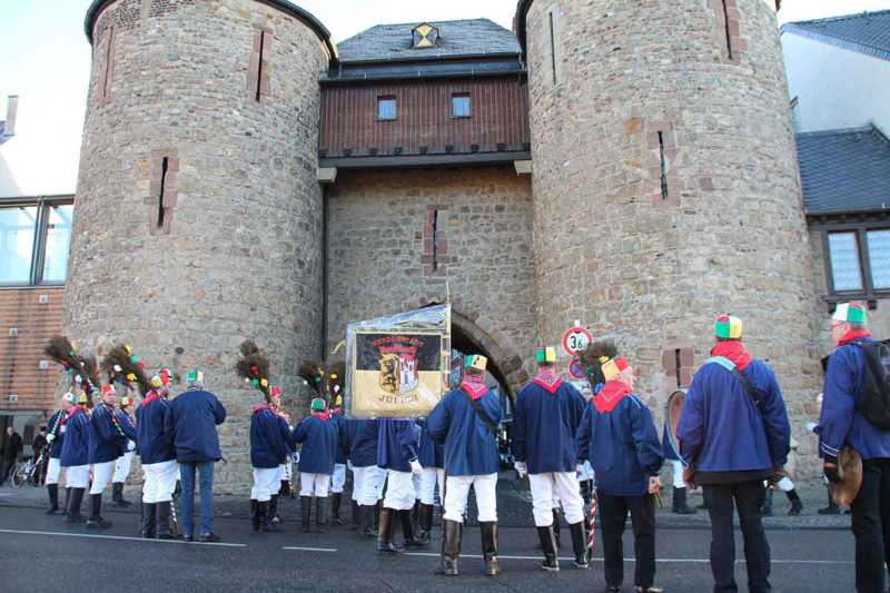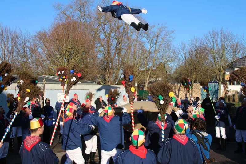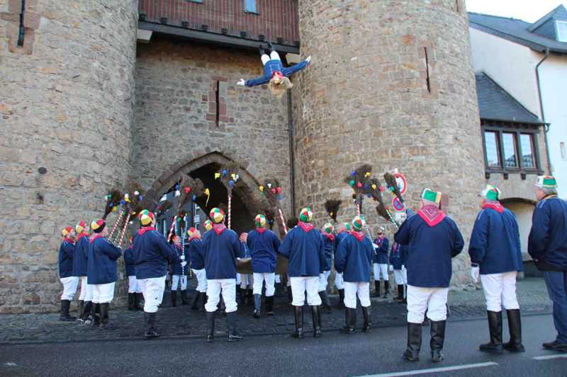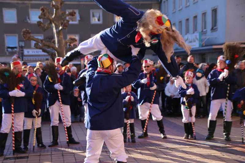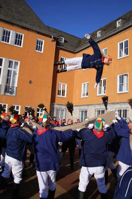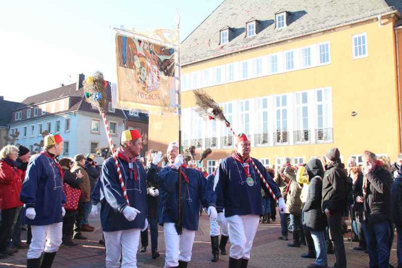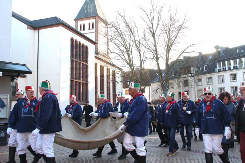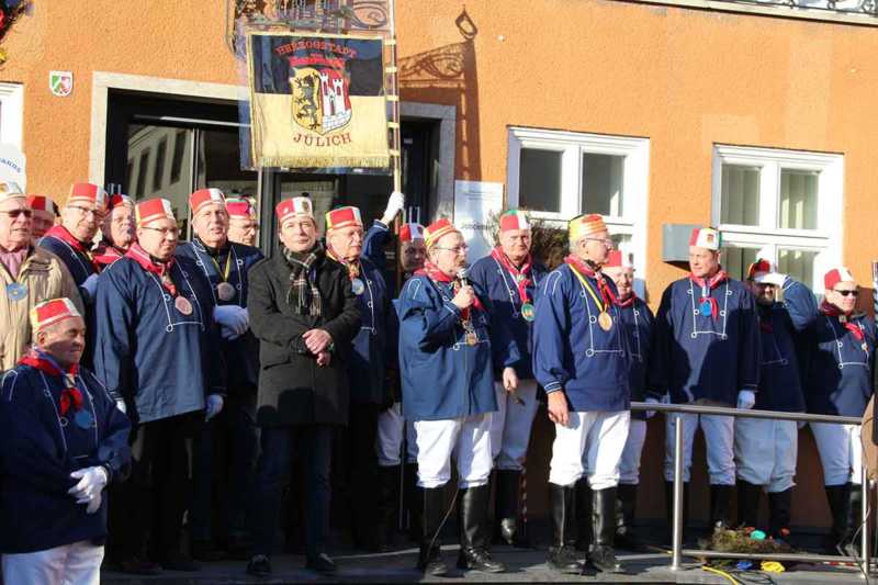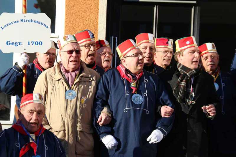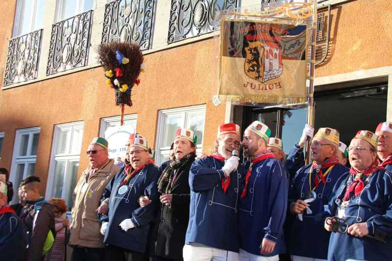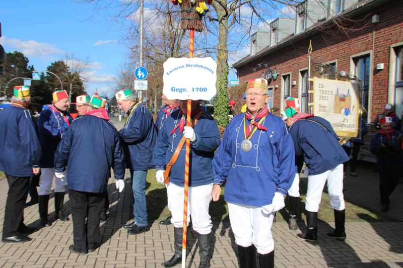 Zum Jülicher Fastnachtsbrauch gehört seit weit über 300 Jahren die Historische Gesellschaft Lazarus Strohmanus. Rund 9 Kilometer geht der Umzug quer durch die Stadt, „Zo Jülich wied, wie allbekannt, de Lazarus jepreck. Drömm freut sich dorop jong on alt on och so manche Jeck“, heißt es im Nationallied. An markanten Punkten wird der „Lazarus“ aufgeworfen – jepreck – und sein naher Tod betrauert, „da weinte die Anna, Susanne, Philipina, de Schmitze Mina, de rude Jakob…“. Außerdem werden Spott- und Lobverse bezogen auf die lokalen Gegebenheiten vorgetragen. Höhepunkt ist stets das Feuerwerk, das folgt, sobald der Strohmann sein nasses Grab in der Rur gefunden hat.