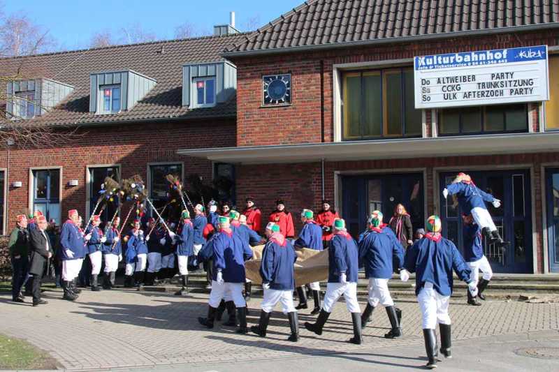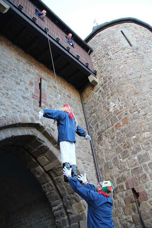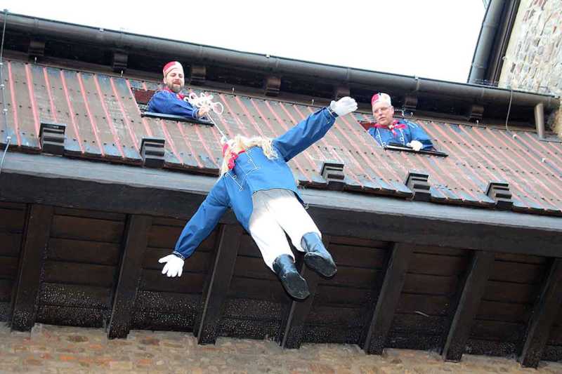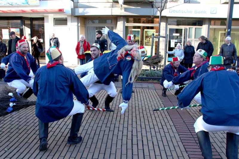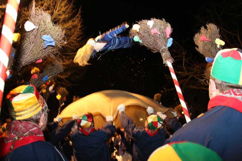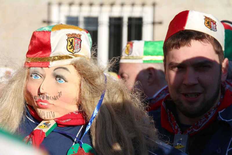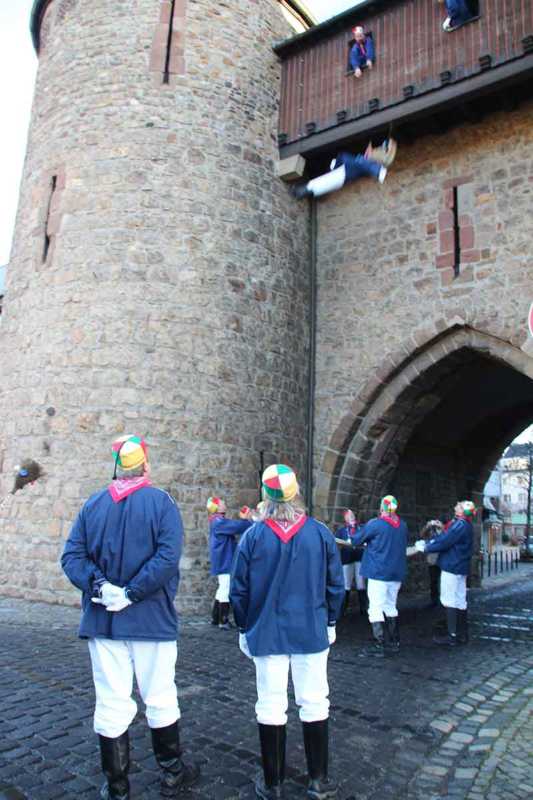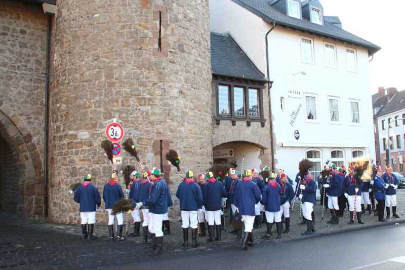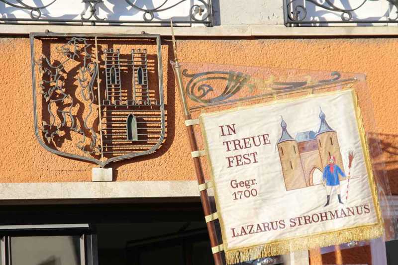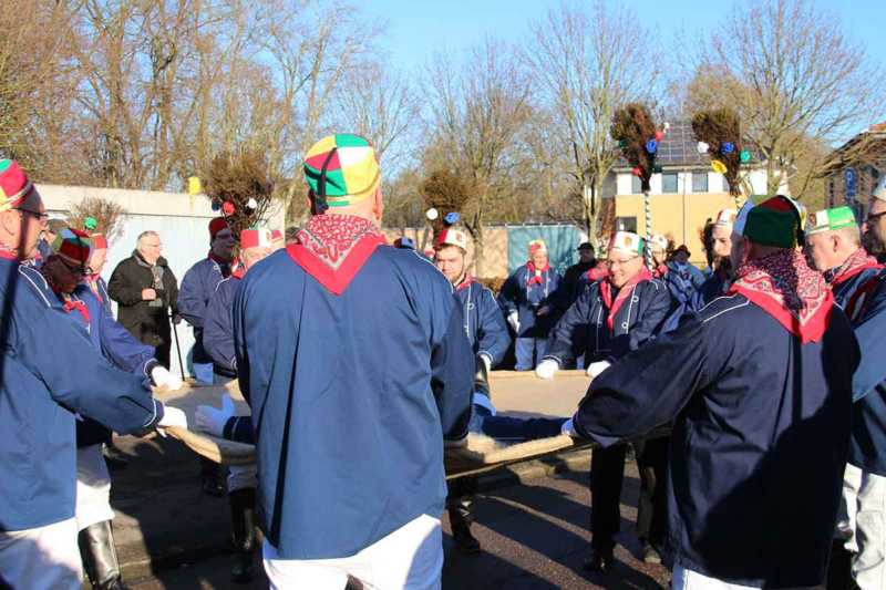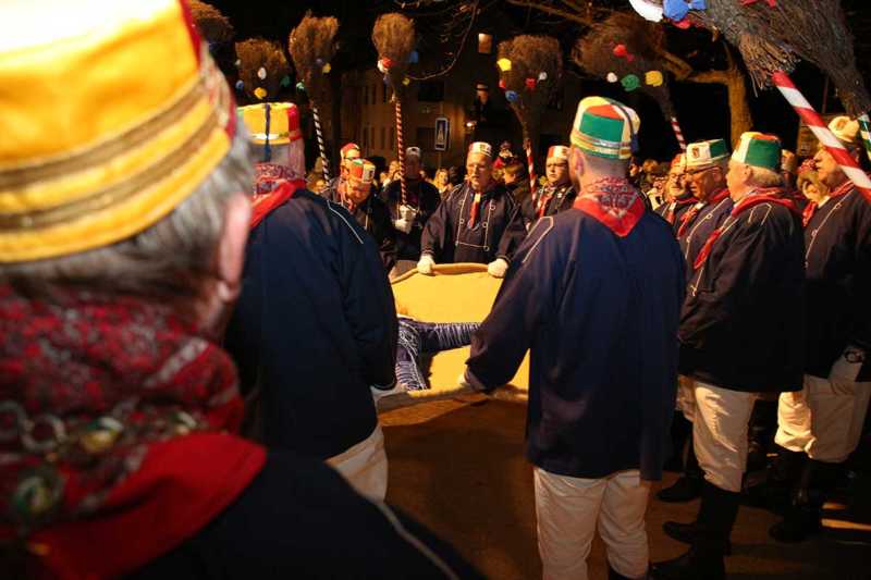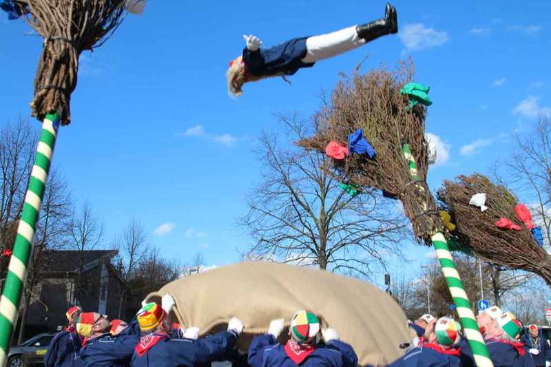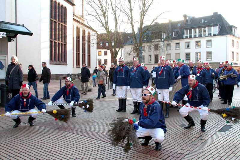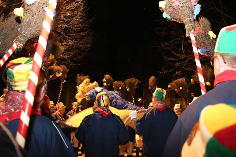 Zum Jülicher Fastnachtsbrauch gehört seit weit über 300 Jahren die Historische Gesellschaft Lazarus Strohmanus. Rund 9 Kilometer geht der Umzug quer durch die Stadt, „Zo Jülich wied, wie allbekannt, de Lazarus jepreck. Drömm freut sich dorop jong on alt on och so manche Jeck“, heißt es im Nationallied. An markanten Punkten wird der „Lazarus“ aufgeworfen – jepreck – und sein naher Tod betrauert, „da weinte die Anna, Susanne, Philipina, de Schmitze Mina, de rude Jakob…“. Außerdem werden Spott- und Lobverse bezogen auf die lokalen Gegebenheiten vorgetragen. Höhepunkt ist stets das Feuerwerk, das folgt, sobald der Strohmann sein nasses Grab in der Rur gefunden hat.