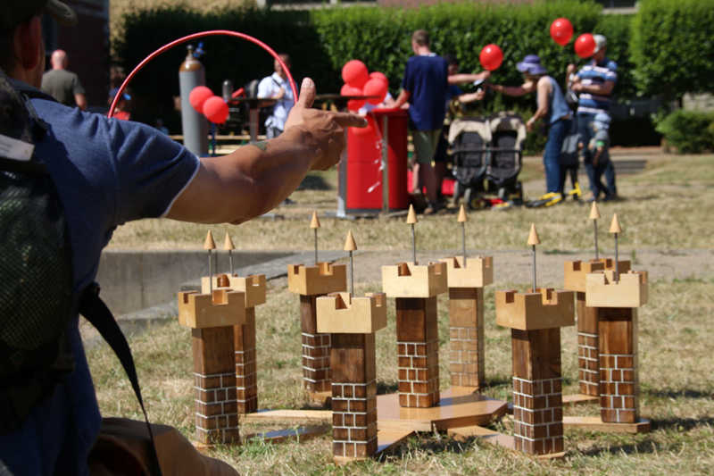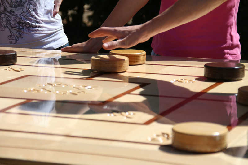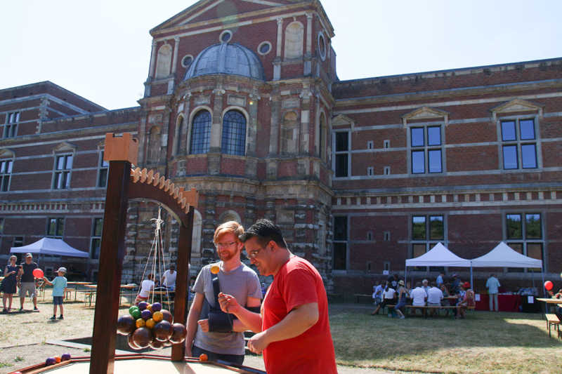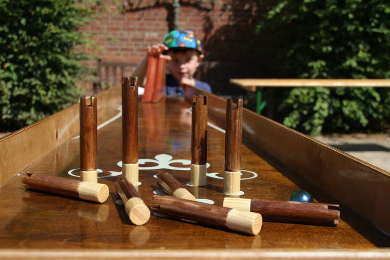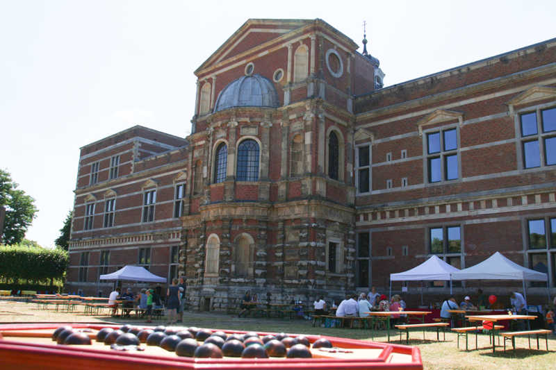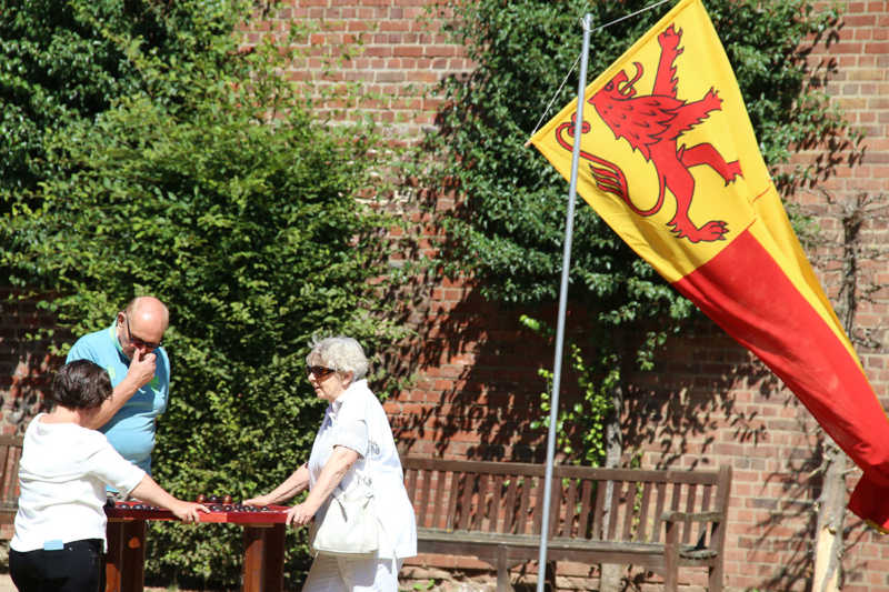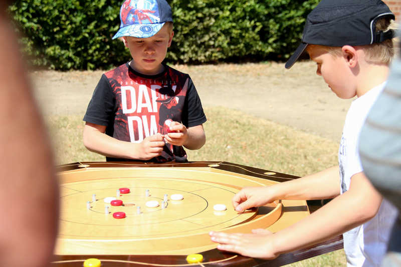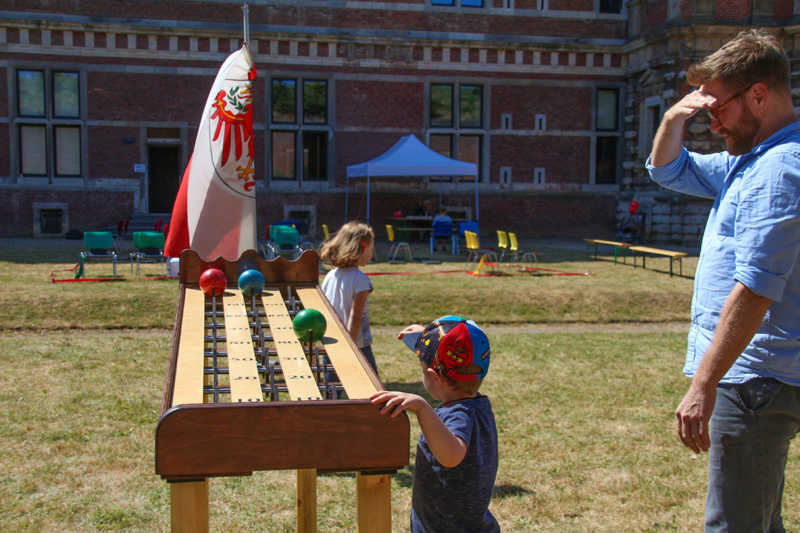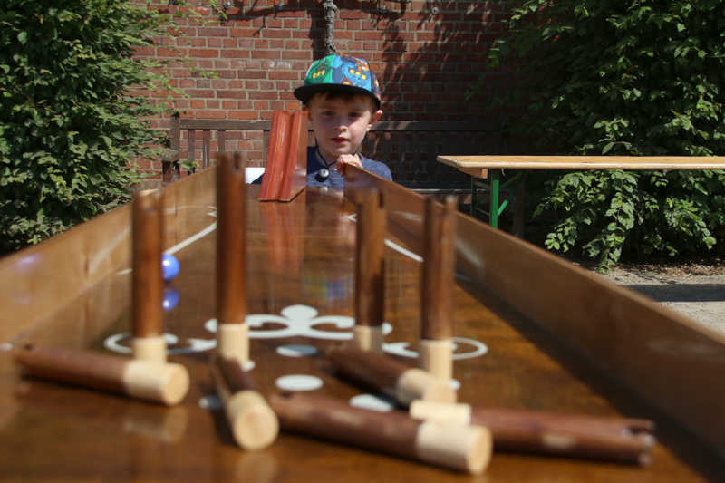 Wie nähert man sich der Festung Zitadelle spielerisch? Am besten beim Lebend-Mensch-Ärger-Dich nicht, Mahjong aber auch Kicker und Tischkegeln, bei „trou Madame“, Solitaire oder historischer Mühle. Die Abteilung Stadtmarketing der Stadt Jülich hatte zum 3.Renaissance-Picknick unter dem Motto „Spielen – gestern und heute“ eingeladen. Zehn Stationen waren – zuweilen sogar im Schatten – der Schlossfassade aufgebaut. Zur Stärkung gab es Kuchen und Pizza in Zitadellen-Form.