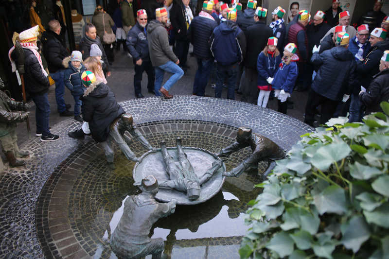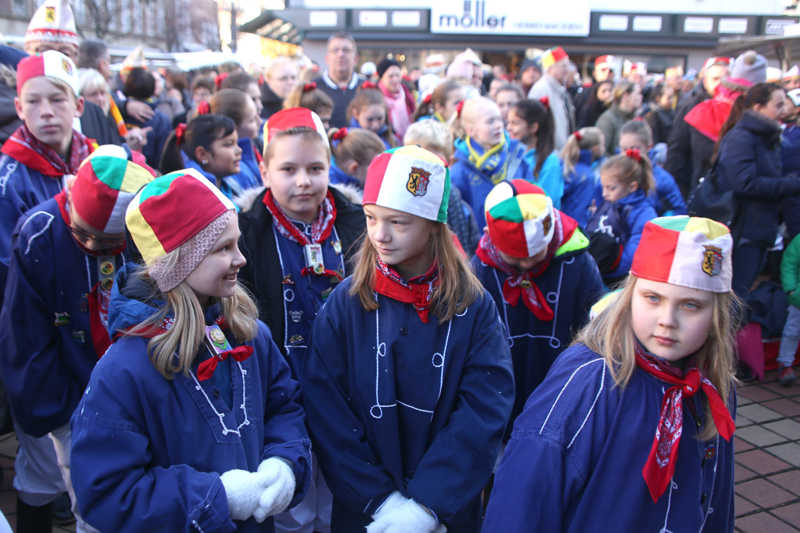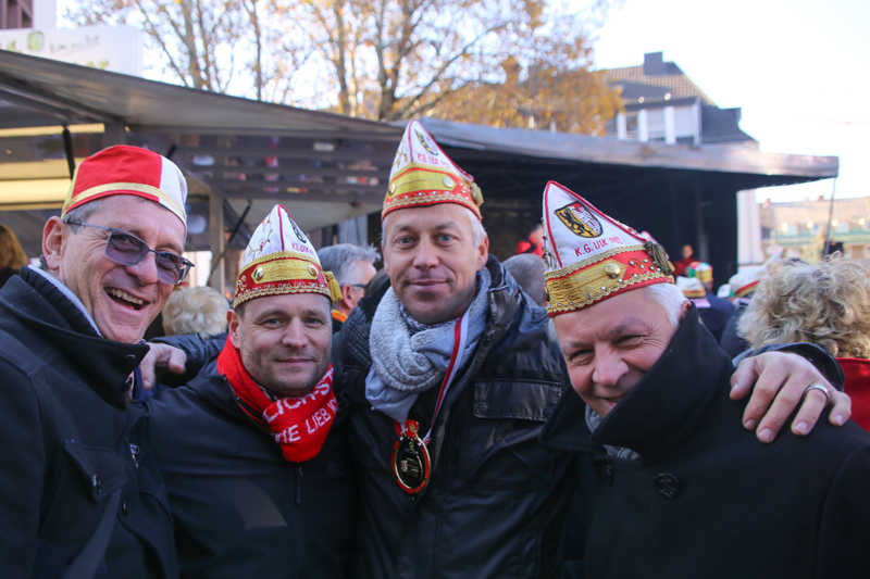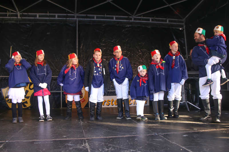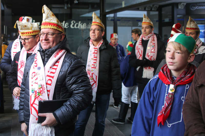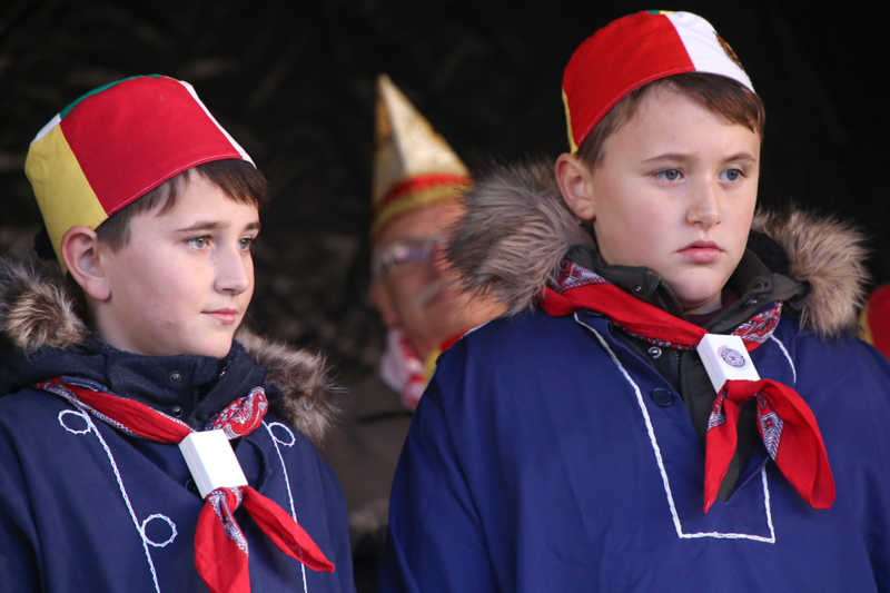 Traditionell am Lazarusbrunnen beginnt die Historische Gesellschaft den Sessionsauftakt. Von dort aus zogen die Karnevalisten mit ihren befreundeten Gesellschaften zum Kirchplatz, wo der gemeinsame Auftakt in die 5. Jahreszeit der KG Rurblümchen, KG Rursternchen und KG Ulk gefeiert wurde. Hier präsentierte sich auch das Kinder-Dreigestirn, das in dieser Session von der Jubiläumsgesellschaft Lazarus Strohmanus gestellt wird.