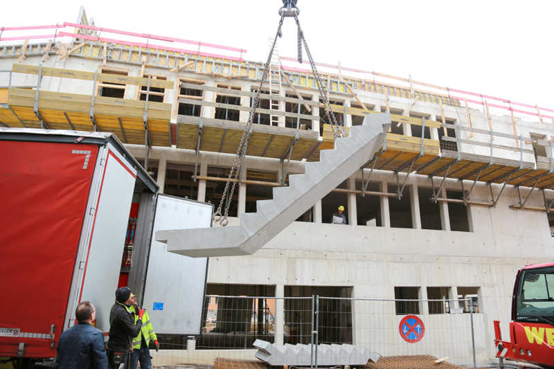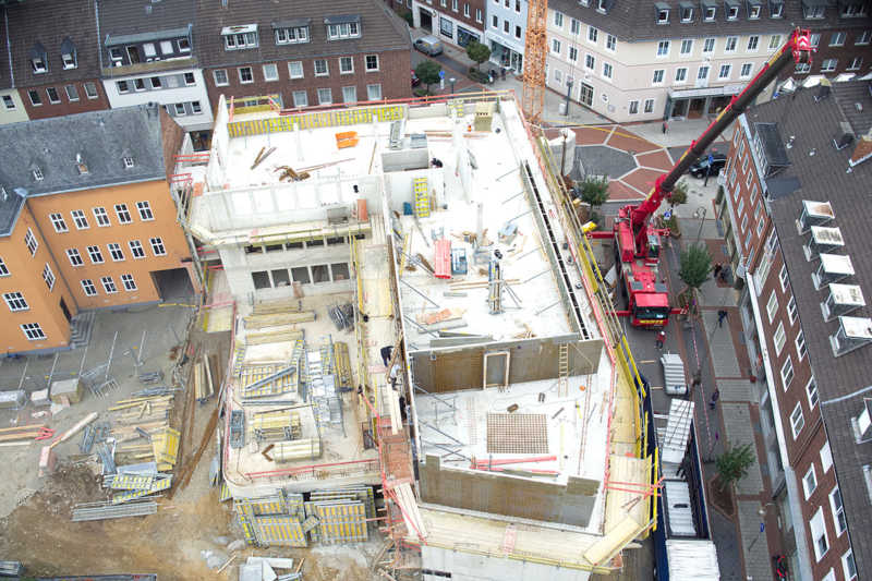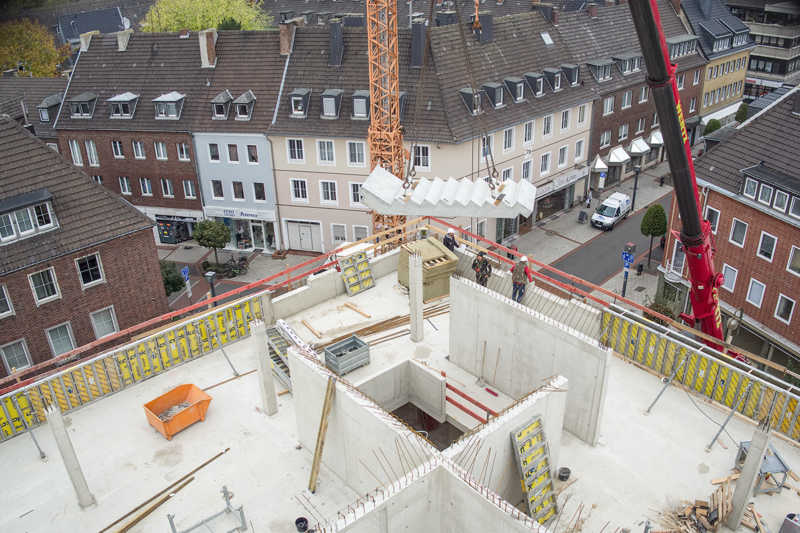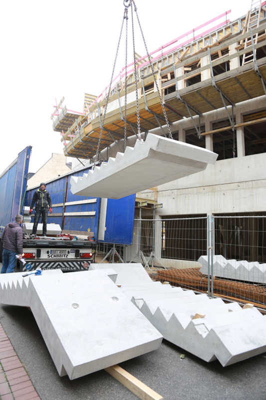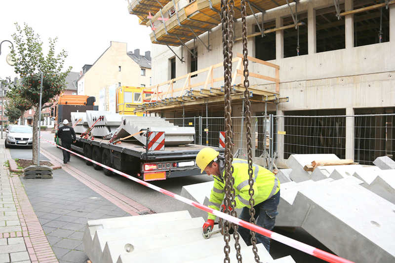 Immer mal wieder sind die Kapuzinerstraße und die Düsseldorfer Straße im Zuge der Bauarbeiten am Kreishaus Nord gesperrt. Es geht voran. Jetzt sind auf jeden Fall schon einmal die Treppen da.