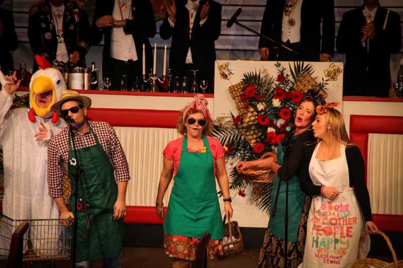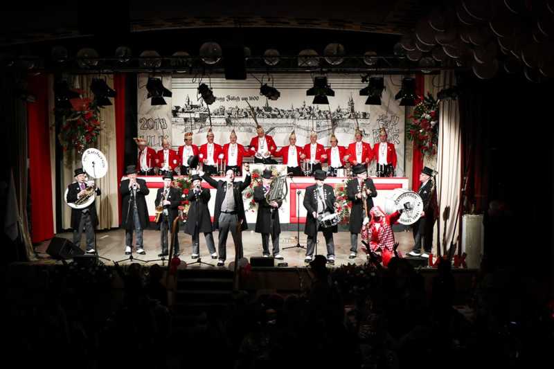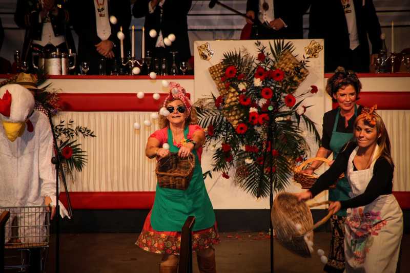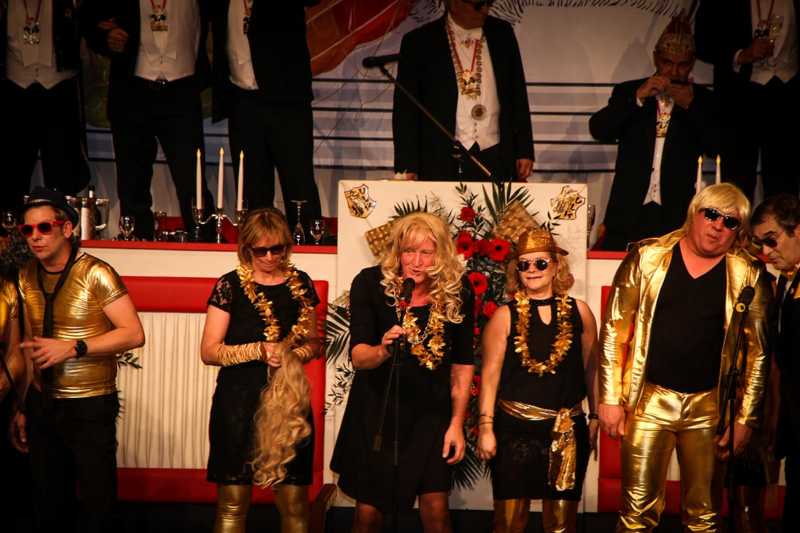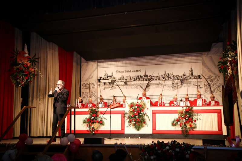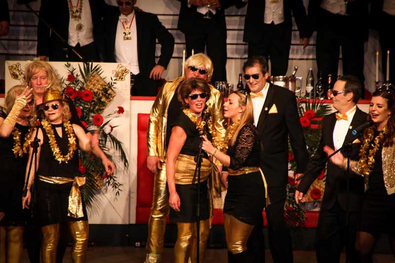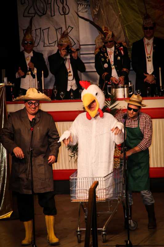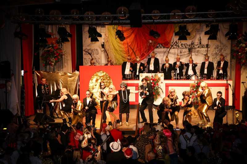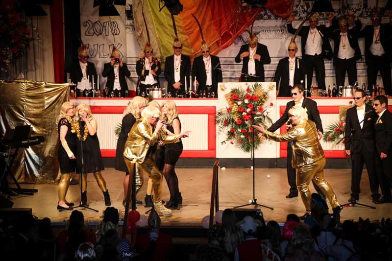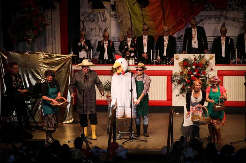 Ein goldener Abend in der Stadthalle Jülich: Begeistert blickt die KG Ulk Jülich auf ihre große Kostümsitzung „mit tollen Musikern, exzellenten Rednern, einem fantastischen Publikum und jeder Menge Spaß“, wie Christoph Küppers stellvertretend für die Ulk-Familie verkündet. Und das alles ganz unter unserem Sessionsmotto: „Golden Ei – von Agenten und Hühnern!“ Viele Sitzungsbesucher hatten sich dem Thema optisch angepasst: Viele Bond-Boys und –Girls waren unterwegs, zahlreiches Federvieh, dazu sogar der eine oder andere (mehr als knappe) goldene Anzug – kostümtechnisch musste sich kaum jemand verstecken.