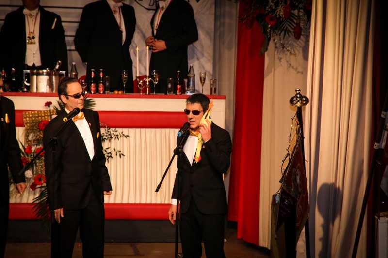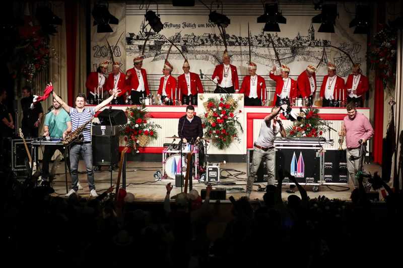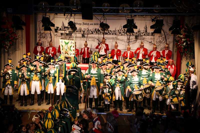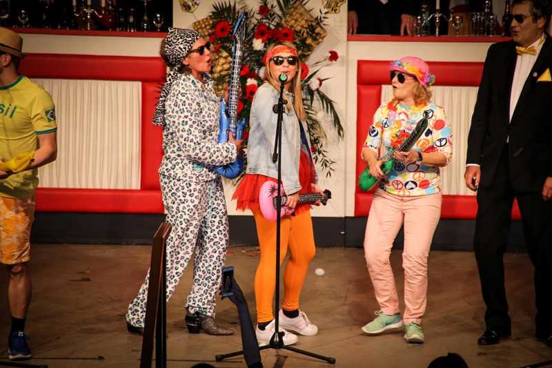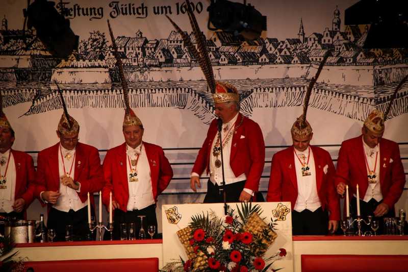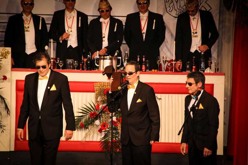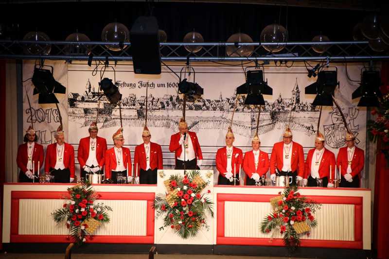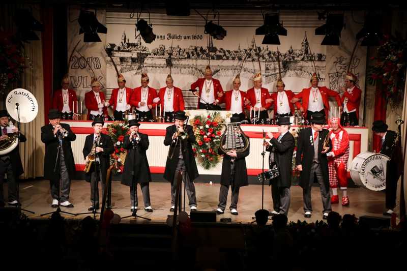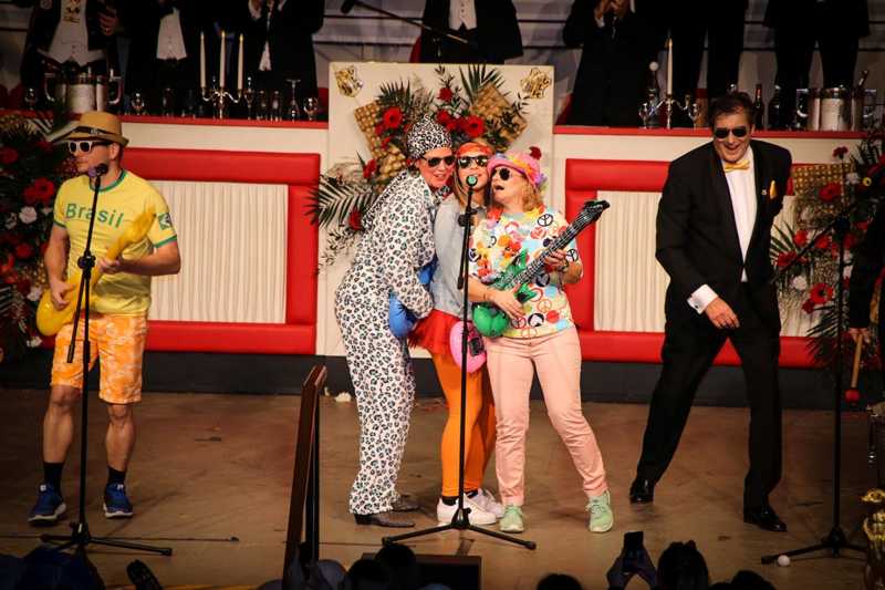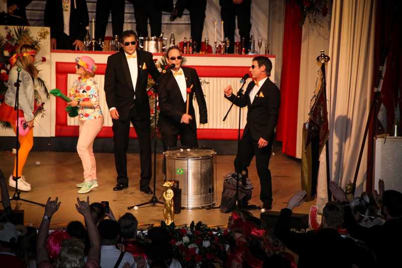 Ein goldener Abend in der Stadthalle Jülich: Begeistert blickt die KG Ulk Jülich auf ihre große Kostümsitzung „mit tollen Musikern, exzellenten Rednern, einem fantastischen Publikum und jeder Menge Spaß“, wie Christoph Küppers stellvertretend für die Ulk-Familie verkündet. Und das alles ganz unter unserem Sessionsmotto: „Golden Ei – von Agenten und Hühnern!“ Viele Sitzungsbesucher hatten sich dem Thema optisch angepasst: Viele Bond-Boys und –Girls waren unterwegs, zahlreiches Federvieh, dazu sogar der eine oder andere (mehr als knappe) goldene Anzug – kostümtechnisch musste sich kaum jemand verstecken.