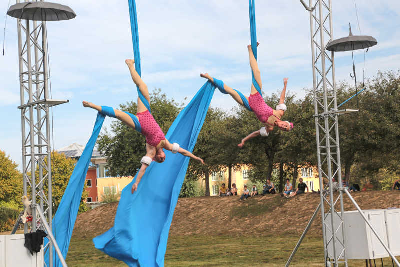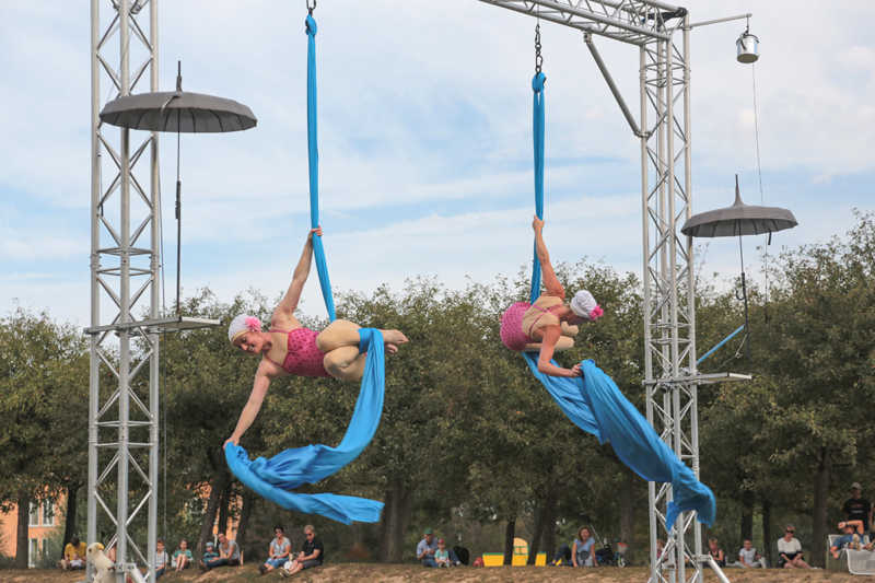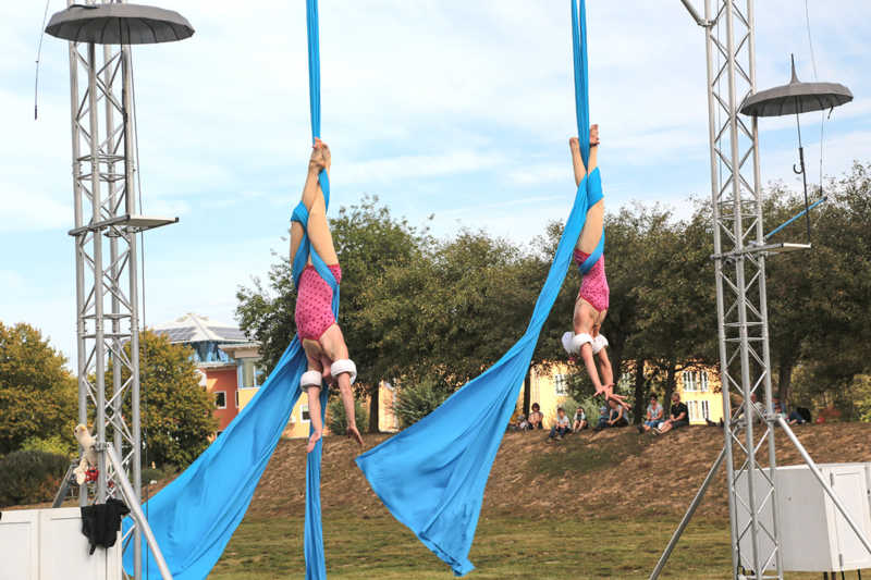 Traditionell begeht der Brückenkopf-Park das Herbstfest und die Menschen strömen in Scharen: 8515 Besucher waren diesmal dabei und flanierten an den rund 50 Ständen vorbei. Besondere Attraktion: Die beiden Artistinnen Julia Staedler und Ellen Urban mit ihrer waghalsige Luftartistik „la mer“, gewürzt mit ein wenig Nostalgie,Romantik und einem guten Schuss Humor.