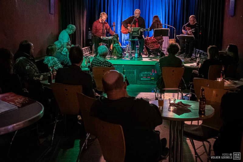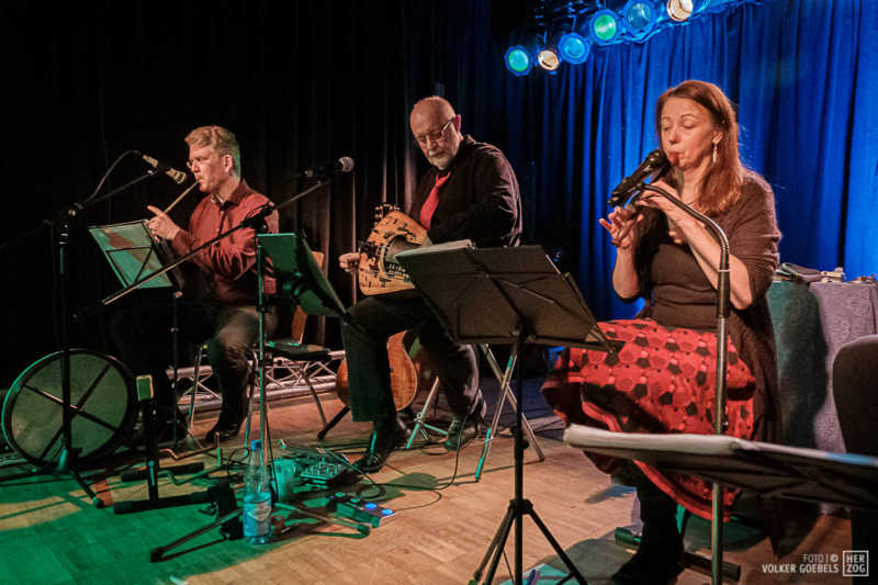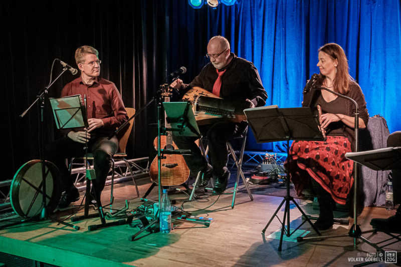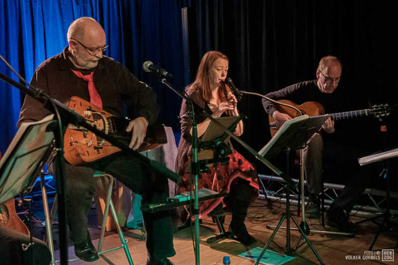 Wer kennt noch „Ougenweide“ und deren Freuden „im Badehaus“? So ein Hauch der „guten alten Zeit“ durchwehte beim jünngsten NoiseLess den Kulturbahnhof. Die Folk-Band Gambrinus bot in einem abwechslungsreichen Programm politische Lieder, traditionelle Folksongs, Balladen, satirische Chansons und Instrumentalstücke auf teils ungewöhnlichen Instrumenten dar. Zwischen Solostimmen und mehrstimmigem Gesang verbinden die Musiker an Cister, Drehleier, keltischer Harfe sowie den klassischen Saiteninstrumenten Musikstile wie deutschen, keltischen und amerikanischen Folk aus verschiedenen Epochen.