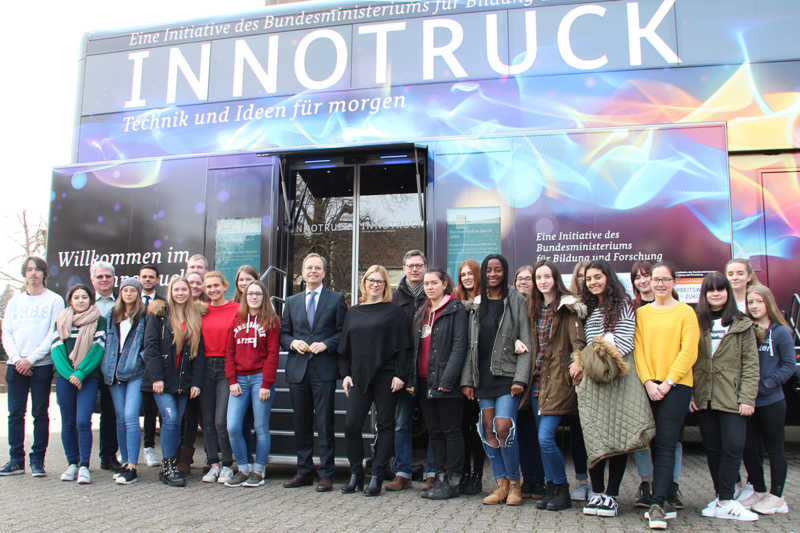 Wie wird aus einer guten Idee eine erfolgreiche Innovation? Was versteht man überhaupt unter Innovationen? Wozu sind sie gut – und welche Risiken sind mit ihnen verbunden? Antworten auf diese und andere wichtige Fragen gibt der InnoTruck: Als „Innovations-Botschafter“ des Bundesministeriums für Bildung und Forschung (BMBF) macht das doppelstöckige Ausstellungsfahrzeug auf seiner Deutschland-Reise auch Station am Jülicher Mädchengymnasium.