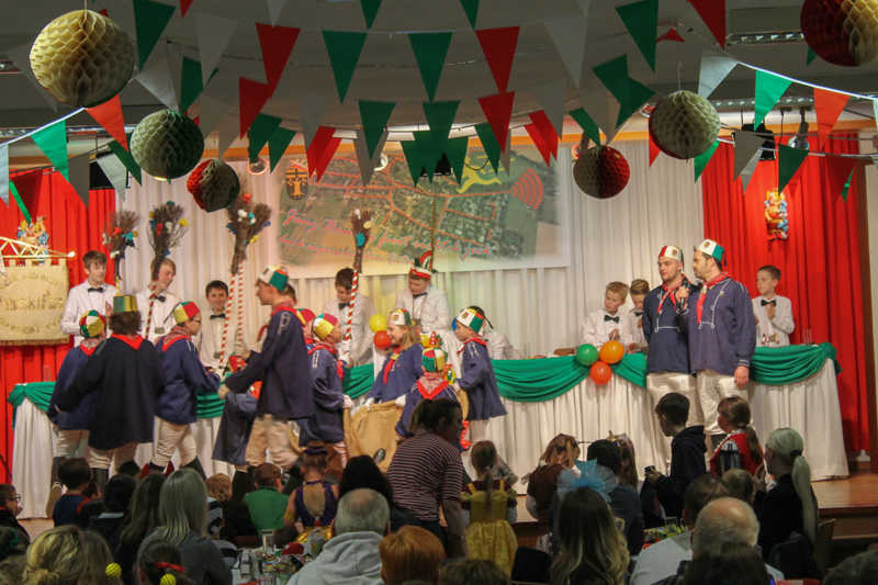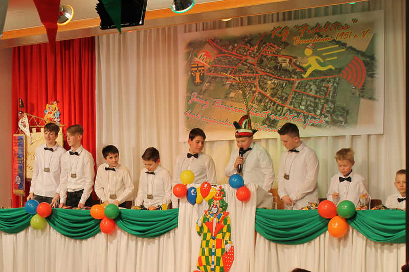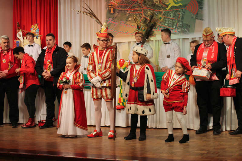 Karneval rückt immer näher und die karnevalistischen Veranstaltungen mehren sich. Am Samstag lud die KG Fidelitas Bourheim zur Kindersitzung. Genau um fünf Minuten vor Drei zog der Kinder-Elferrat mit Kinder-Präsidenten Vincent Wagels auf die Bühne. Gleich zu Anfang war das diejährige Jülicher Kinder Dreigestirn Prinz Robert (Klanten), Prinzessin Maxima (Ingelsperger), Bauer Eva Maria (Ingelsperger) und der Page Monique (Esser) zu Gast und begrüßte ebenfalls die Besucher.
