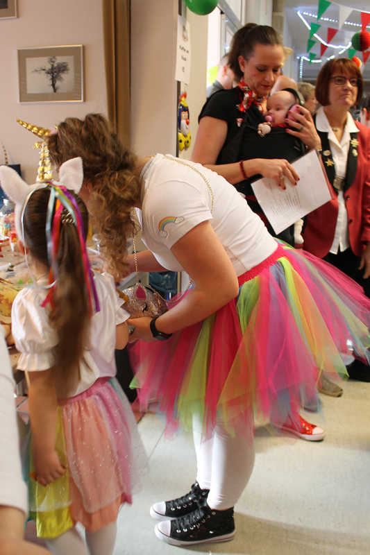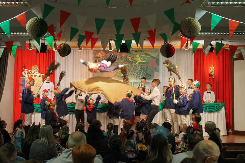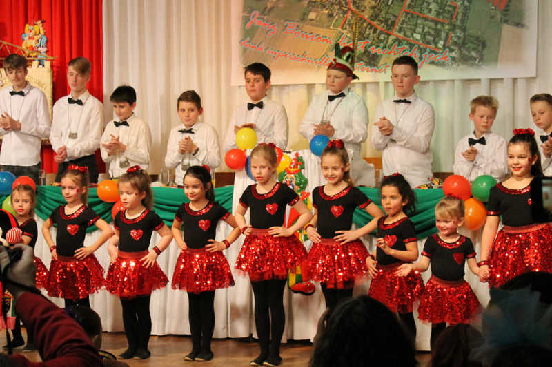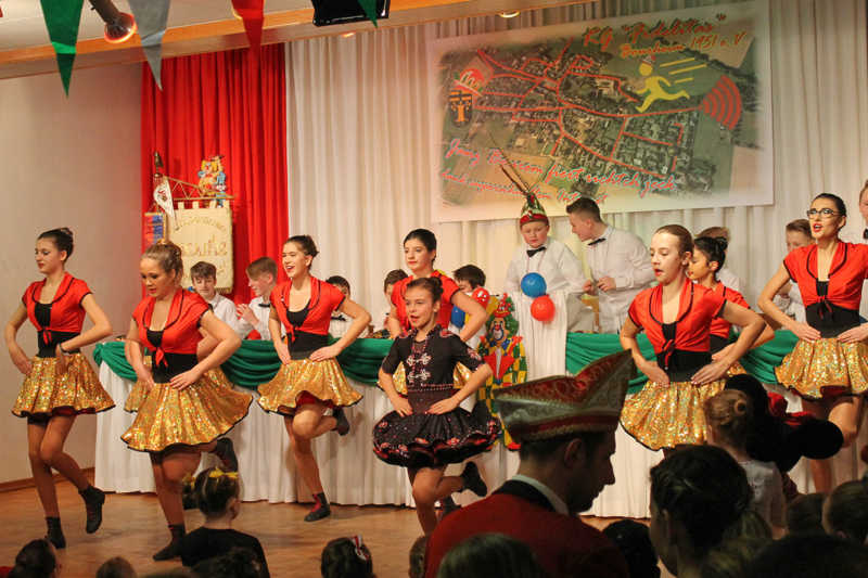 Was dann folgte waren knapp zwei Stunden volles Programm, das von über 150 Mitwirkenden, vor allem Tänzerinnen und Tänzer, bestritten und im Vorfeld von Britta Sieben gestaltet worden war. Zuckersüß ging es schon gleich mit dem Kindergarten Bourheim los. Danach folgten die Tanzgruppen und das Solo-Mariechen der KG Maiblömche Lich-Steinstraß, der TSC Schwarz Gelb Jülich, die kleine Garde des AKV Linnich, die Mini-Starlights der Rursternchen, die Strohpüppchen der KG Selgersdorf, die Fidelen Brüder Koslar mit mehreren Tanzgruppen und ihrem Solo-Mariechen und zum guten Schluss die Kindertanzgruppe des Traditionsvereins Lazarus Stromanus Jülich. Besonders stolz ist die KG Fidelitas indes auf ihre hauseigene Tanzgruppe, die bereits nach der Pause ihren großen Auftritt hatte und mit ihrer Trainerin Nathalie Pitz ihr Heimrecht in vollen Zügen genoss.