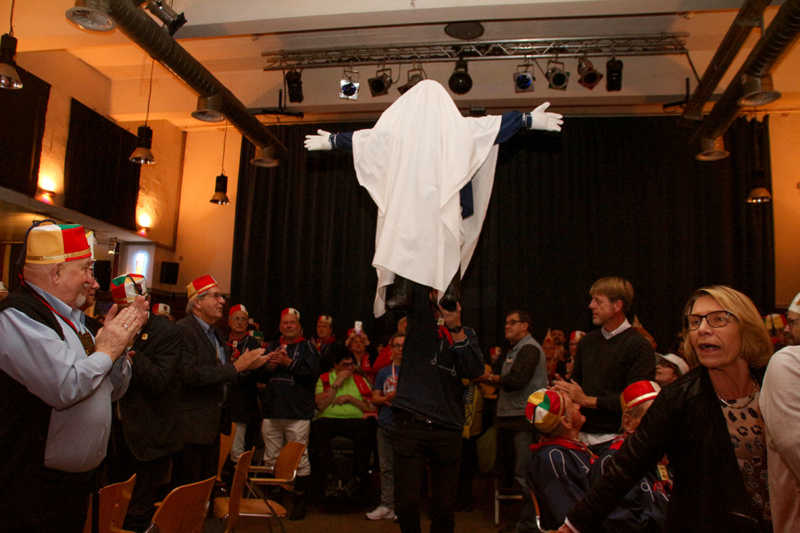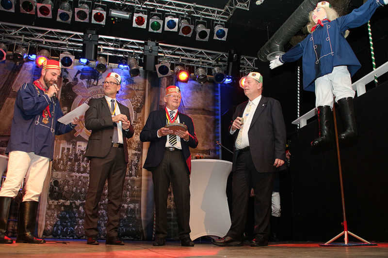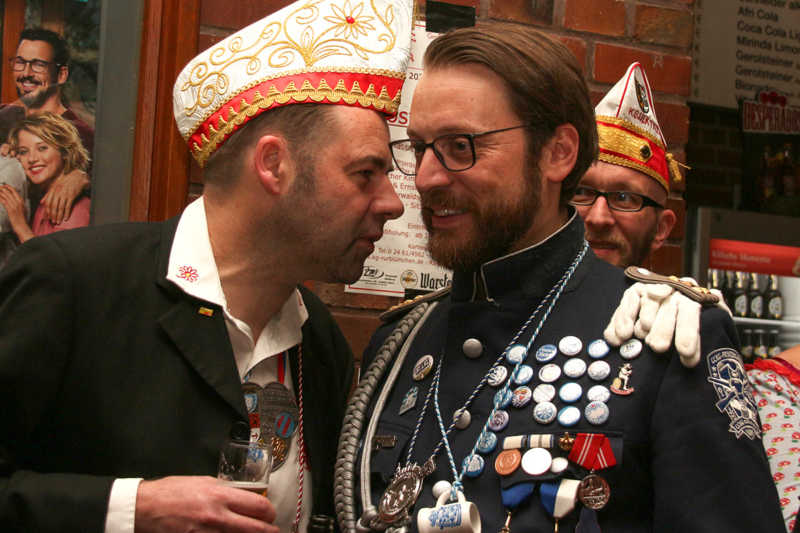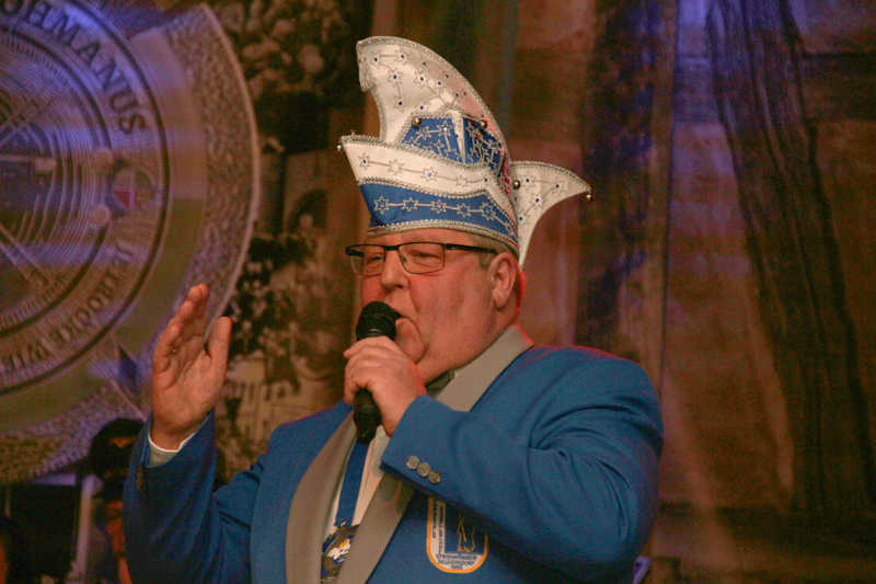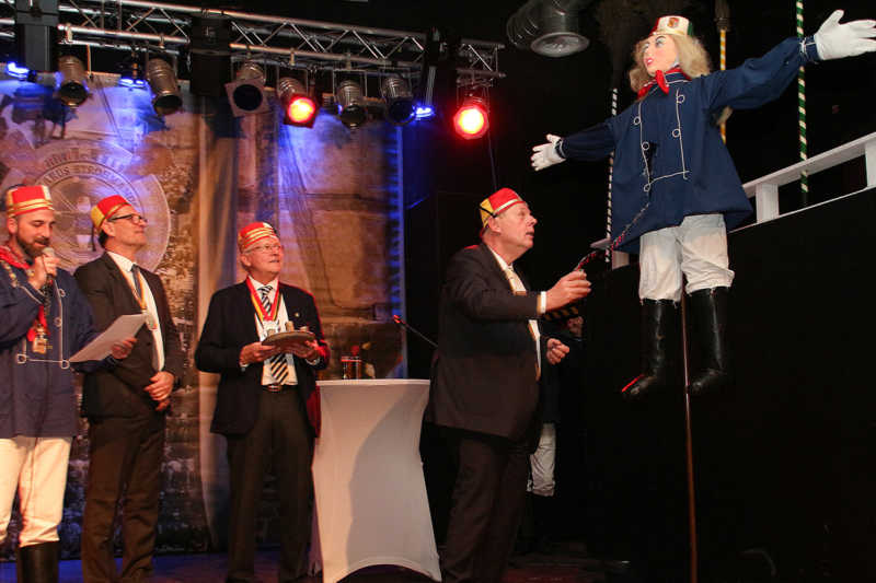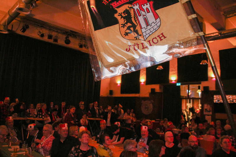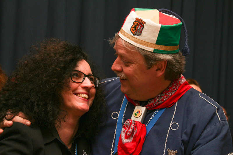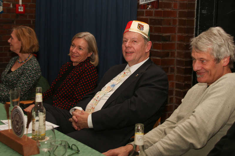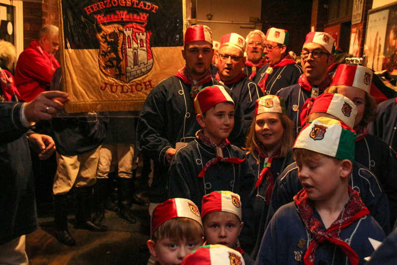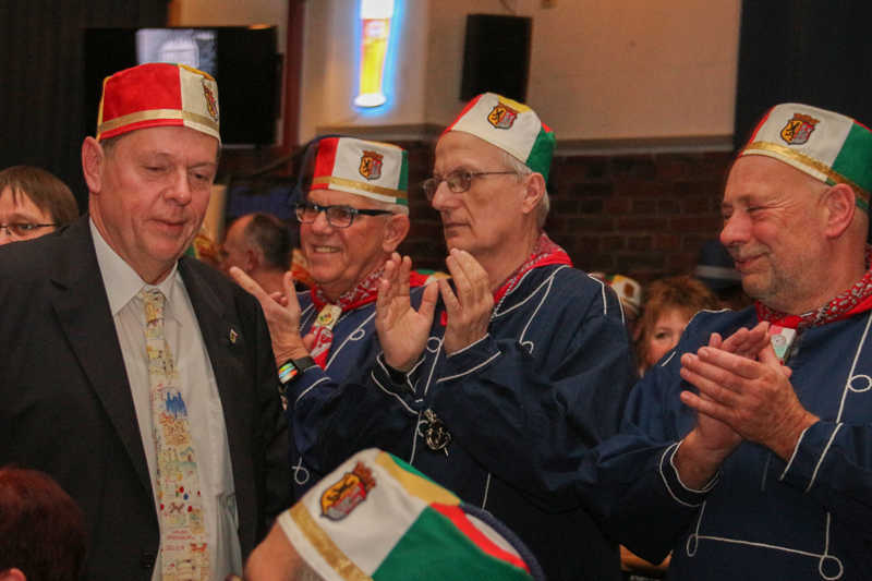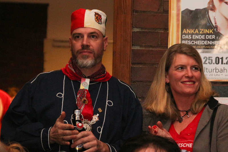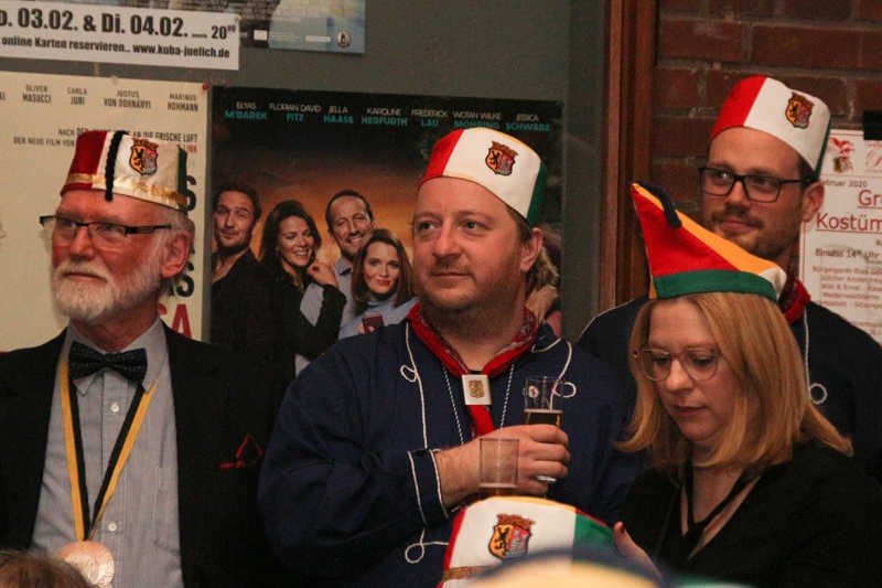 Durch die Bücher, so Präsident David Ningelgen, trüge der Pate weit über die Stadtgrenzen und in die Welt hinaus das in Jülich gelebte Brauchtum und erklärte quasi, warum Wolfgang Hommel die Patenschaft angetragen worden war. So ganz ohne Augenzwinkern ging es aber nicht, denn der Pate selbst hatte sich noch ehe die Historische Gesellschaft es tun konnte, seine Amtsübernahme öffentlich gemacht und so bezeichnete der Präsident denn auch in der Beschreibung jenen Wolfgang als eine „,Muttkrat‘, sich selles proklamierende… Mann“ Das tat selbstverständlich der guten Feierlaune keinen Abbruch.