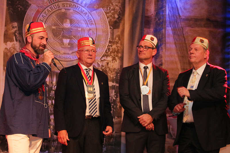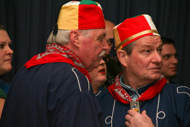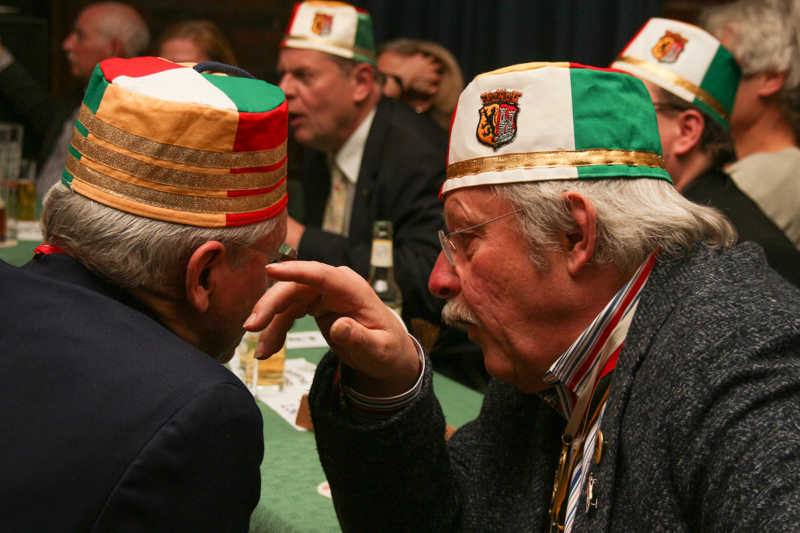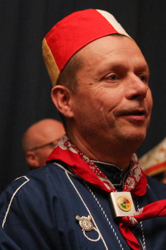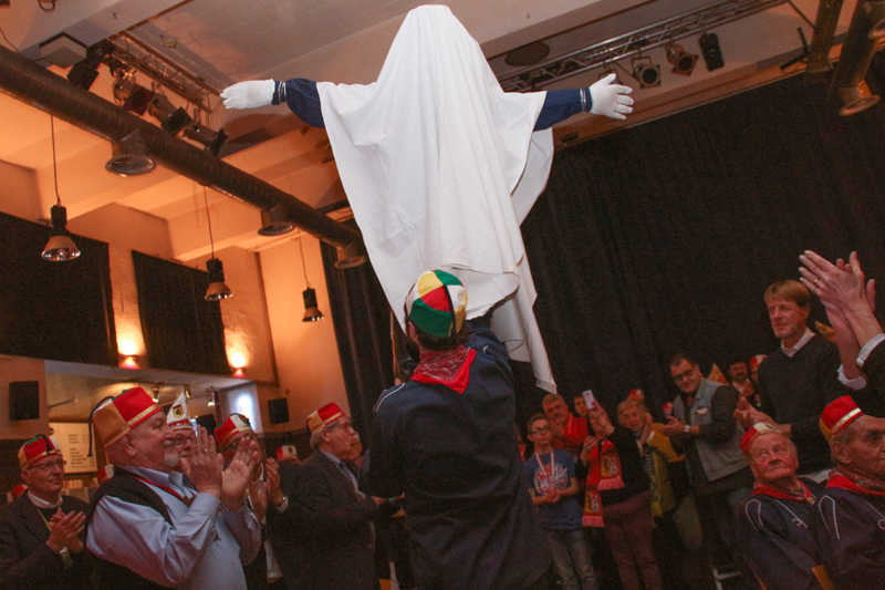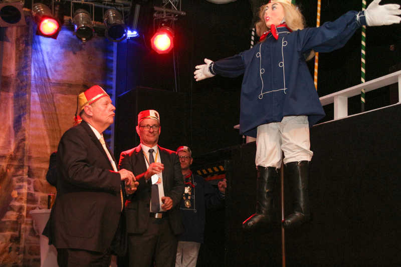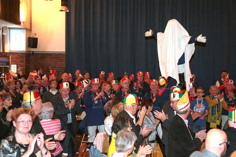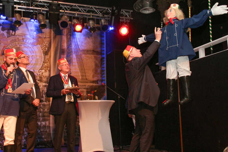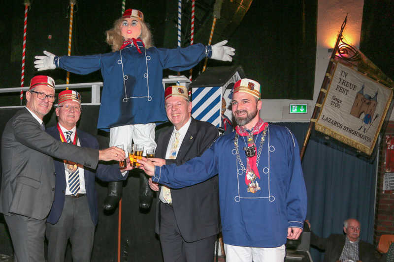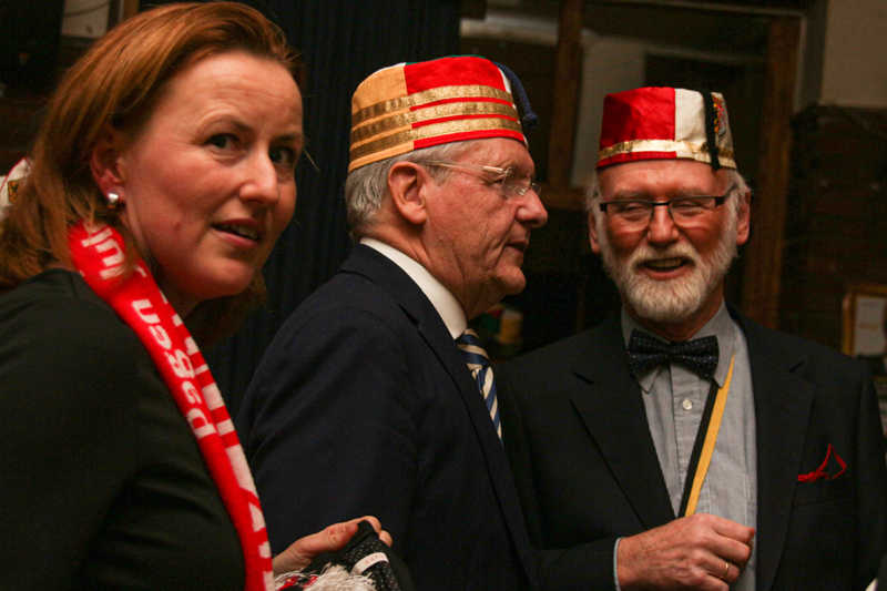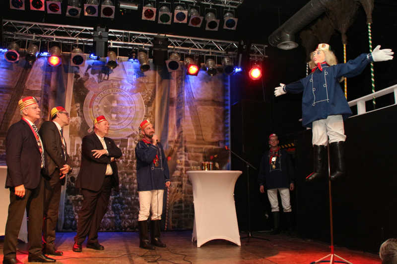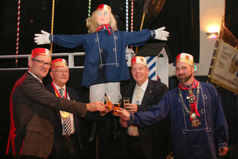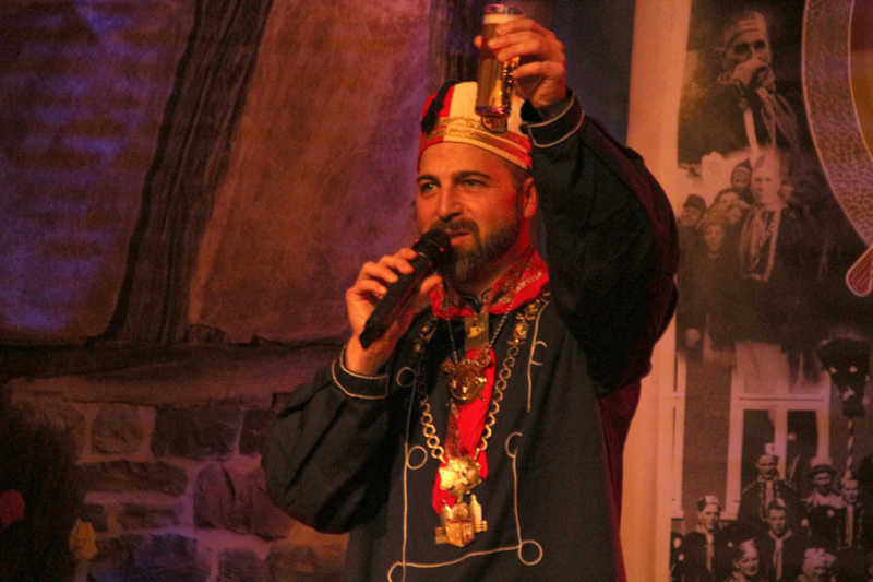 Durch die Bücher, so Präsident David Ningelgen, trüge der Pate weit über die Stadtgrenzen und in die Welt hinaus das in Jülich gelebte Brauchtum und erklärte quasi, warum Wolfgang Hommel die Patenschaft angetragen worden war. So ganz ohne Augenzwinkern ging es aber nicht, denn der Pate selbst hatte sich noch ehe die Historische Gesellschaft es tun konnte, seine Amtsübernahme öffentlich gemacht und so bezeichnete der Präsident denn auch in der Beschreibung jenen Wolfgang als eine „,Muttkrat‘, sich selles proklamierende… Mann“ Das tat selbstverständlich der guten Feierlaune keinen Abbruch.