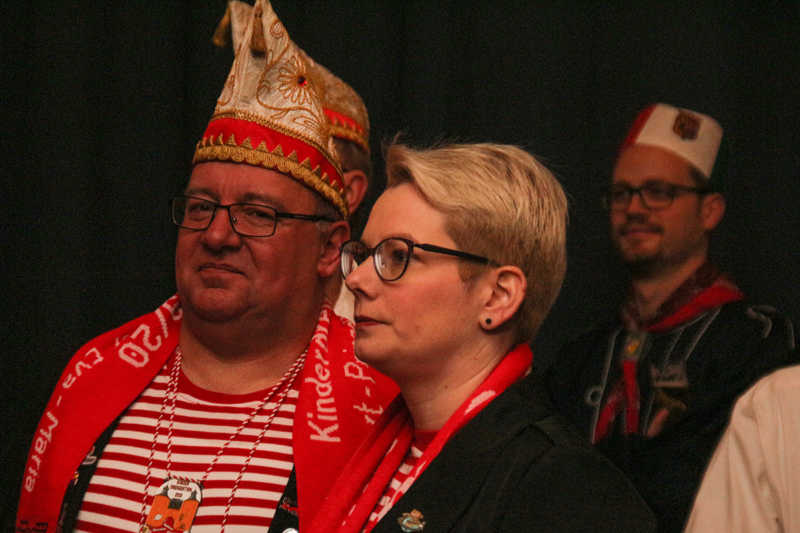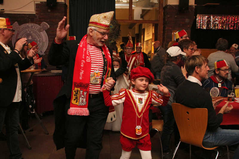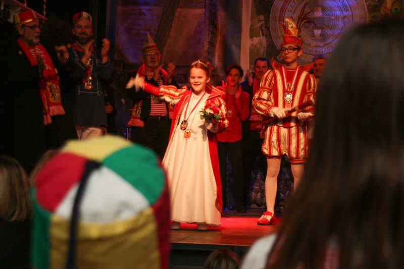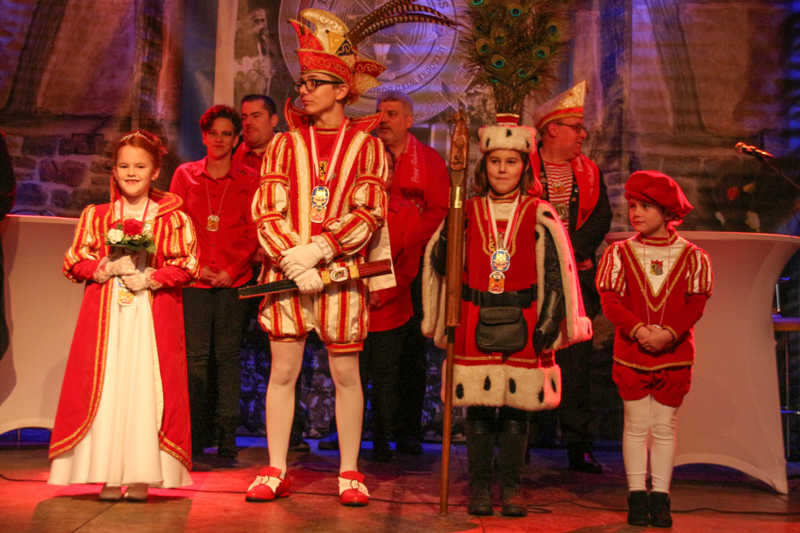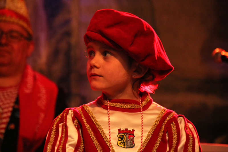 Im Zuge der Taufe, die, wie es sich gehört, ordentlich begossen wurde, feierte das Jülicher Kinderdreigestirn seine wunderbare Premiere (nach der Proklamation, versteht sich!): Textsicher und mit majestätischen Selbstbewusstsein präsentierten sich Robert I. mit seiner Maxima I., der Bäuerin Eva Maria und Page Monique, die Süße und rockten – wie es seit Jahren jetzt schon fast Tradition ist – die Bühne. Diesmal gab es eine jugendfreie Cover-Version von „Poppe, Kaate, Danze“ mit Show-Einlage, die reichlich mit Applaus belohnt wurde.