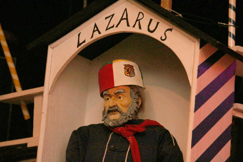Eher bescheiden nahm sich Pate Wolfgang Hommel aus, und meinte, dass dem Lazarus als Paten wohl eher einen Feuerwehrmann oder ein Rettungsschwimmer zu wünschen sei, vielleicht auch einen Klimaschützer, damit es immer genügend Heidekraut geben möge, dass den Mann ja ausmacht, oder geistlichen Beistand für die Fürbitten, die man so brauche. Da er das alles nicht bieten kann, versprach der „jruße Fründ un Schreiberling vom Blot der Feschers, denne – die de Ziedung der Stadt herus braate“ seinem Patenkind lebenslang „nicht als Buchmacher, sondern Büchermacher“ sein Andenken hochzuhalten, und darüber zu berichten und so sein Andenken hochzuhalten – „wenn es einer übersetzt, auch in chinesisch“.