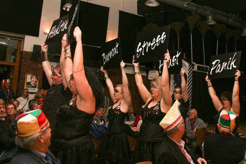 Für gute Stimmung sorgten Eva East als singender Clown, die alte und neue Gassenhauer zum Besten gab, sowie die Formation De 5Fleje, die nicht nur närrisches mitbrachten, sondern die Gäste auch auf die „Country Road“ mitnahmen.