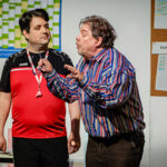 Eigentlich ist es eine Tragödie. Ein verzweifelter Vater, der auf die Allmacht eines Lehrerkollegiums trifft, das sich in weiten Teilen als wenig (oder zuweilen zu viel?) der jungen Schülerschaft zugetan erweist. Wer selbst Kinder in einer Schule hat oder hatte und sich mit ähnlichen Umständen konfrontiert sah, dem blieb so manches Lachen im Halse stecken. Da werden die Jugendlichen als „chancenloses genetisches Gemüse“ bezeichnet, unterstellt, dass sie ungebildet, unwillig und eher flittchenhaft sind – wenn es sich denn um Mädchen handelt. „Best of Klischee“ bedient das Stück „Eingeschlossene Gesellschaft“ von Jan Weiler. Das gilt natürlich auch für die Lehrerschaft: der gestrenge Notenbesessene, die verurteilende Altjungfer, die joviale Versteherin, der trainingsanzugtragende Sportlehrer, der nicht so ganz für voll genommen wird, der Chemielehrer als Professorentyp, die Referendarin mit modernen Ansichten. Man fühlt sich an die Commedia dell’Arte erinnert, in der es ja auch vor allem Typen sind, die in Szene gesetzt werden.