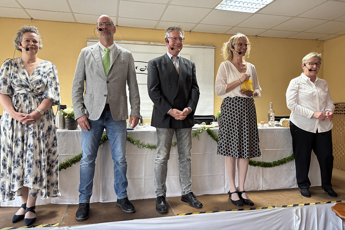 Ein wenig diskutiert hätten sie schon, ob man das den Dorfbewohnern so präsentieren könne, verriet Willi Schwarzkopf anschließend. Doch ein neues Vorstandsteam setzte an diesem Nachmittag gleich mehrere Standards neu – auch beim Einstand: Ein Sketch gleich zu Beginn – und alle waren mitten im Geschehen: Als Geschäftsführerin löste Korinna Schmitz ihre langjährige Vorgängerin Elisabeth Wolff ab. Erster Vorsitzender ist Thomas Czichowski, zweiter Vorsitzender Willi Schwarzkopf. Um die Kasse kümmern sich Daniela Reinhard und Karin Delonge-Mundt, die auch souverän das Programm moderierte.