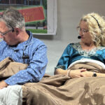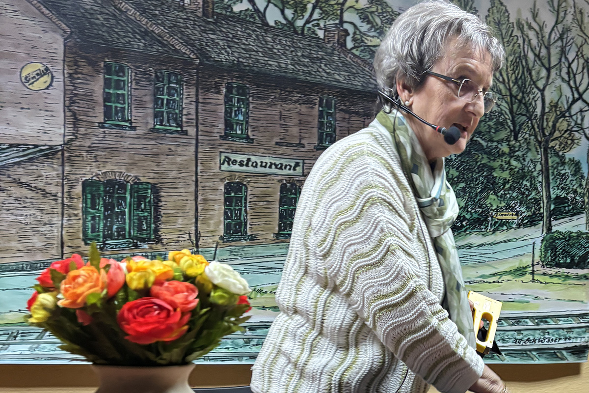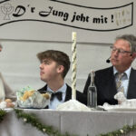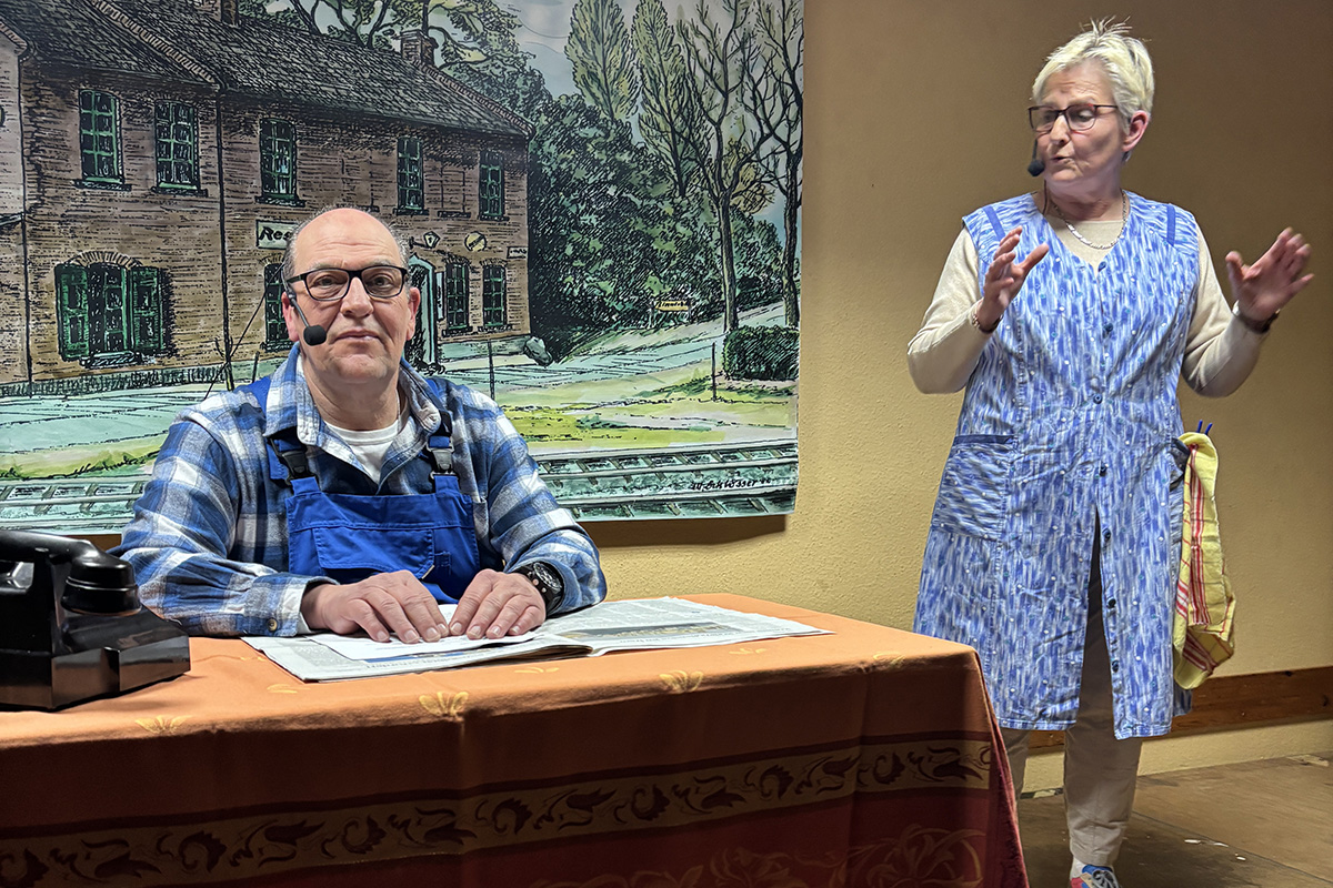 Trotzdem zeigte die junge Generation in Gestalt von Jonah Loevenich, dass auch junge Leute noch mit Mundart zu begeistern sind. Bei Oma Veronika zu Hause werde oft geübt, verriet diese. Und auch in diesem Abend ließ sich Veronika Loevenich nicht lumpen und gab dem zugezogenen „Ortsbürgermeister“ aus der Großstadt – treffend gespielt von Ortsvorsteher Ralf Palaß (der eigentlich nicht Zugezogener aus der Großstadt ist) – Nachhilfe in Kirchberger Platt. Was eine „Schrappnell“ sei, die im Dorf – „henger dat Kruffes“ wohne, dass schrieve sich mit drei iii schreibe und Verschtejeld „Fersengeld“ bedeutet – ein Begriff, den er als Ortsvorsteher sicher mal brauche. Genauso wie den „Stetswink“ – den Rückenwind.