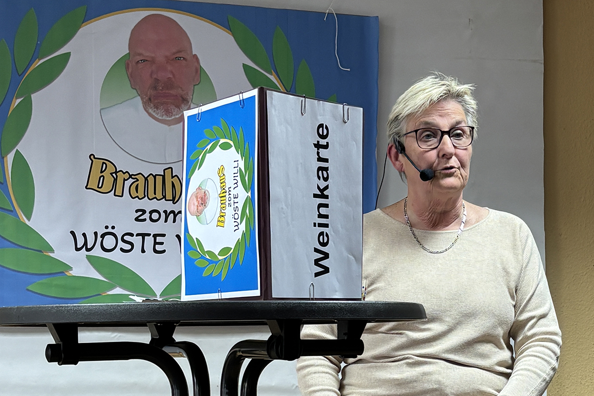 Recht schnell wurde allerdings klar: Auch Essen hat einen festen Platz in der Mundart. Dass „Stiefe Ries mit Ziernekniss“ – Milchreis mit Zimt bedeutet, war die Quiz-Frage ans Publikum. Dass das bildlich ausgedrückt doch eher der Knös zwischen den Zehen bedeutet, war aber schnell vergessen, denn die Liste der anderen typisch rheinischen Leckereien, die Ralf als Grundwortschatz Kirchberger Mundart lernen sollte, ließ dem Publikum sicher das Wasser im Munde zusammenlaufen. Essen, das ist ja auch irgendwie Mundart.