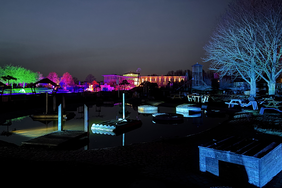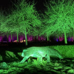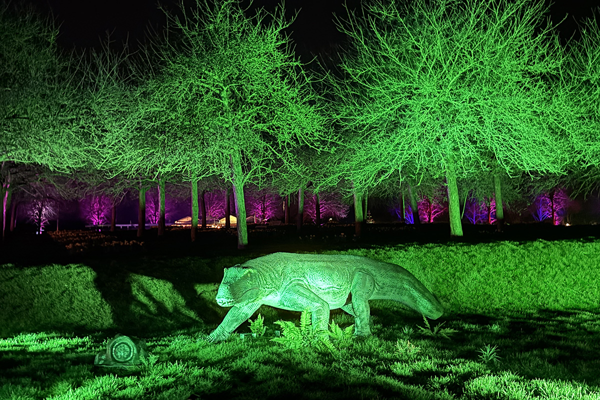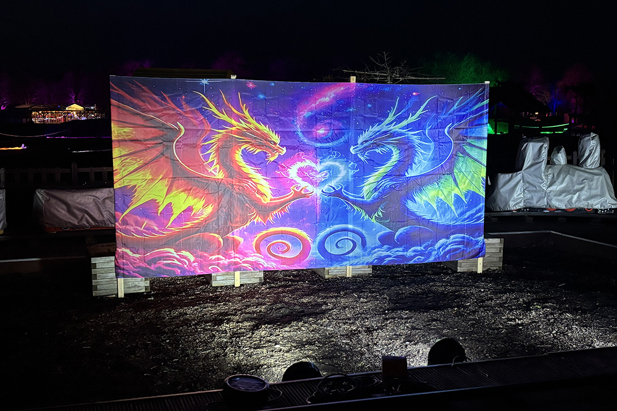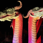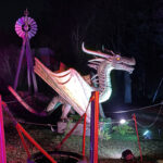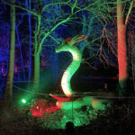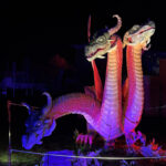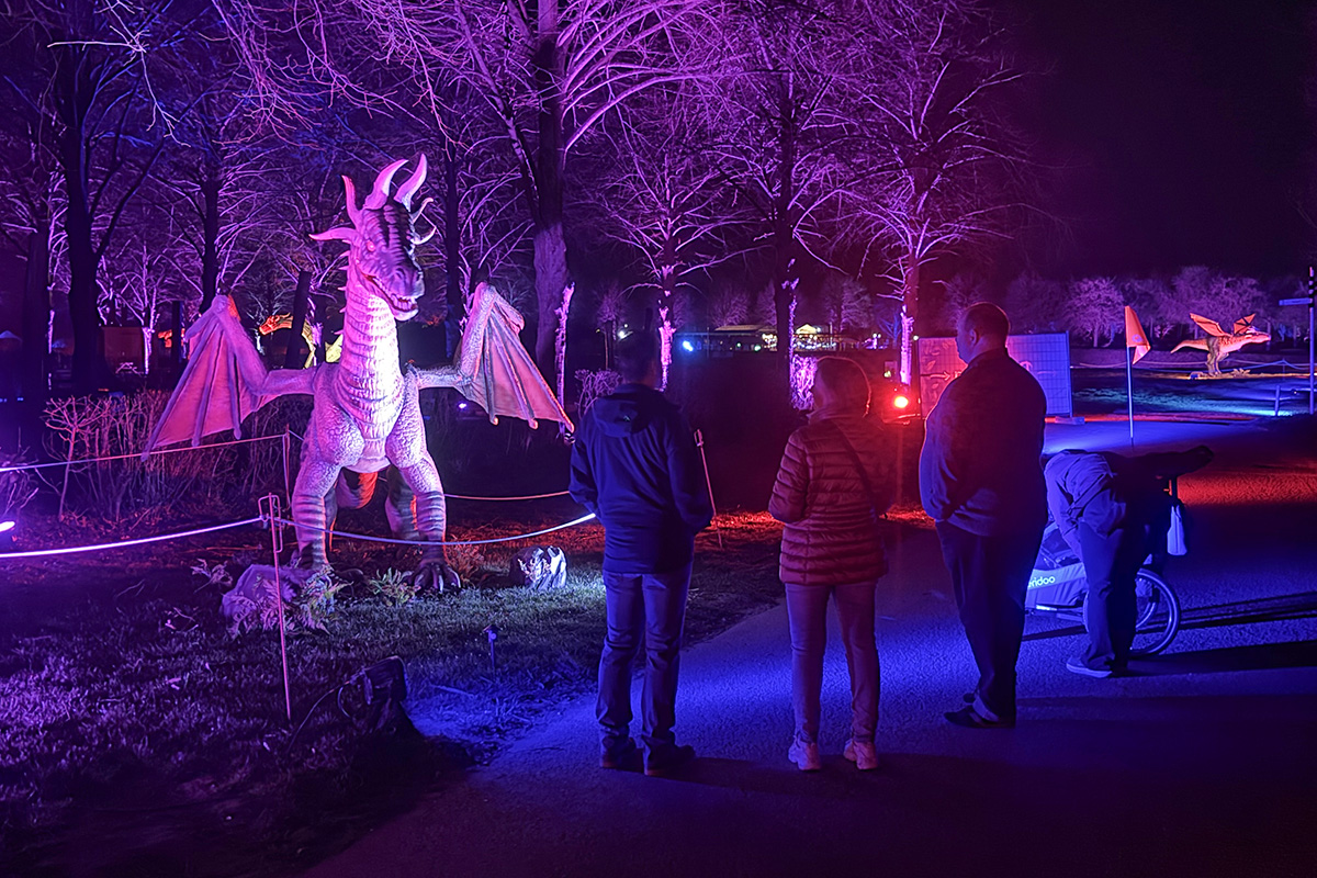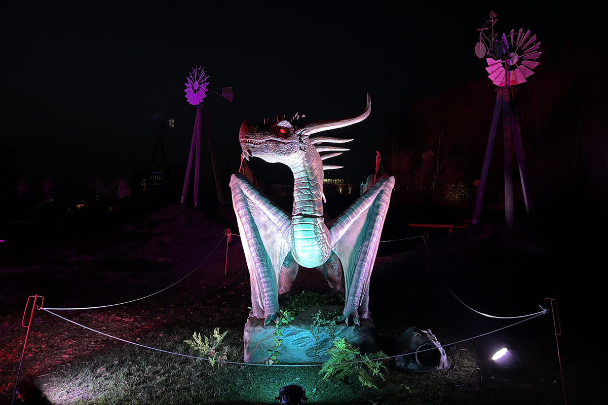 Der Rundgang beginnt am Lindenrondell am Eingang des Parks. Von dort aus führt die Route in Richtung Zoo. Aus Rücksicht auf die Tiere bleibt dieser Bereich allerdings ausgespart. Stattdessen schwenkt der Weg kurz davor durch den Wald zurück, vorbei am Spielplatz und schließlich wieder in Richtung Lindenrondell. Wer der empfohlenen Route folgt, erlebt die Installation so, wie sie gedacht ist – denn einige Lichtinstallationen sind gezielt ausgerichtet und könnten sonst blenden. Dabei ist auch ein Drache mit einer Höhe von über drei Metern; er ragt über die Besucher hinweg. Andere Exemplare besitzen gleich zwei oder sogar drei Köpfe und wirken dadurch noch imposanter. Manchmal fühlt man sich beim Rundgang fast wie in „Jurassic Park“ – nur eben mit Drachen. Gerade für Kinder dürfte der Spaziergang durch die beleuchtete Drachenwelt ein echtes Erlebnis werden.