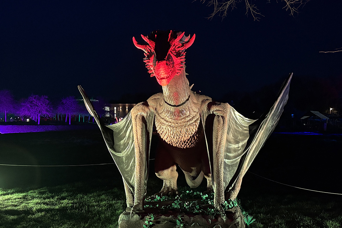 Der Herbst ist eigentlich die Zeit der leuchtenden Installationen im Brückenkopf-Park. Doch in diesem Frühjahr sorgen nicht die Herbstmotive für staunende Besucher – sondern gewaltige Drachen. Mit den „Drachenlichtern“ zieht eine neue Lichterausstellung in den Park ein und entführt die Gäste in eine Welt voller Fabelwesen.