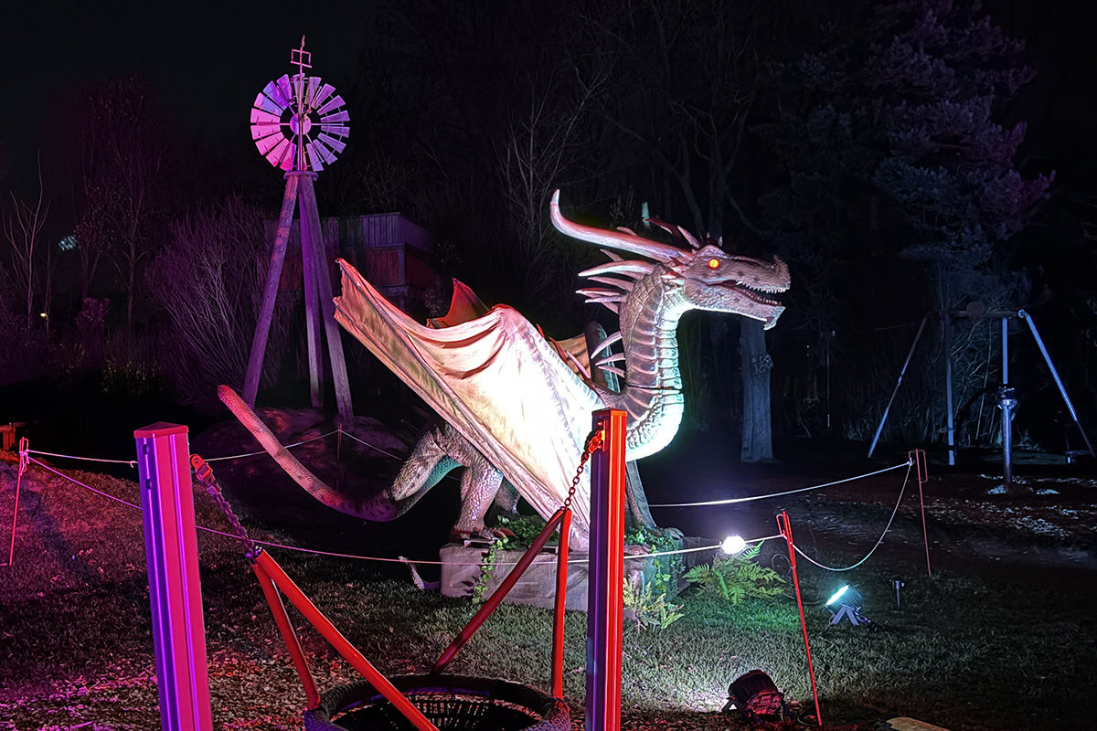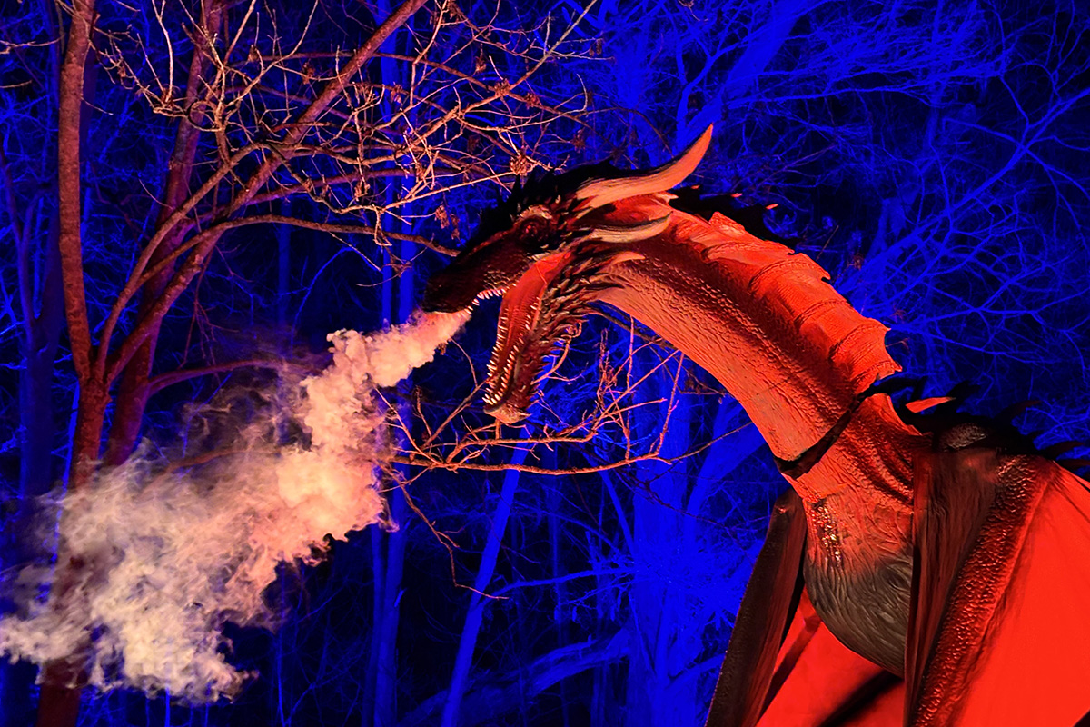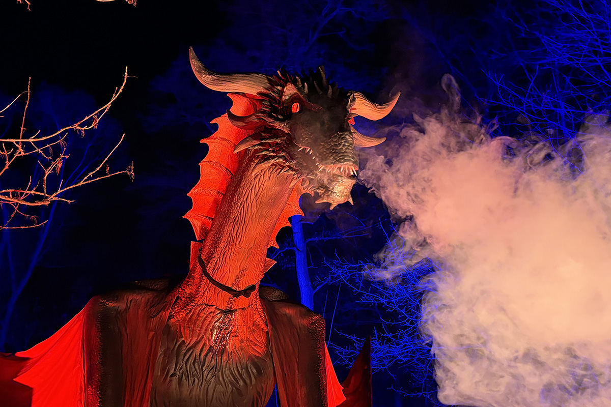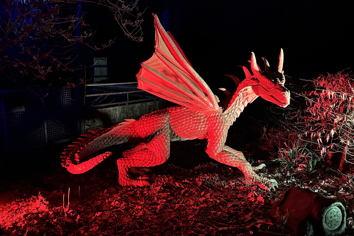 Hinter den Figuren steckt aufwendige Technik. Die Drachen sind sogenannte Animatroniken – eine Mischung aus Mechanik, Elektronik und beweglichen Elementen. Insgesamt wurden etwa 20 Drachen aufgebaut, viele davon aus mehreren Teilen zusammengesetzt, damit sie überhaupt transportiert werden konnten. Für die Installation im Park wurden außerdem zahlreiche Leitungen verlegt: Nach Schätzungen des Technikteams kommen dabei rund zehn Kilometer Kabel zusammen. Wer jetzt befürchtet, dass die beliebten Herbstlichter dadurch ersetzt werden, kann beruhigt sein. Auch sie sollen wieder stattfinden. „Auf jeden Fall – ab Mitte Oktober wieder wie gewohnt“, sagt Göntgen.
