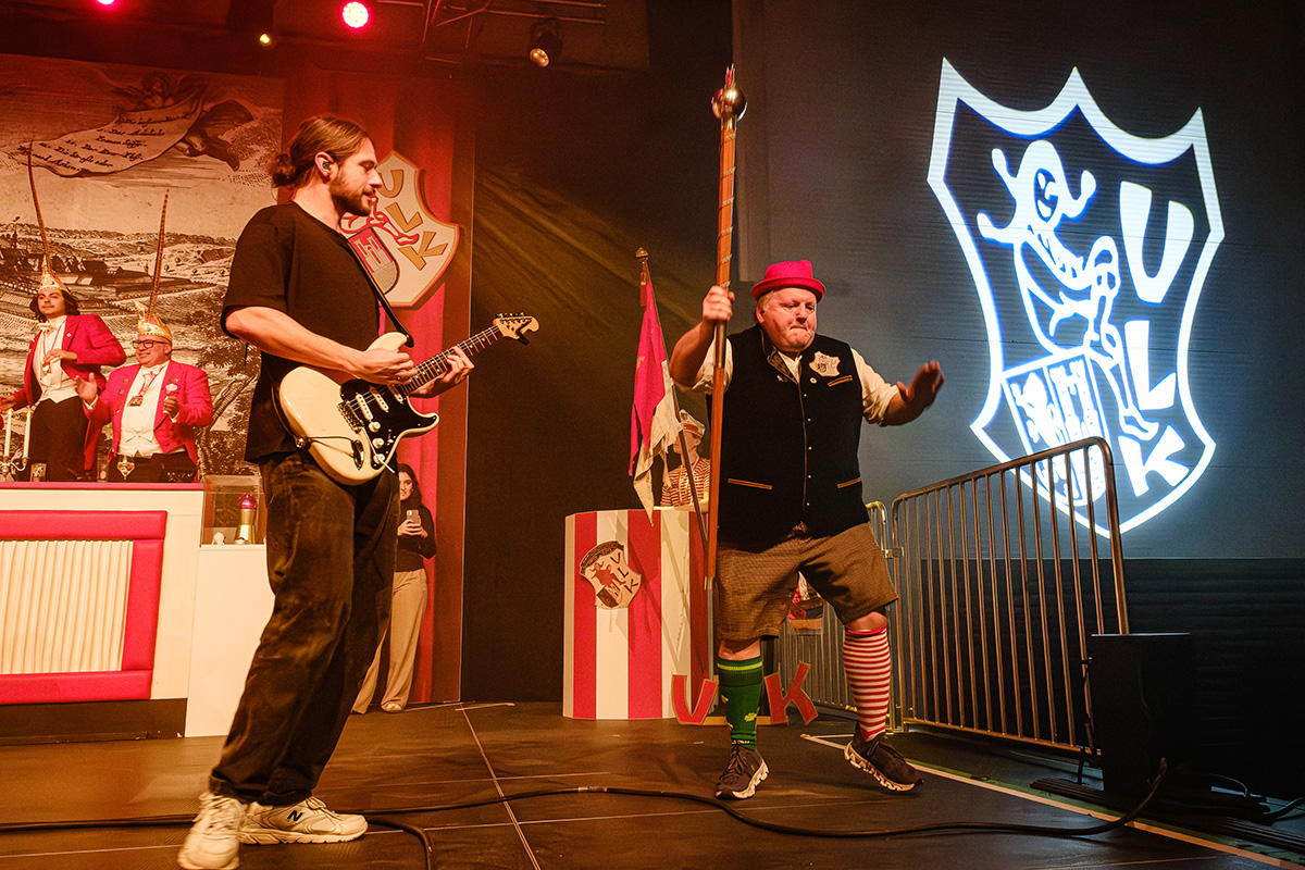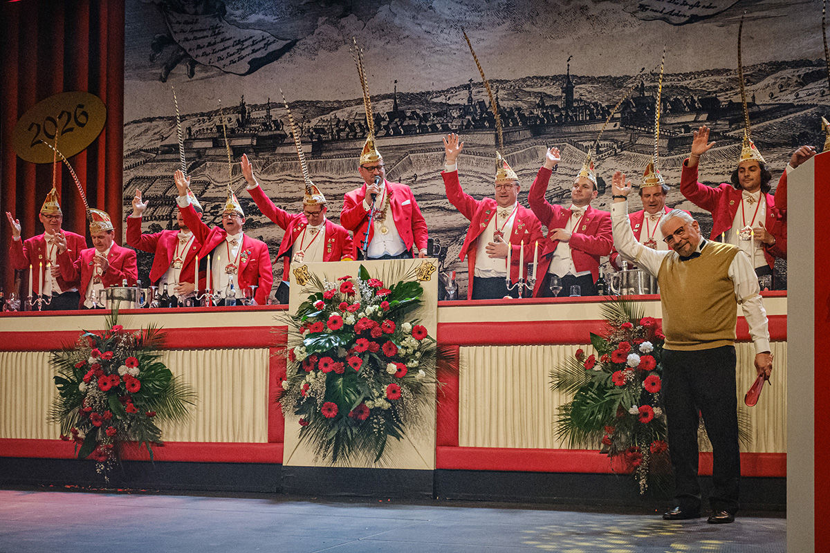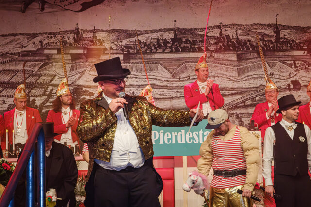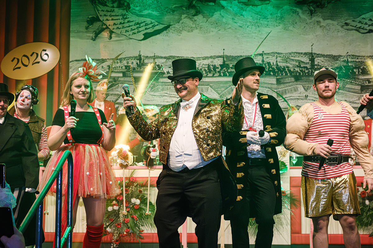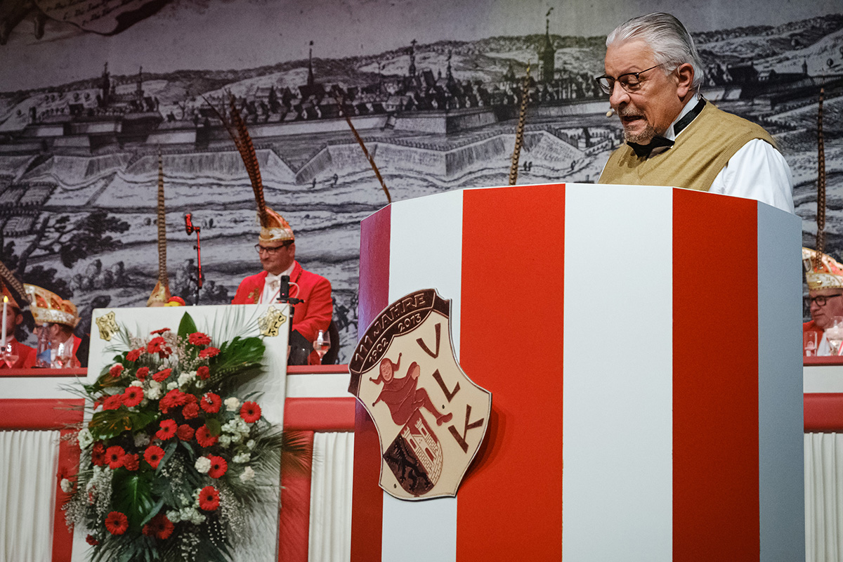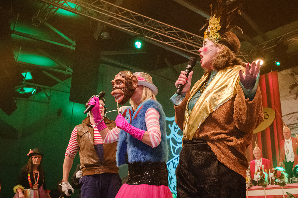 Richtig viel Zirkus machte die KG Ulk in dieser Session und so hieß es zur Kostümsitzung „Manege frei“. Dass Präsident Peter Plantikow Dompteurqualitäten hat, bewies er als er das Publikum auf das Programm einschwor: Erstmal lud er sie zum „ausrasten“ ein, und dann schafft er es, dass die ganze Narretei so still wird, dass man in der Muschel eine Stecknadel beim Fallen hätte zuhören können. Respekt! Und der gebührte eben auch den Rednern – auch wenn sie Liese Lotterlappen heißen. Apropos: Es gibt was Neues bei der Ulk. Gemeint ist nicht der inzwischen heiß erwartete Tanz der Ulk-Eigengewächse – „dä Amtmann“ trat erstmals auf. Jörg Bücher, der damit nicht nur als Hexenturm-Ordensträger, sondern auch als Redner seinem Vater Heino nachfolgt, erzählte allerdings keine „Dönneken“. Er streute in seiner „klassischen“ Büttenrede reichlich Salz in lokale Wunden.