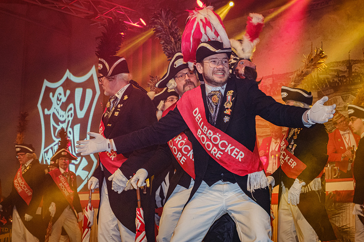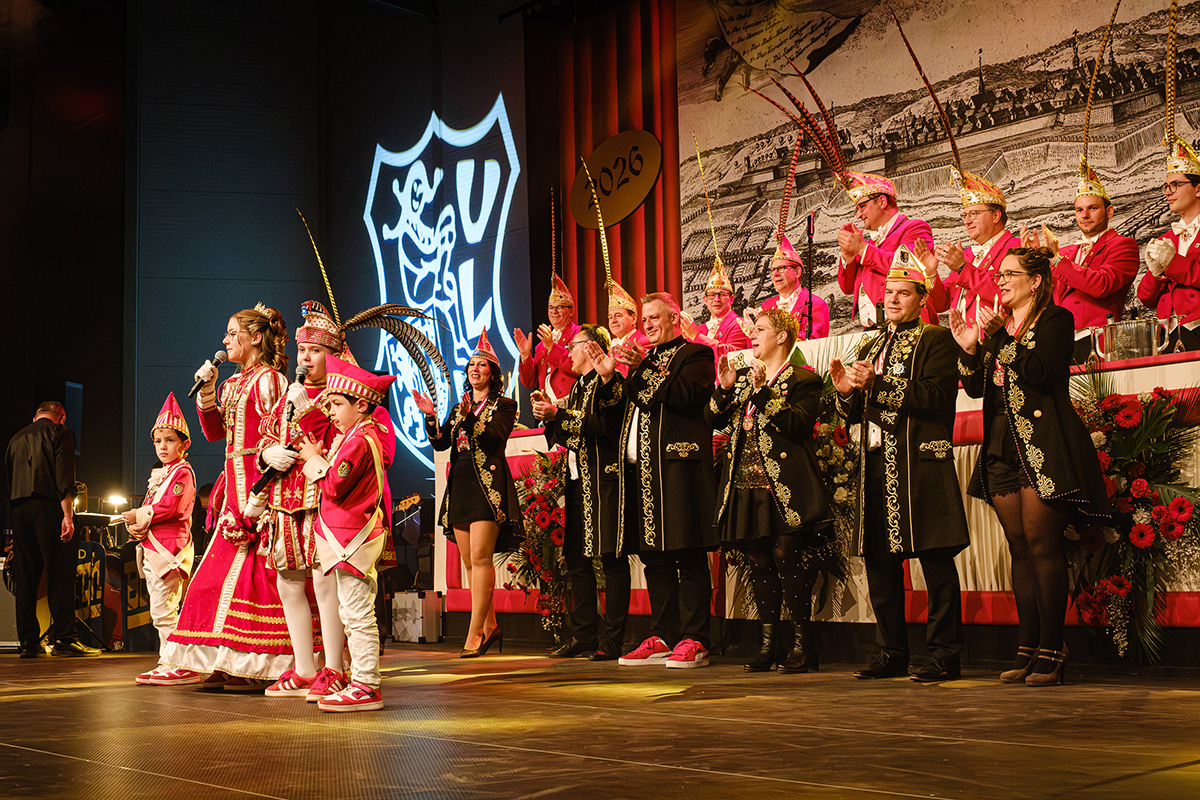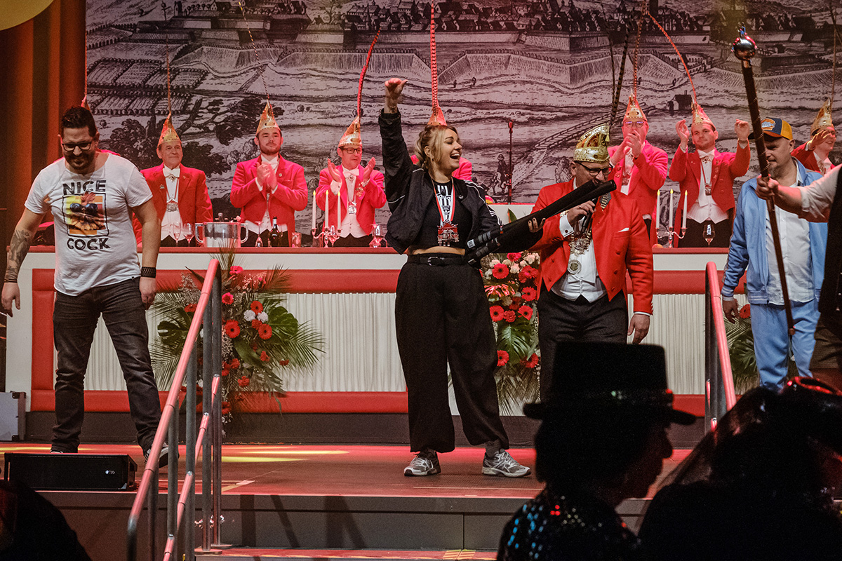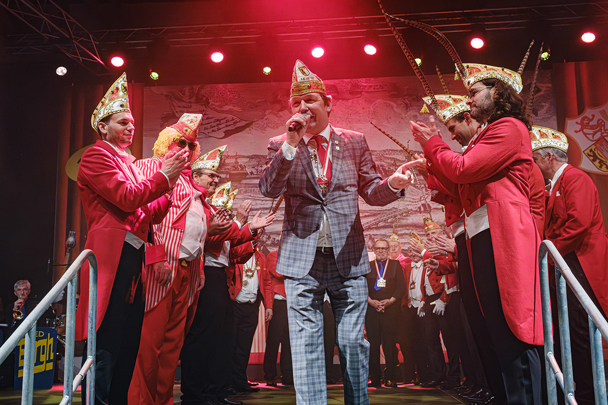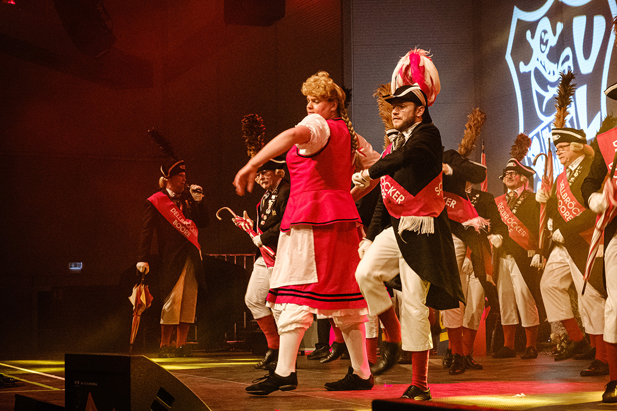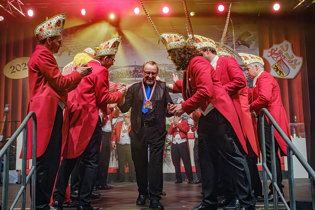Richtig viel Zirkus machte die KG Ulk in dieser Session und so hieß es zur Kostümsitzung „Manege frei“. Dass Präsident Peter Plantikow Dompteurqualitäten hat, bewies er als er das Publikum auf das Programm einschwor: Erstmal lud er sie zum „ausrasten“ ein, und dann schafft er es, dass die ganze Narretei so still wird, dass man in der Muschel eine Stecknadel beim Fallen hätte zuhören können. Respekt! Und der gebührte eben auch den Rednern – auch wenn sie Liese Lotterlappen heißen. Apropos: Es gibt was Neues bei der Ulk. Gemeint ist nicht der inzwischen heiß erwartete Tanz der Ulk-Eigengewächse – „dä Amtmann“ trat erstmals auf. Jörg Bücher, der damit nicht nur als Hexenturm-Ordensträger, sondern auch als Redner seinem Vater Heino nachfolgt, erzählte allerdings keine „Dönneken“. Er streute in seiner „klassischen“ Büttenrede reichlich Salz in lokale Wunden.