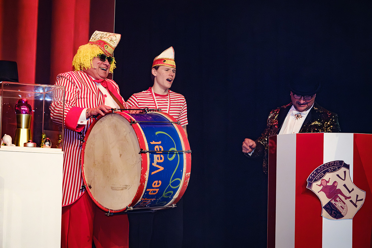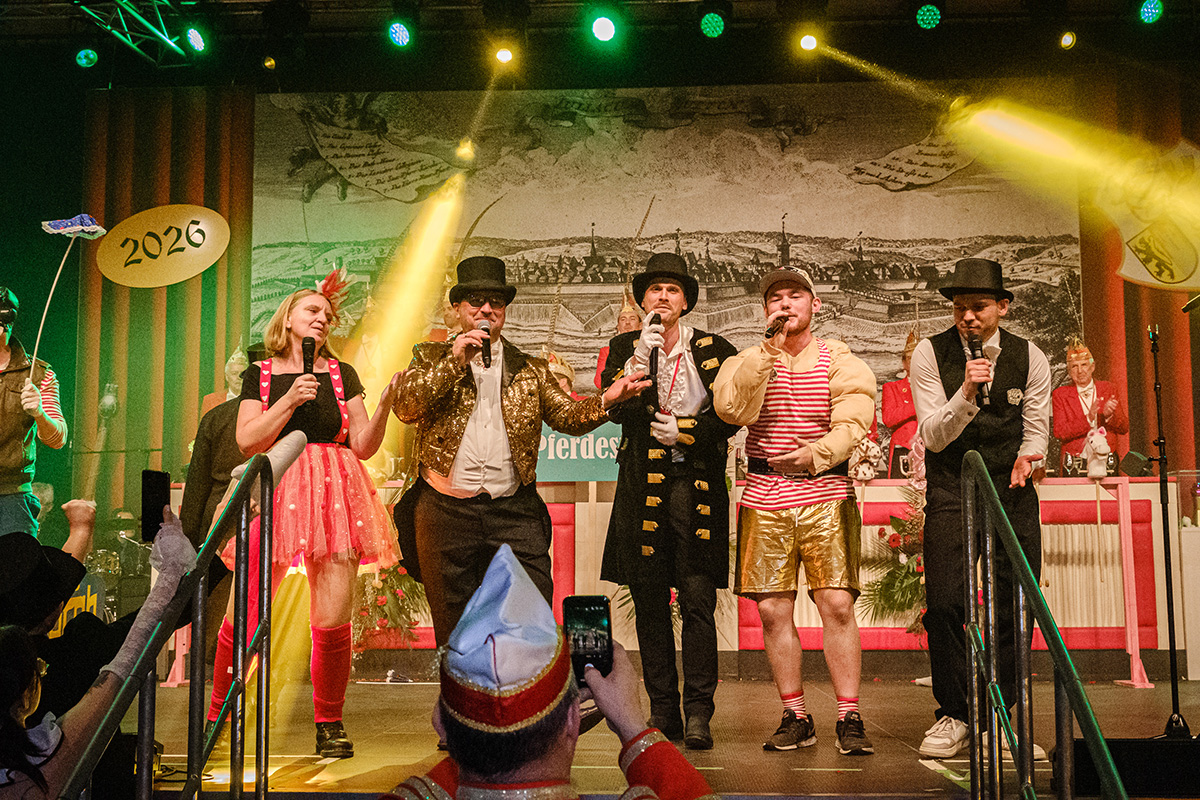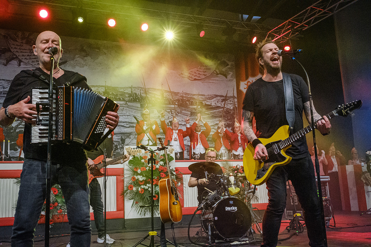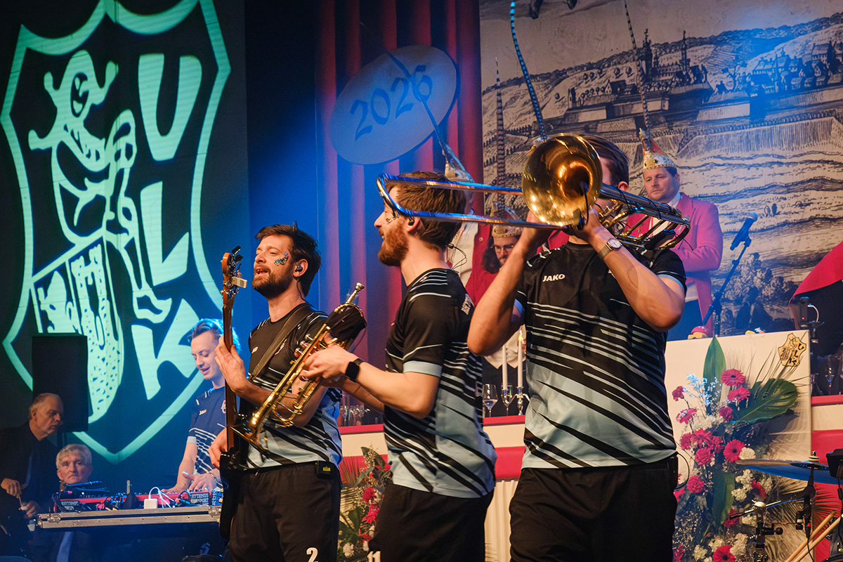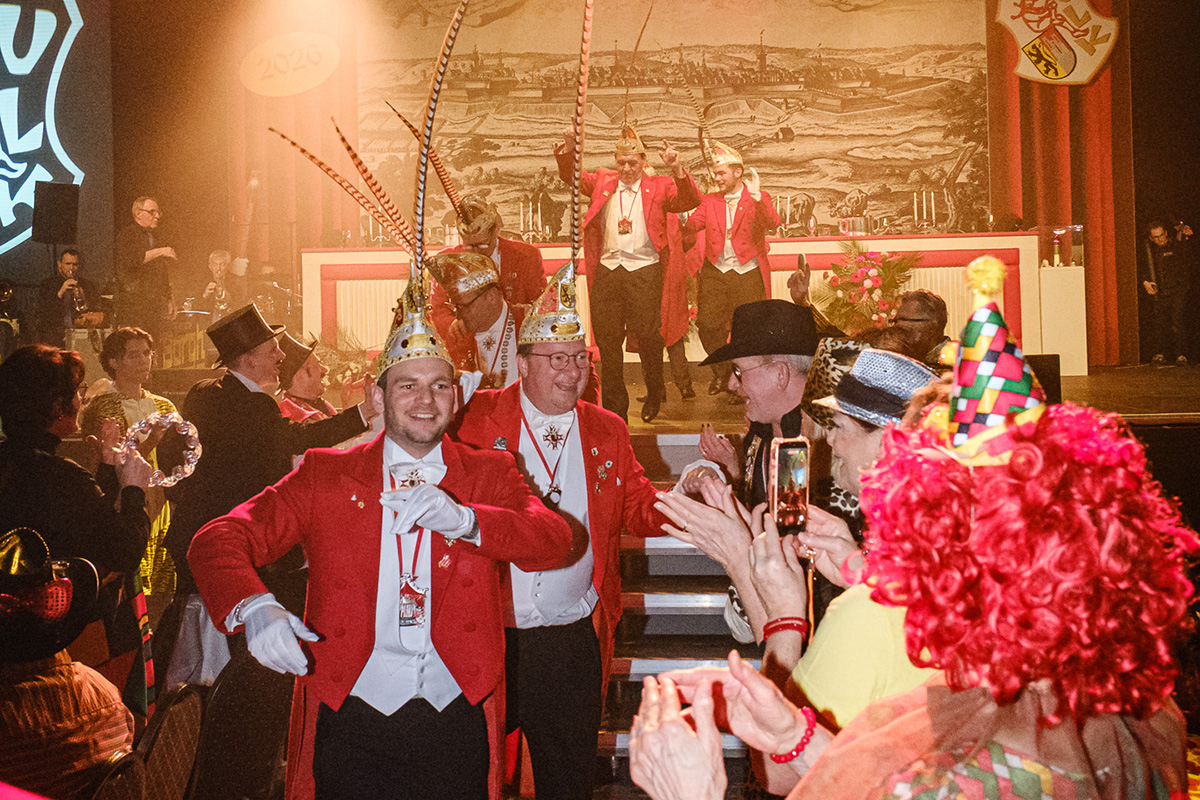 Richtig viel Zirkus machte die KG Ulk in dieser Session und so hieß es zur Kostümsitzung „Manege frei“. Dass Präsident Peter Plantikow Dompteurqualitäten hat, bewies er als er das Publikum auf das Programm einschwor: Erstmal lud er sie zum „ausrasten“ ein, und dann schafft er es, dass die ganze Narretei so still wird, dass man in der Muschel eine Stecknadel beim Fallen hätte zuhören können. Respekt! Und der gebührte eben auch den Rednern – auch wenn sie Liese Lotterlappen heißen. Apropos: Es gibt was Neues bei der Ulk. Gemeint ist nicht der inzwischen heiß erwartete Tanz der Ulk-Eigengewächse – „dä Amtmann“ trat erstmals auf. Jörg Bücher, der damit nicht nur als Hexenturm-Ordensträger, sondern auch als Redner seinem Vater Heino nachfolgt, erzählte allerdings keine „Dönneken“. Er streute in seiner „klassischen“ Büttenrede reichlich Salz in lokale Wunden.