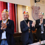 Außerdem zeigte sich der Präsident, der selbst einmal in der Besengruppe angefangen hat, dass er immer noch beweglich ist. Weil die einzige Neuaufnahme aus nachvollziehbaren familiären Gründen verhindert war, sprang David Ningelchen ein. Schließlich sollten auch die neuen Besengruppenführer, die Kalle Stier nach 25 Jahren ablösten, Frank Ritzal und Marcel Berwix-Maas, schon mal ihre Stimme für den Dienstag erproben. Und tatsächlich absolvierte der Präsident „ein Kleines“ und „Ganzes“ wie angesagt. „Ich glaube, Du darfst am Dienstag mitgehen“, meinte Kalle Stier daraufhin ausgesprochen launig zu seinem etwas atemlos gewordenen Präsidenten.