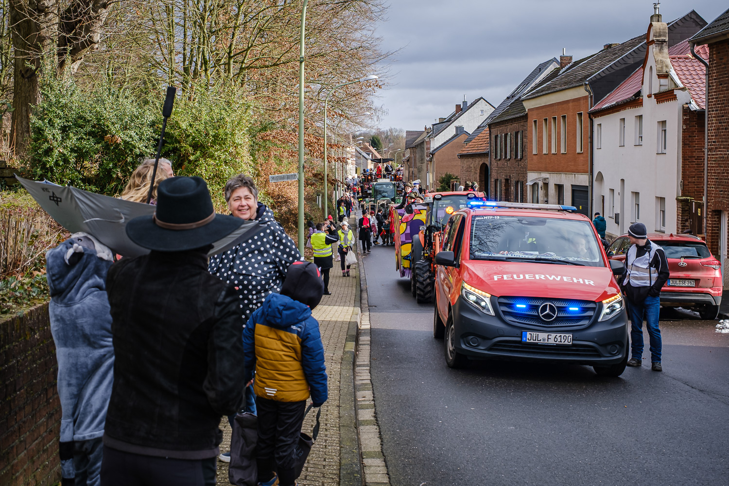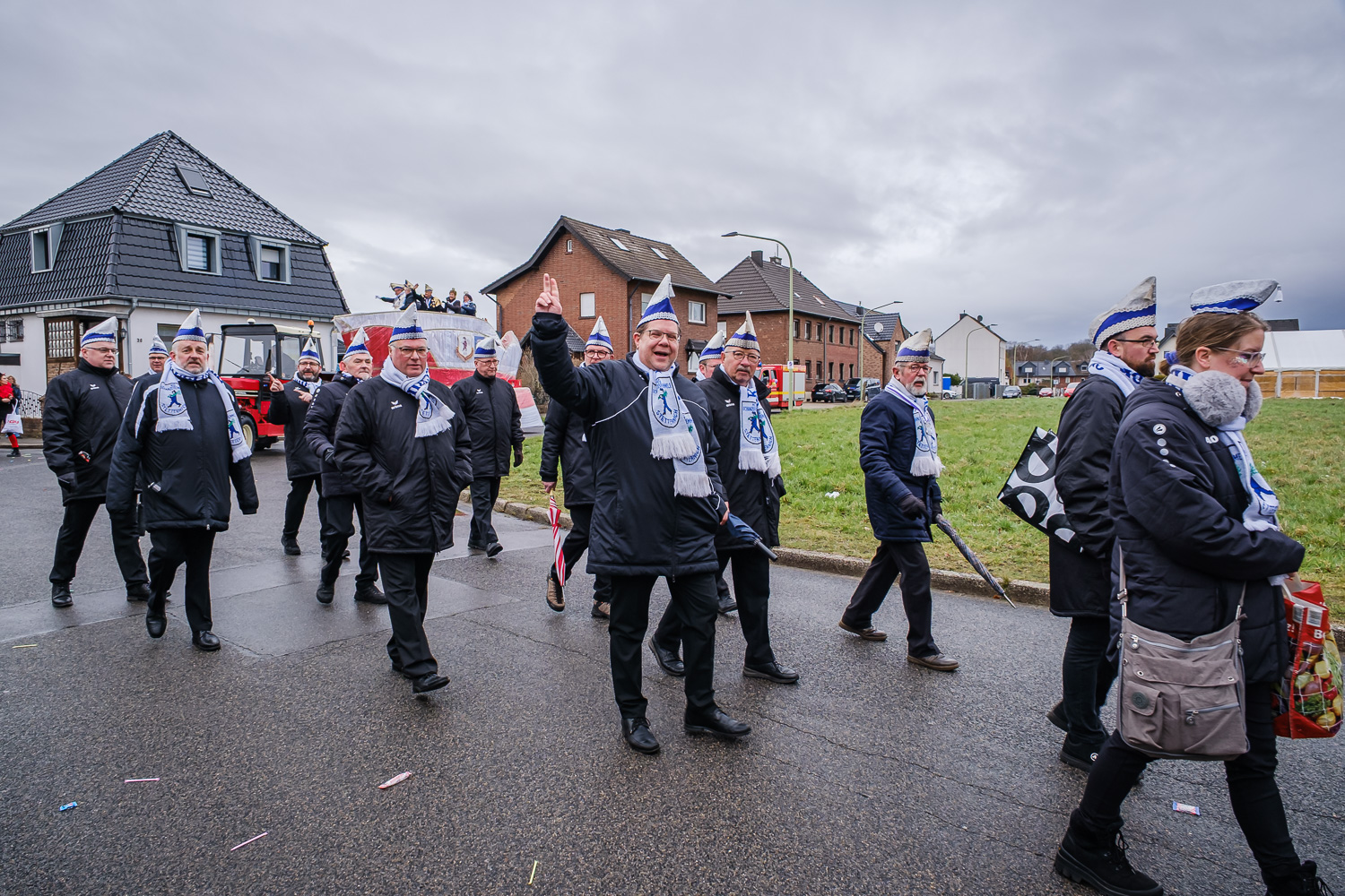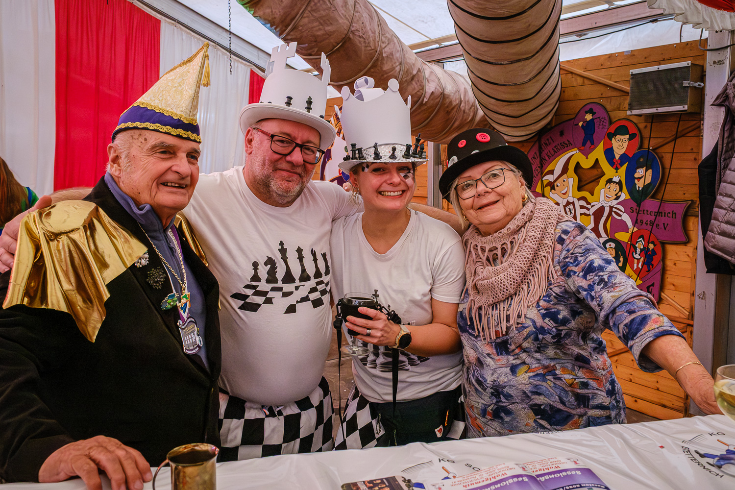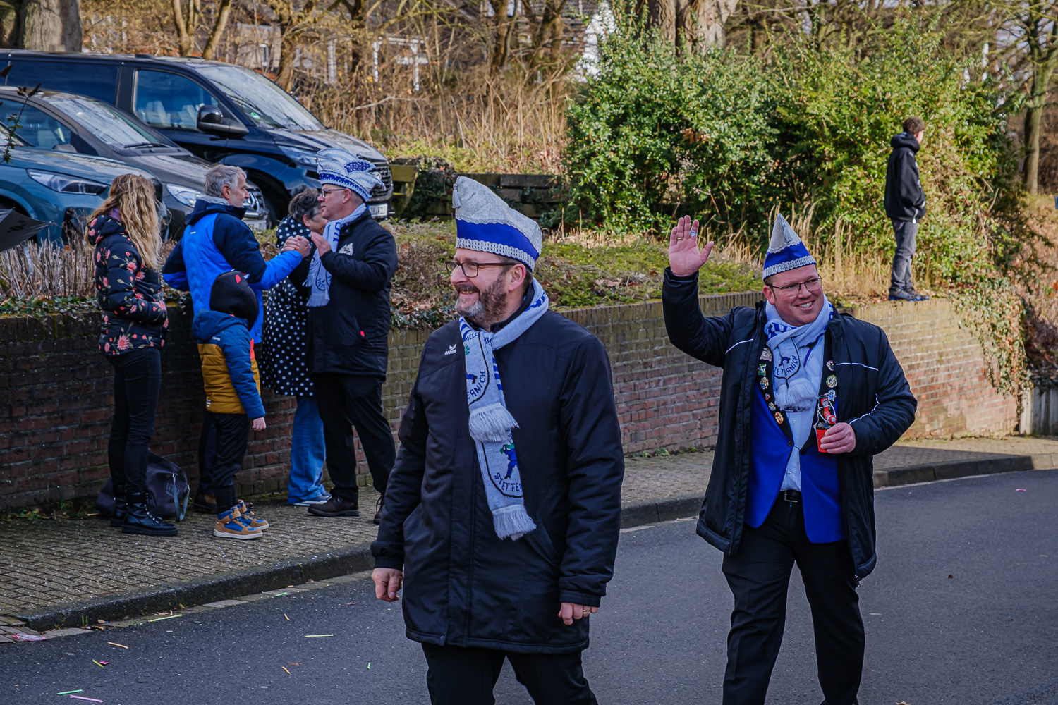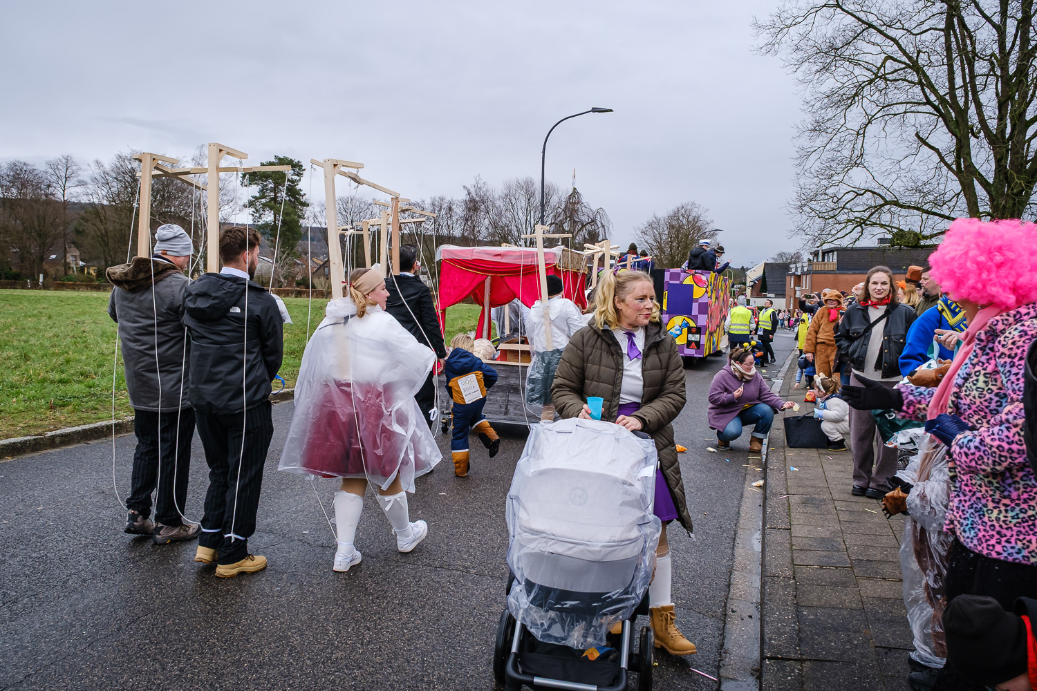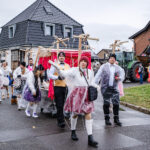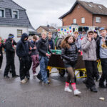 Der närrische Lindwurm zog gut gelaunt trotz frostiger Temperaturen durch Stetternich. Das Dörfchen schwelgte in den Vereinsfarben ergänzt durch bunte Fußgruppen: Von TicTac, Schachfiguren, eine Football-Mannschaft, Meeresmajestäten und eine großartige Fußgruppe, die sich als Marionetten kostümiert hatten, reichten die jecken Verkleidungen. Den Abschluss bildete wie stets das närrische Treiben im Festzelt Auf der Klause.