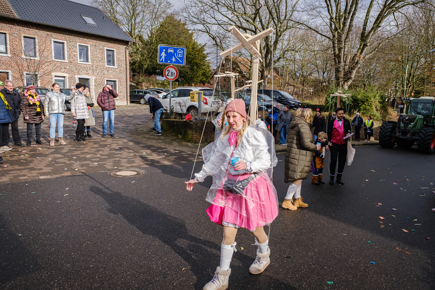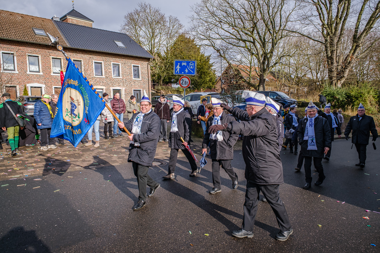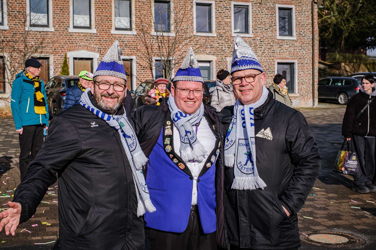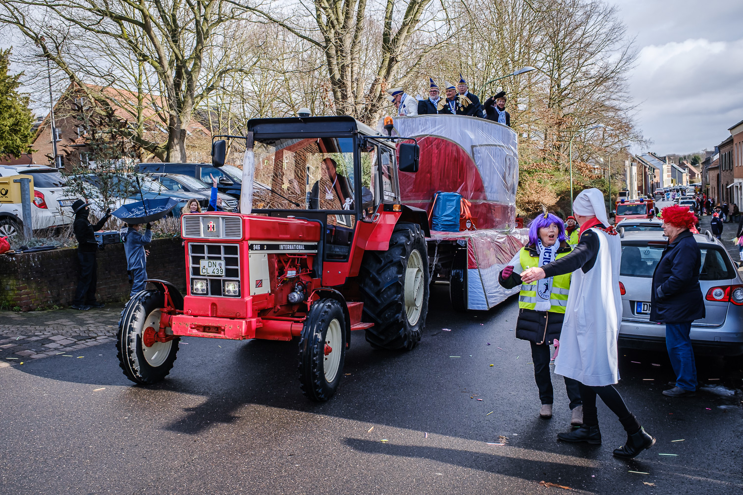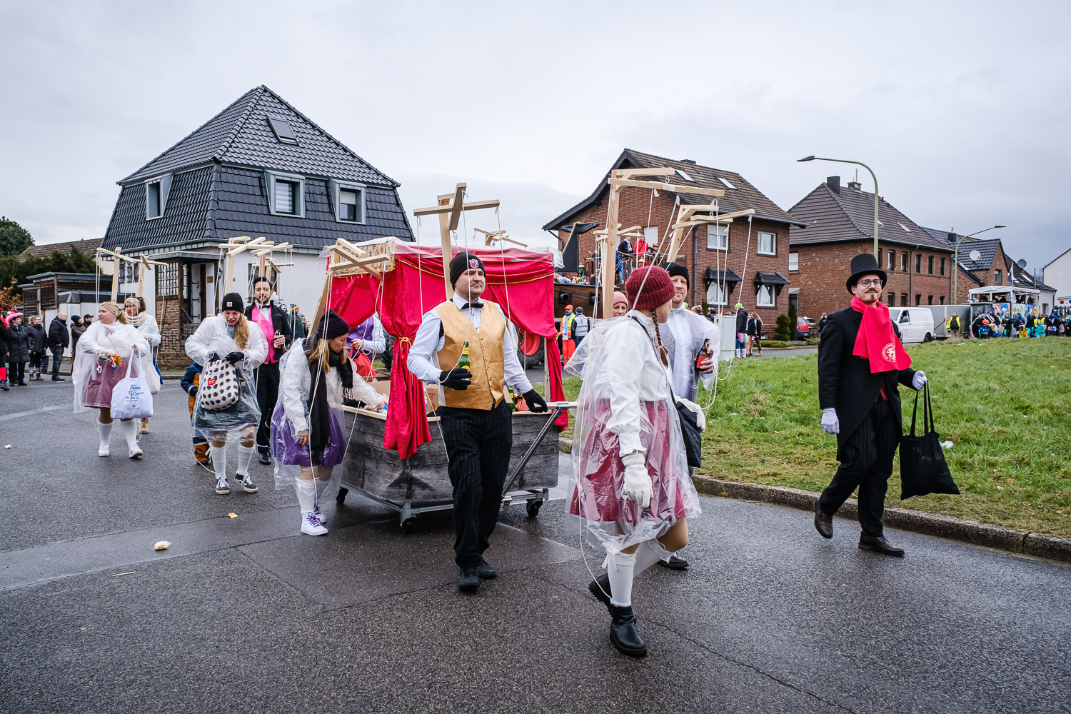 Der närrische Lindwurm zog gut gelaunt trotz frostiger Temperaturen durch Stetternich. Das Dörfchen schwelgte in den Vereinsfarben ergänzt durch bunte Fußgruppen: Von TicTac, Schachfiguren, eine Football-Mannschaft, Meeresmajestäten und eine großartige Fußgruppe, die sich als Marionetten kostümiert hatten, reichten die jecken Verkleidungen. Den Abschluss bildete wie stets das närrische Treiben im Festzelt Auf der Klause.
