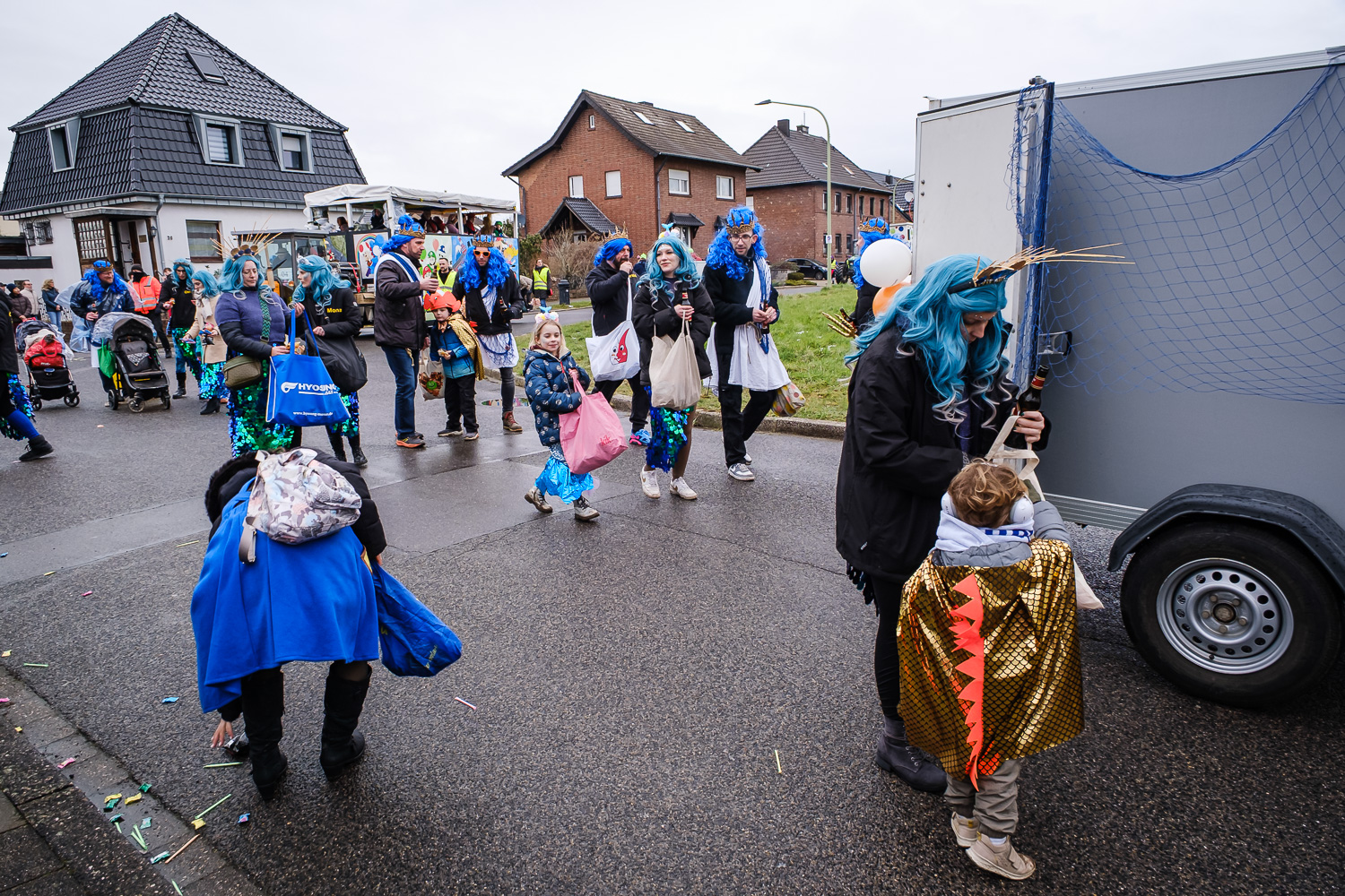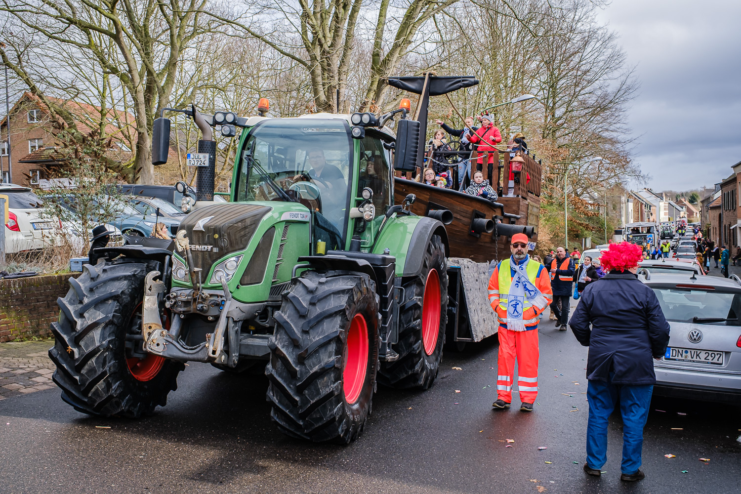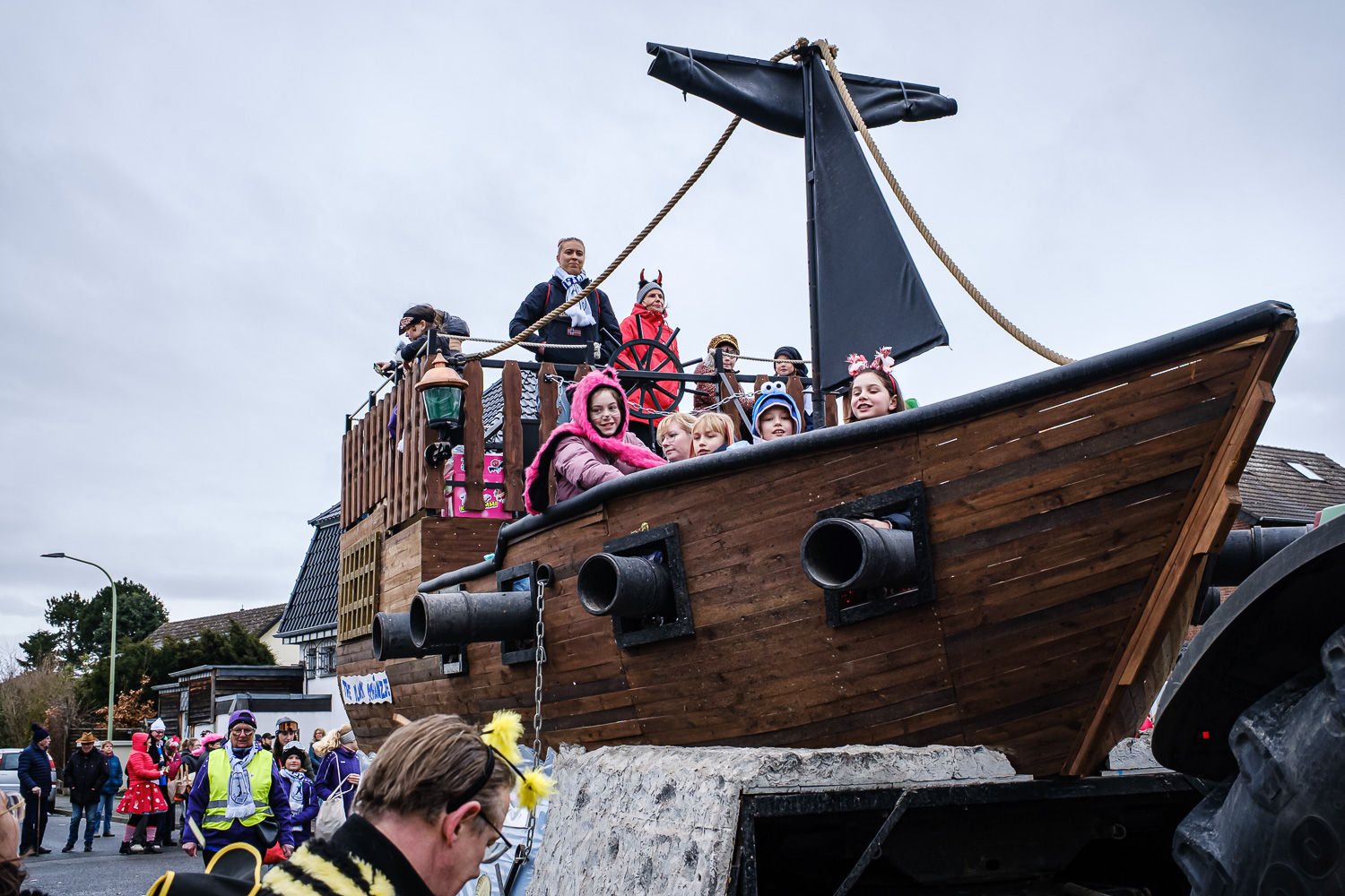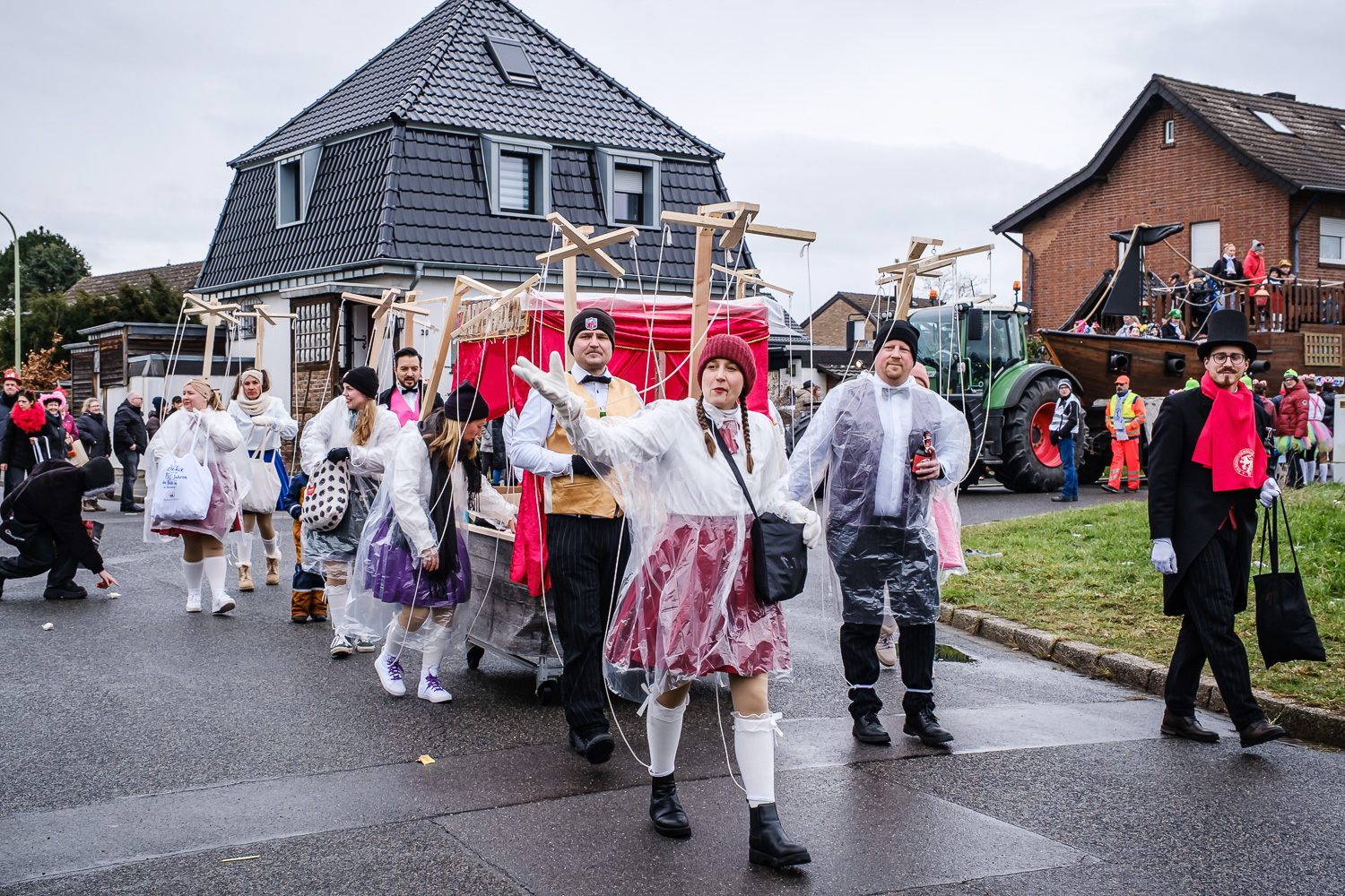 Der närrische Lindwurm zog gut gelaunt trotz frostiger Temperaturen durch Stetternich. Das Dörfchen schwelgte in den Vereinsfarben ergänzt durch bunte Fußgruppen: Von TicTac, Schachfiguren, eine Football-Mannschaft, Meeresmajestäten und eine großartige Fußgruppe, die sich als Marionetten kostümiert hatten, reichten die jecken Verkleidungen. Den Abschluss bildete wie stets das närrische Treiben im Festzelt Auf der Klause.
