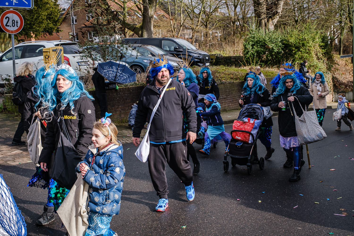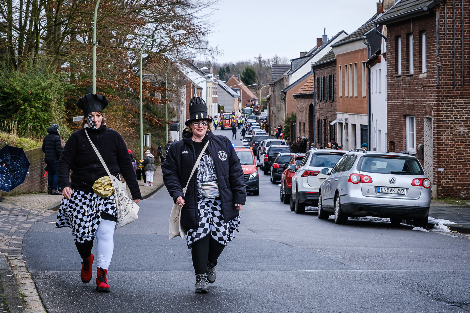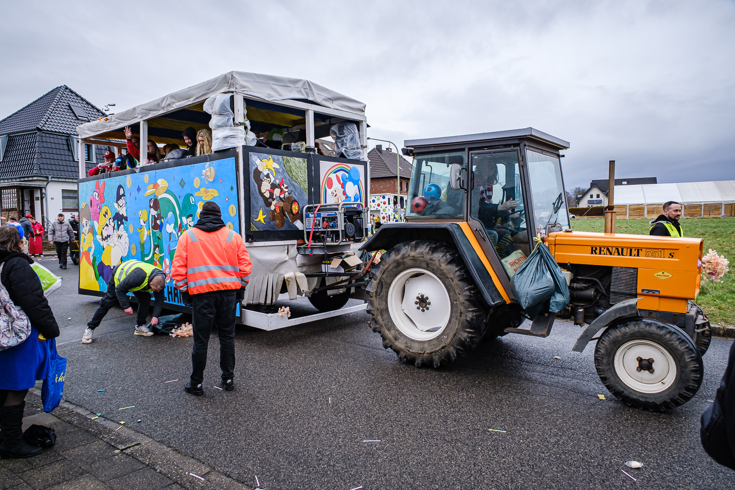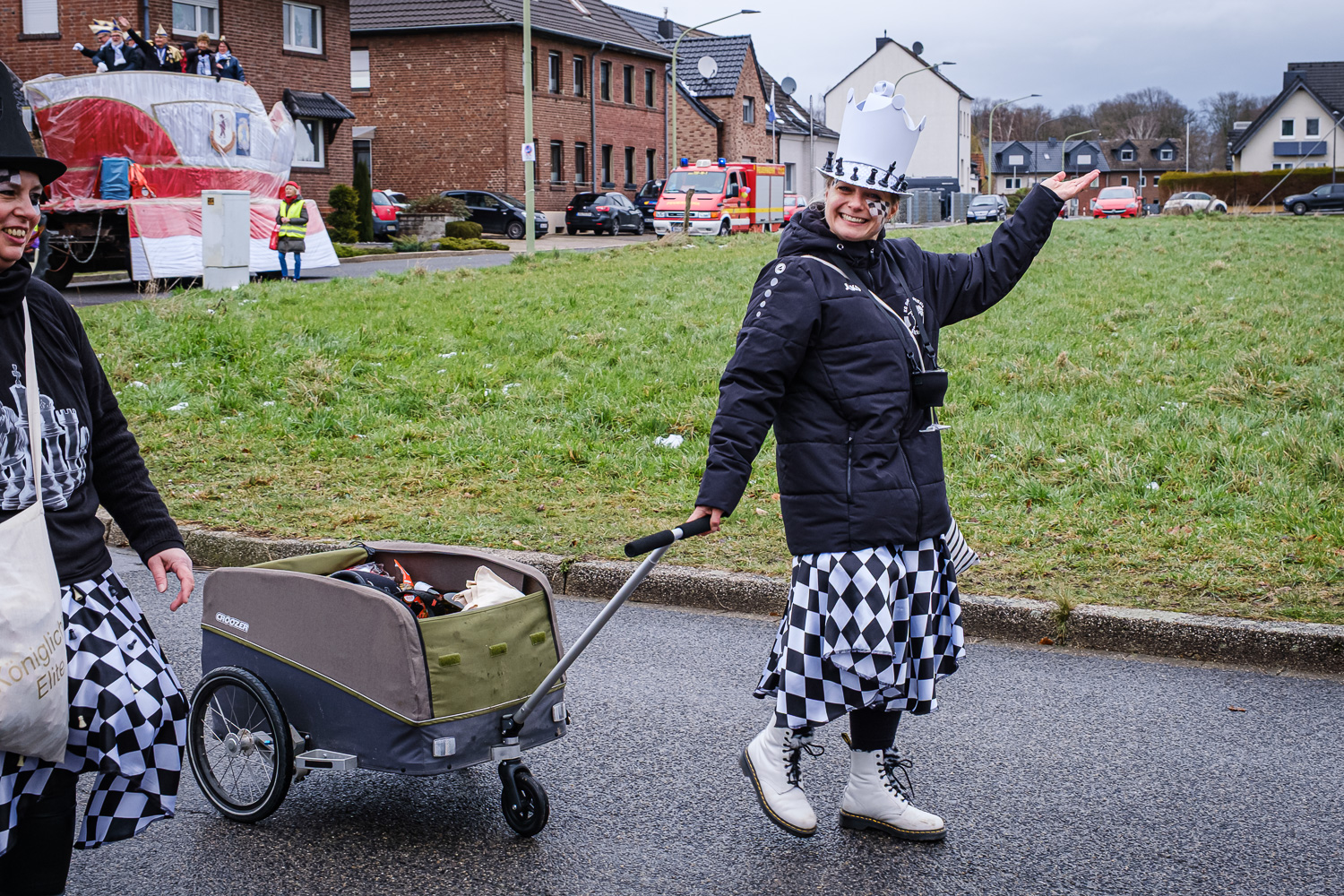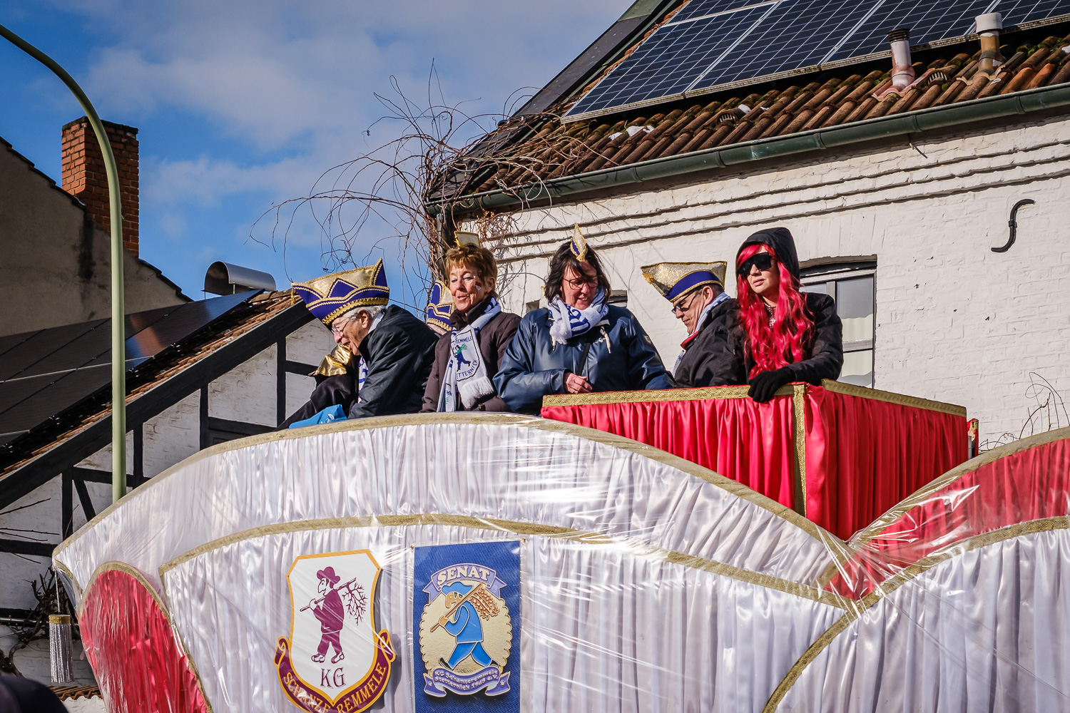 Der närrische Lindwurm zog gut gelaunt trotz frostiger Temperaturen durch Stetternich. Das Dörfchen schwelgte in den Vereinsfarben ergänzt durch bunte Fußgruppen: Von TicTac, Schachfiguren, eine Football-Mannschaft, Meeresmajestäten und eine großartige Fußgruppe, die sich als Marionetten kostümiert hatten, reichten die jecken Verkleidungen. Den Abschluss bildete wie stets das närrische Treiben im Festzelt Auf der Klause.