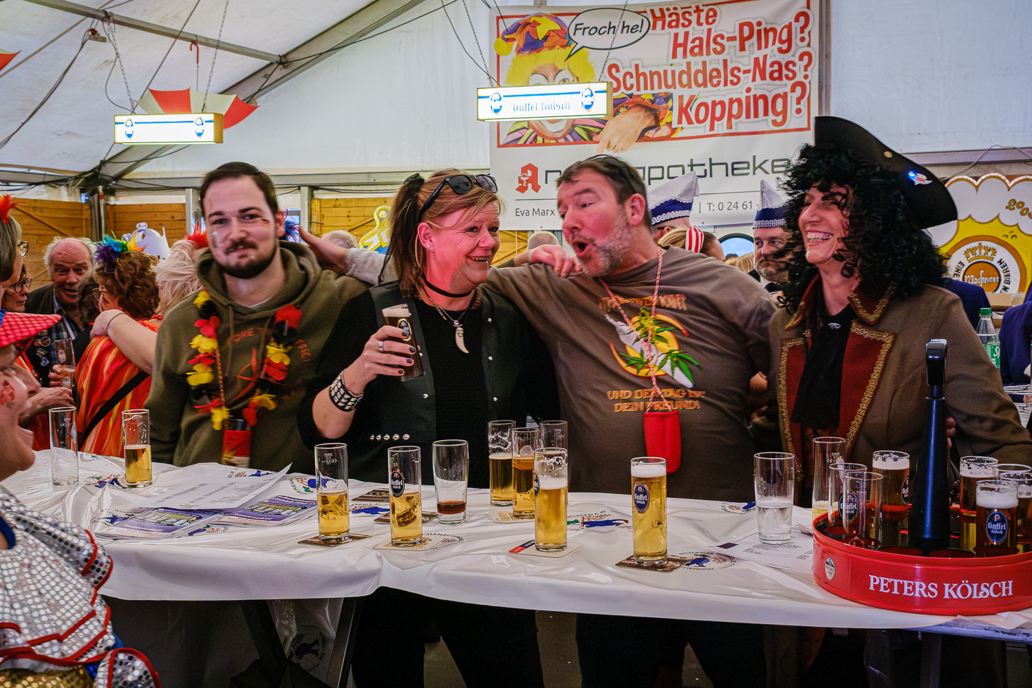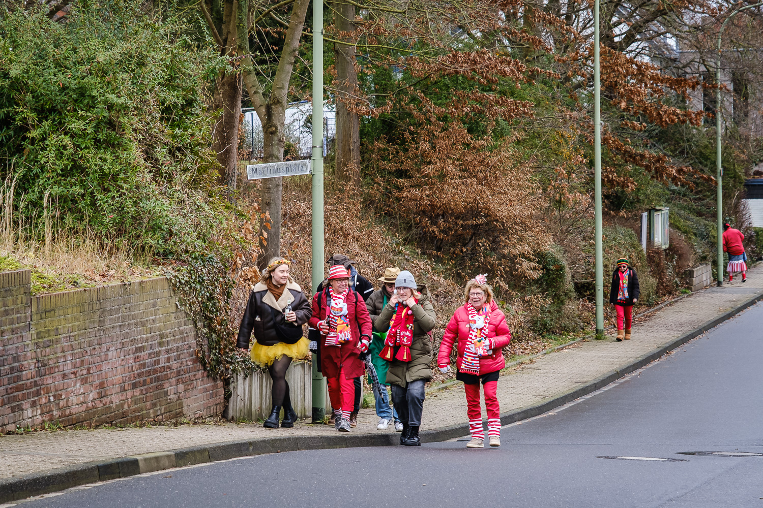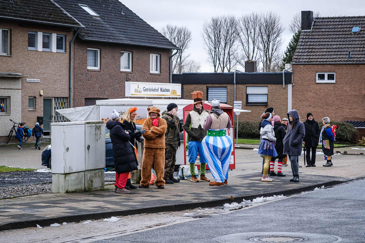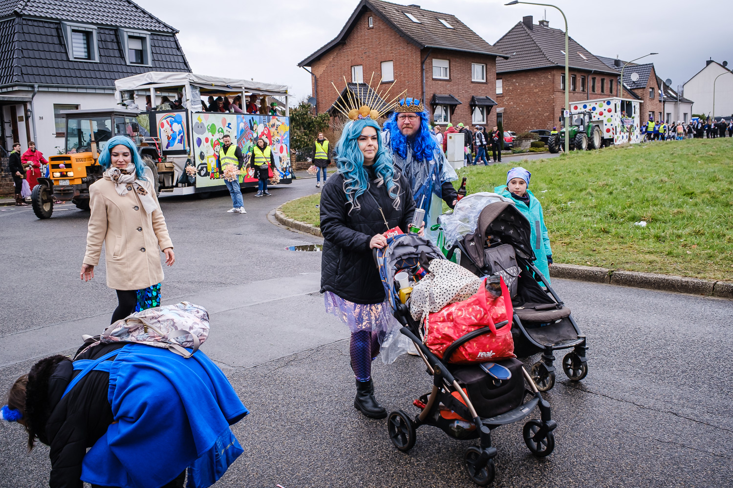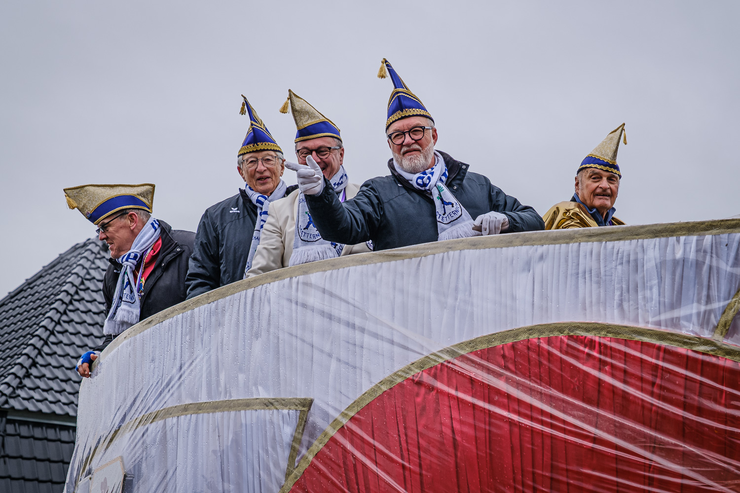 Der närrische Lindwurm zog gut gelaunt trotz frostiger Temperaturen durch Stetternich. Das Dörfchen schwelgte in den Vereinsfarben ergänzt durch bunte Fußgruppen: Von TicTac, Schachfiguren, eine Football-Mannschaft, Meeresmajestäten und eine großartige Fußgruppe, die sich als Marionetten kostümiert hatten, reichten die jecken Verkleidungen. Den Abschluss bildete wie stets das närrische Treiben im Festzelt Auf der Klause.