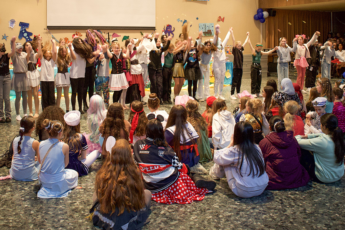 Neben Karnevalskaraoke führten einzelne Klassen tolle tänzerische Beiträge vor. Aus dem Lehrerkollegium gab es zum ersten Mal seit vielen Jahren eine gefeierte Büttenrede.